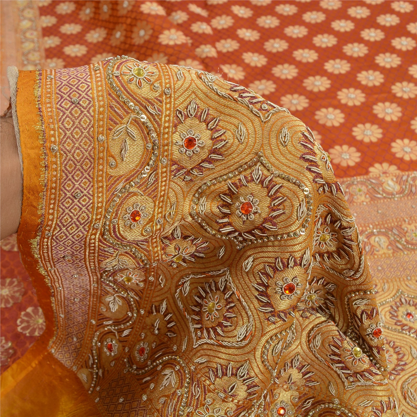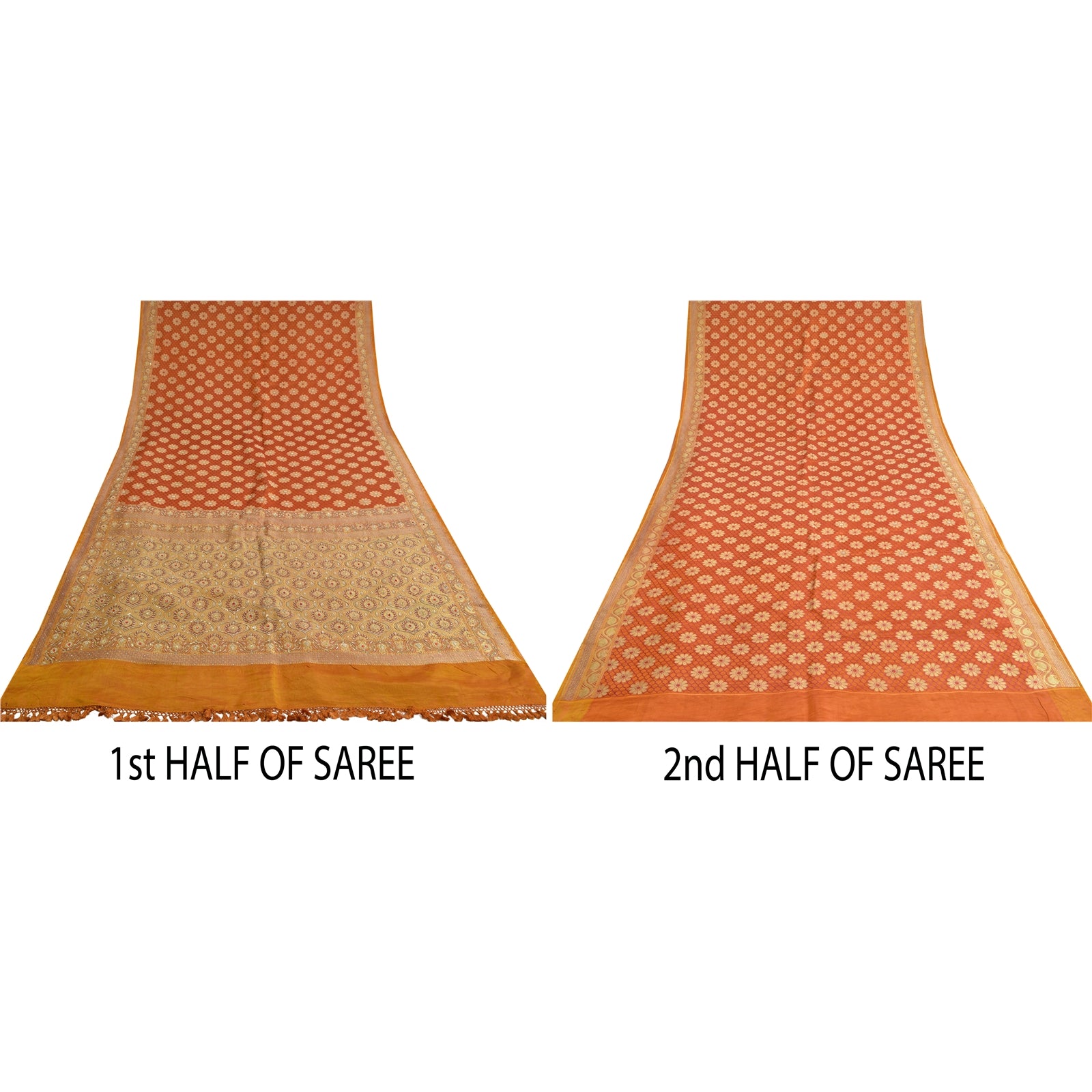 Sanskriti Vintage Saffron Sarees Pure Satin Silk Brocade/Banarasi Sari Fabric