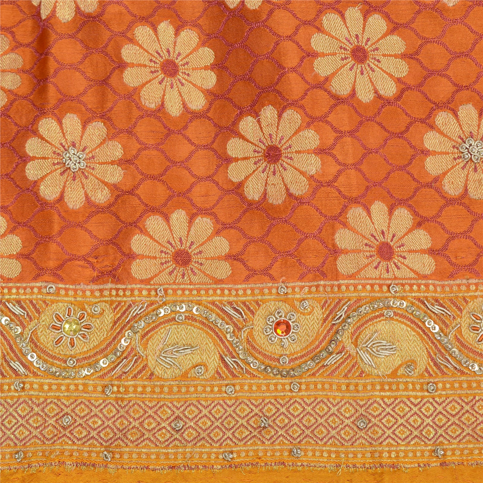 Sanskriti Offers This Vintage Saffron Color Hand Beaded Woven Brocade/Banarasi Saree Which Is Crafted With 100% Pure Satin Silk Base Fabric. The pallu & border sari features floral design embellished with metallic golden zari work, woven thread work and embellished with metallic golden zardozi work, silver beads, orange/cream rhinestones work. You can see similar woven zari work & thread work with floral design in center part of the sari.. This saree can be used for various crafting ideas too. Use it for dress designing, as a throw, as window dressing, upholstery, table linen and much more. Let your creative juices flow! International buyers please note: Import duties, taxes, and charges are not included in the item price or postage cost. These charges are the buyer's responsibility. Please check with your country's customs office to determine what these additional costs will be prior to bidding or buying. Buyer will pay custom duty/tax. It is calculated and charged differently by every country. As a seller I do not have any control over it.VAT or sales tax is calculated by the platform at the time of checkout. Customs charge is payable at the time of delivery.