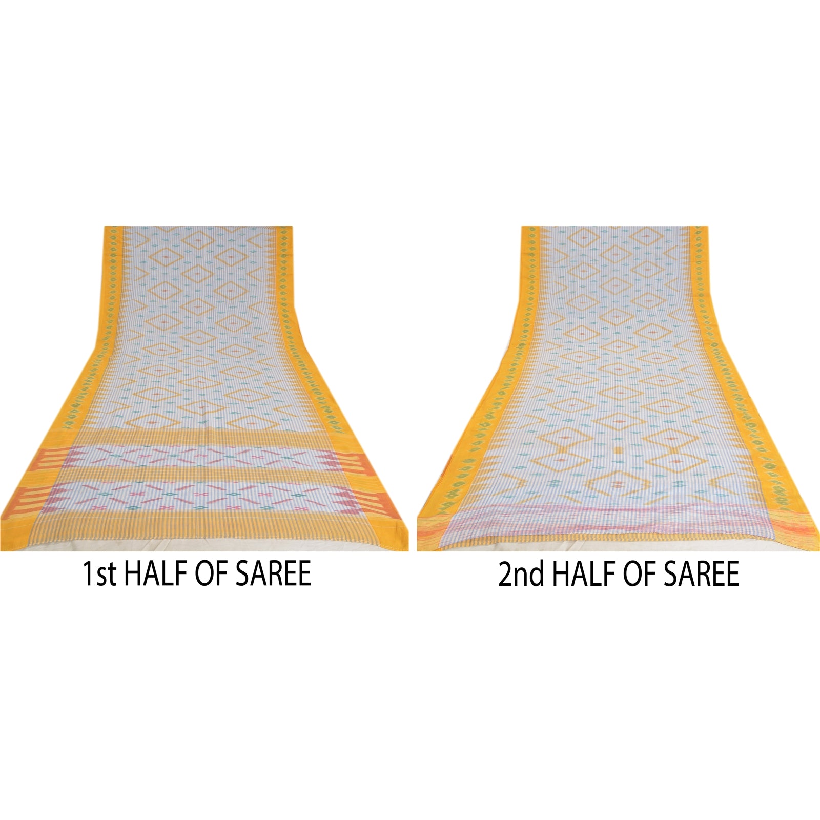 Sanskriti Vintage Sambalpuri Ikat Sarees Handwoven Pure Cotton Sari 5 YD Sustainable Fabric