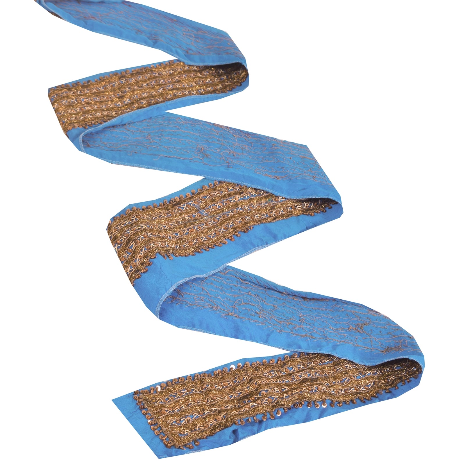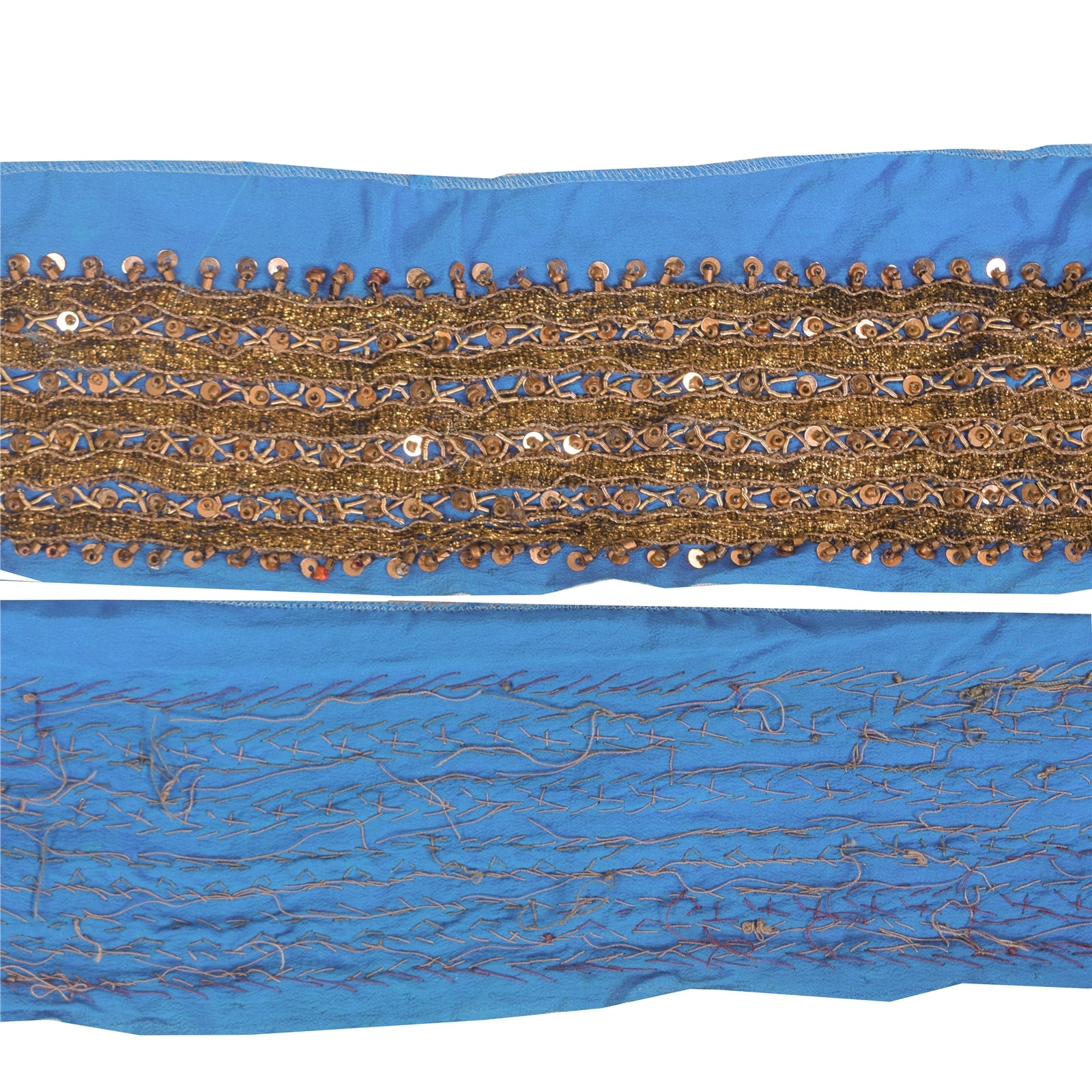 SANSKRITI VINTAGE SAREE BORDER HAND BEADED 1YD GOTA WORK TRIMS LACE 2.5'W BLUE