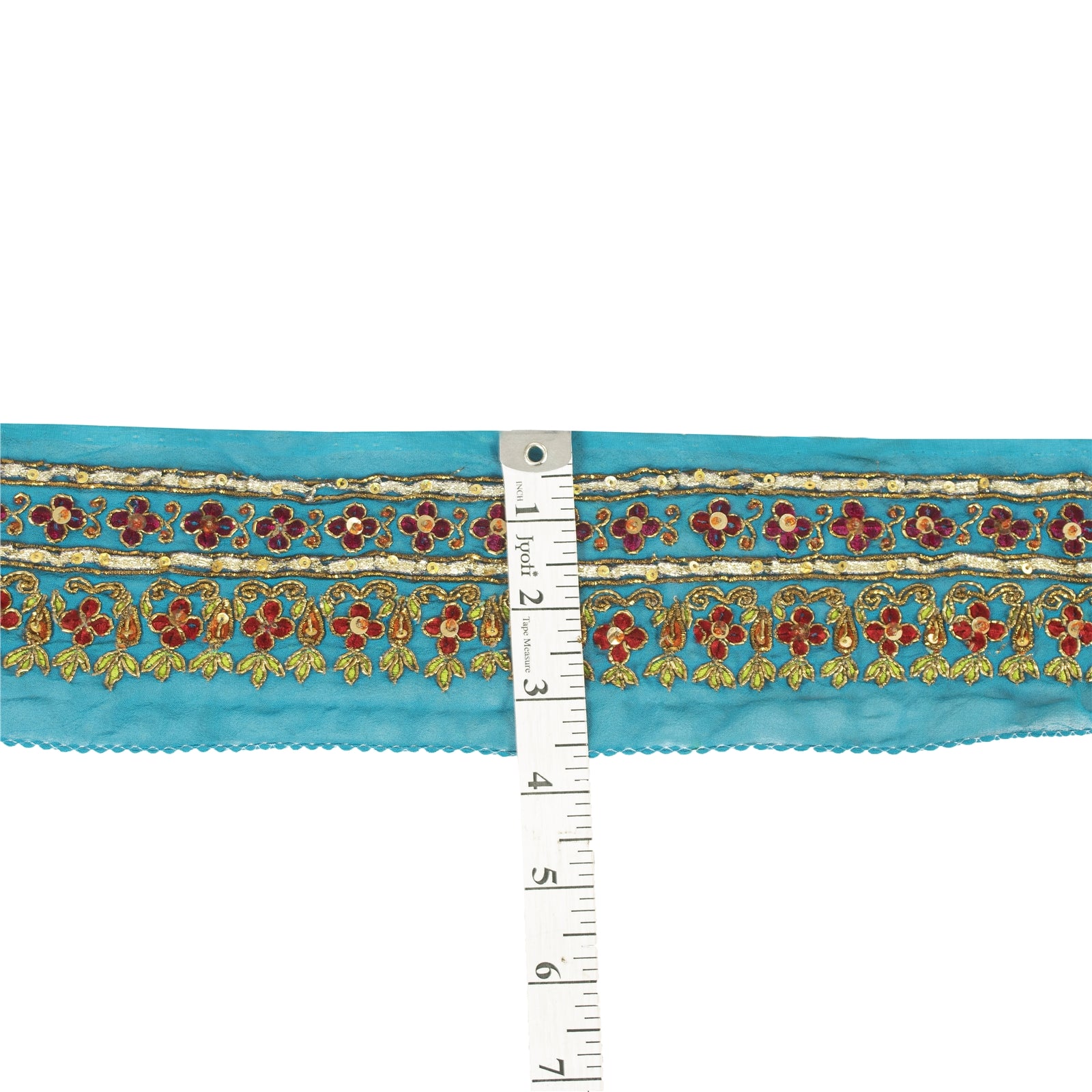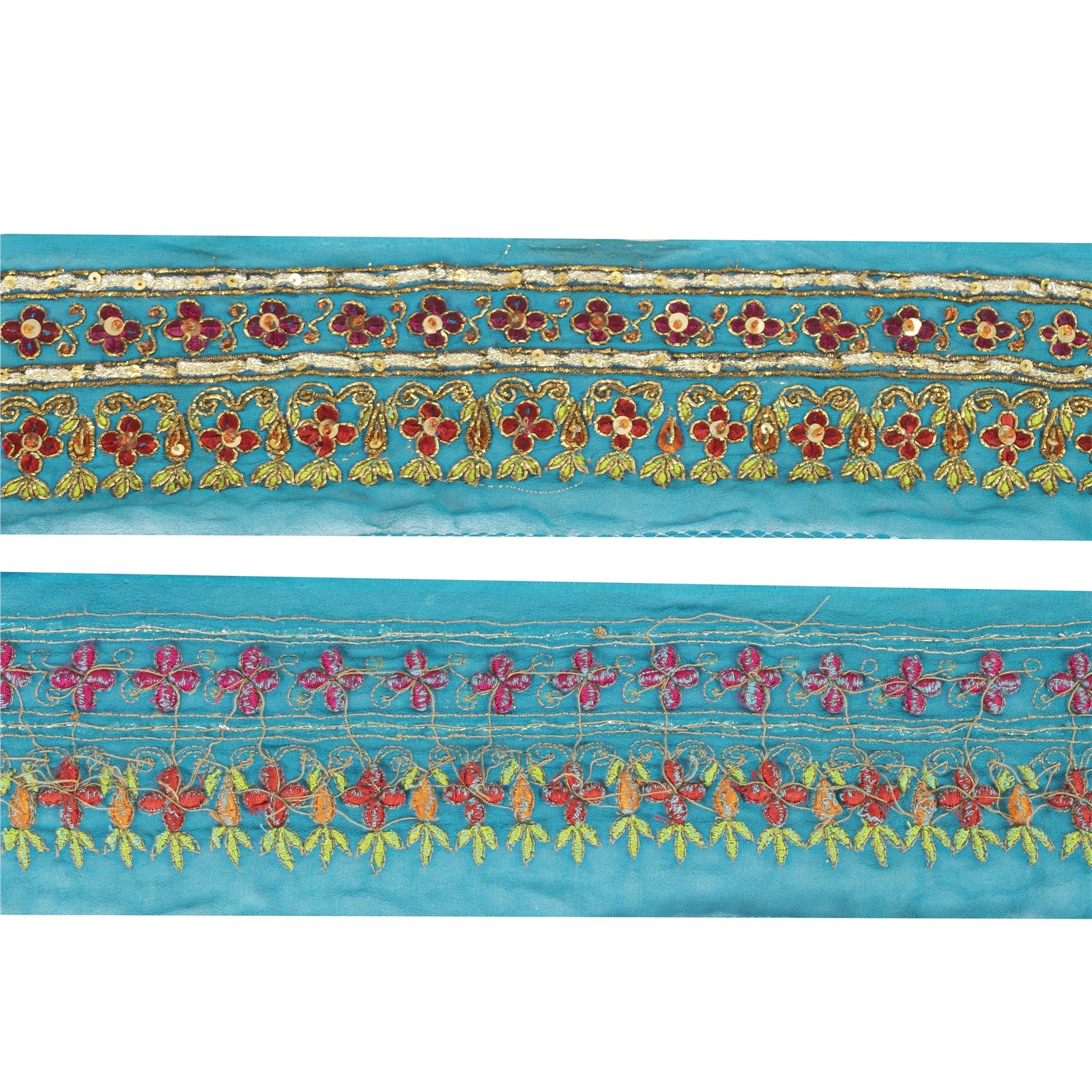 Sanskriti Vintage Saree Border Hand Beaded Craft Patch Work Trims Lace 1 YD Blue