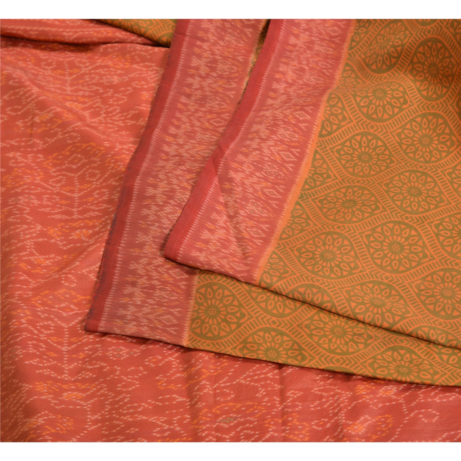 Sanskriti Vintage Saree Indian Green Hand Woven Ikat Pure Silk Sari 5yd Sustainable Fabric