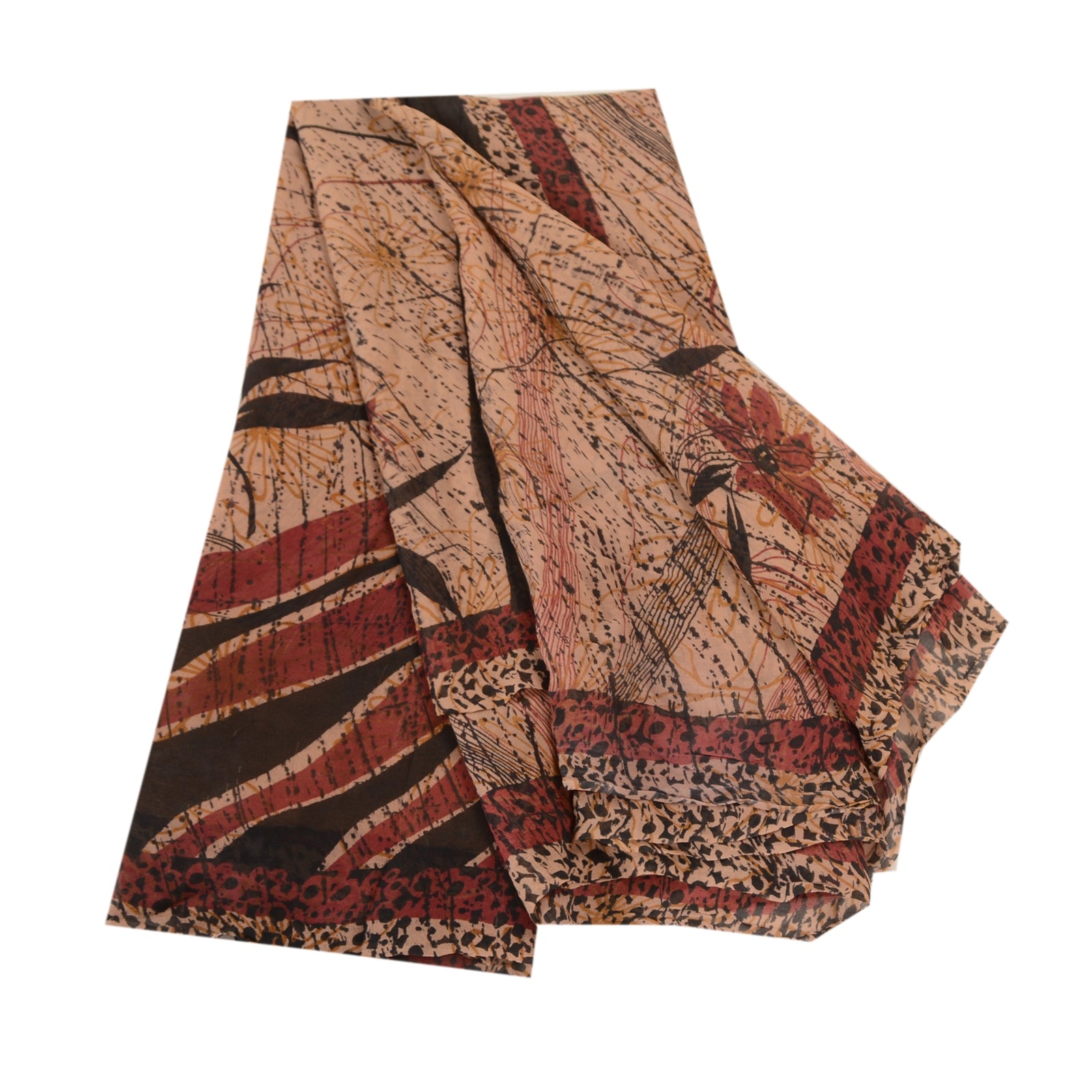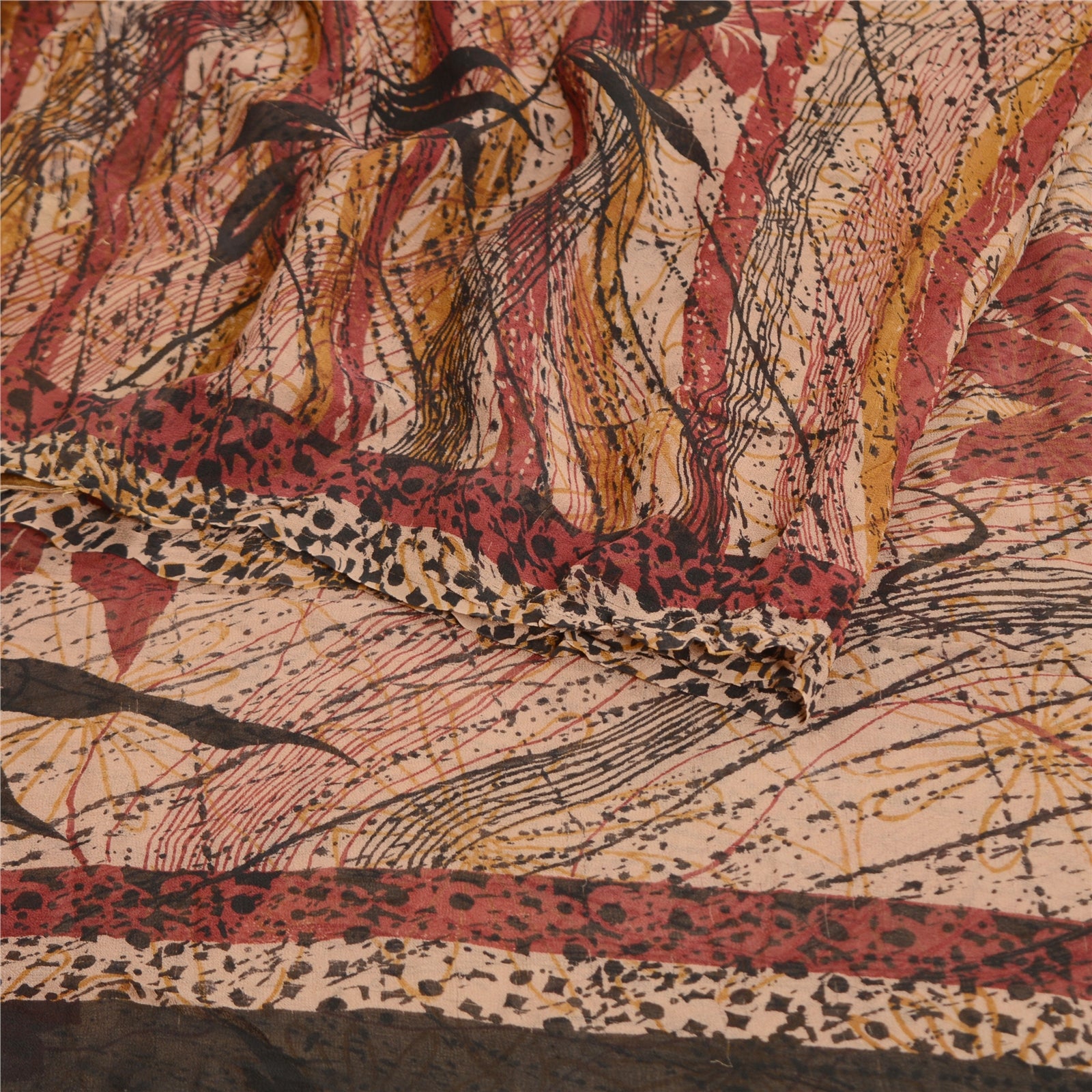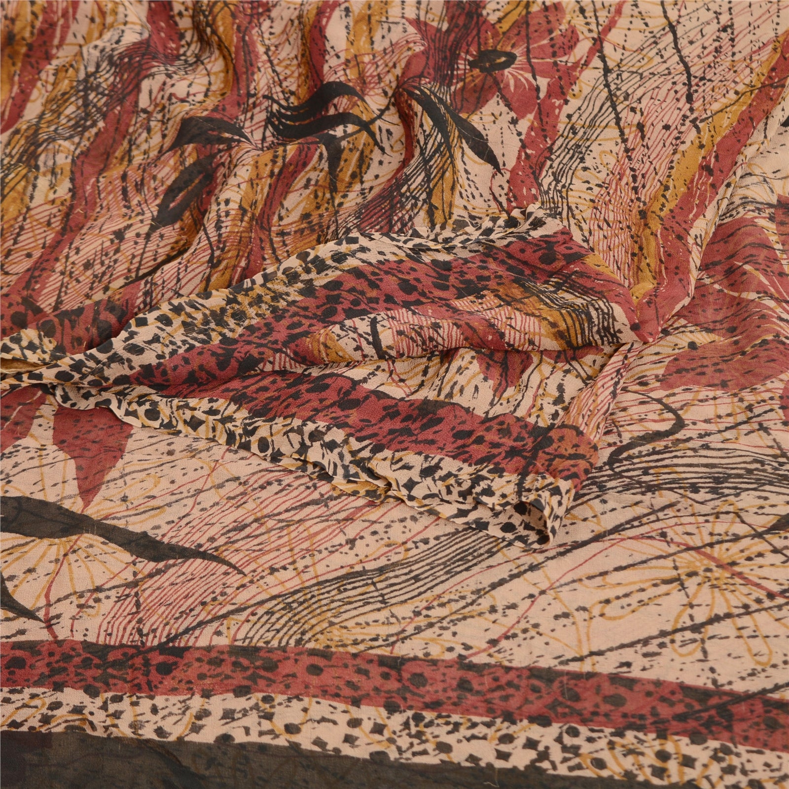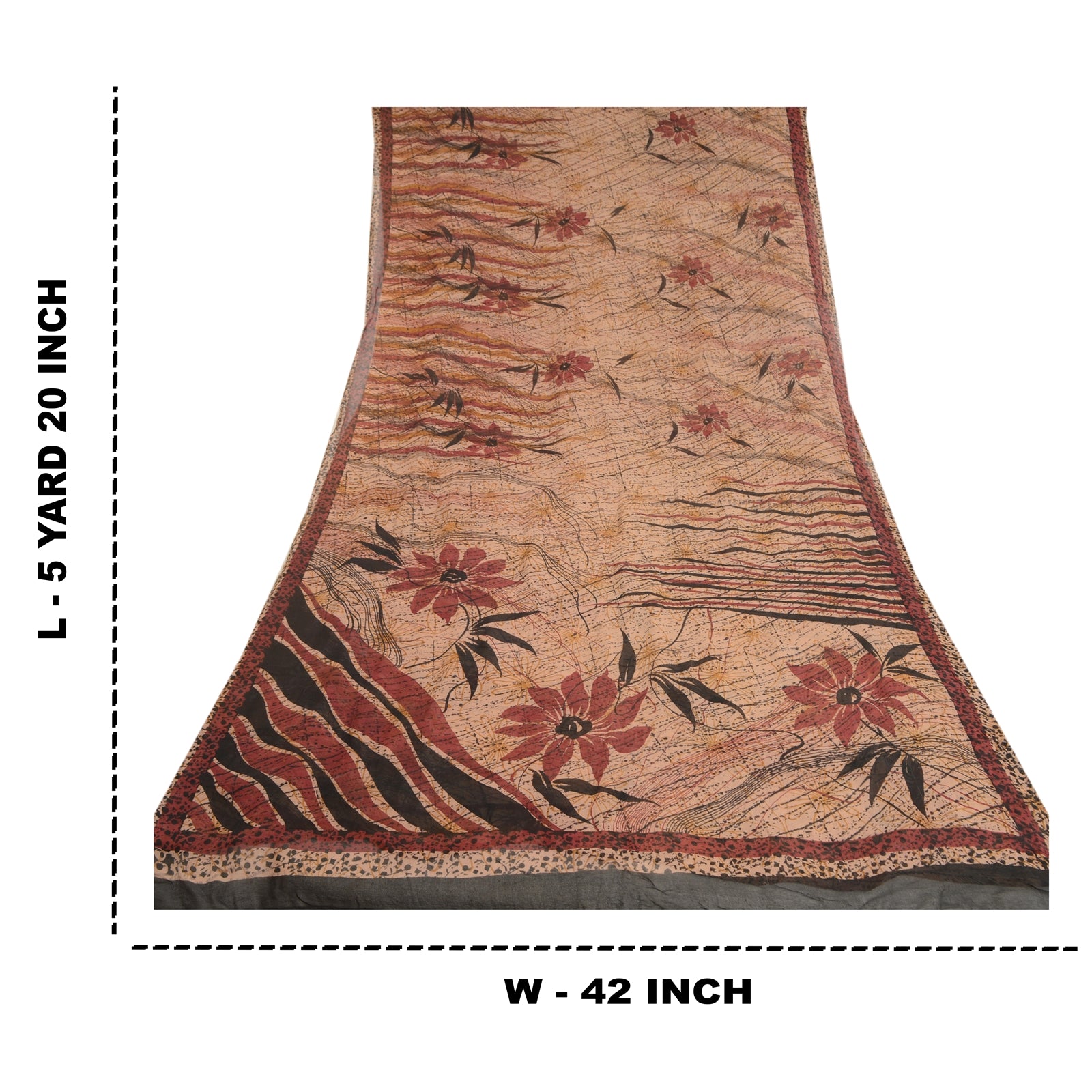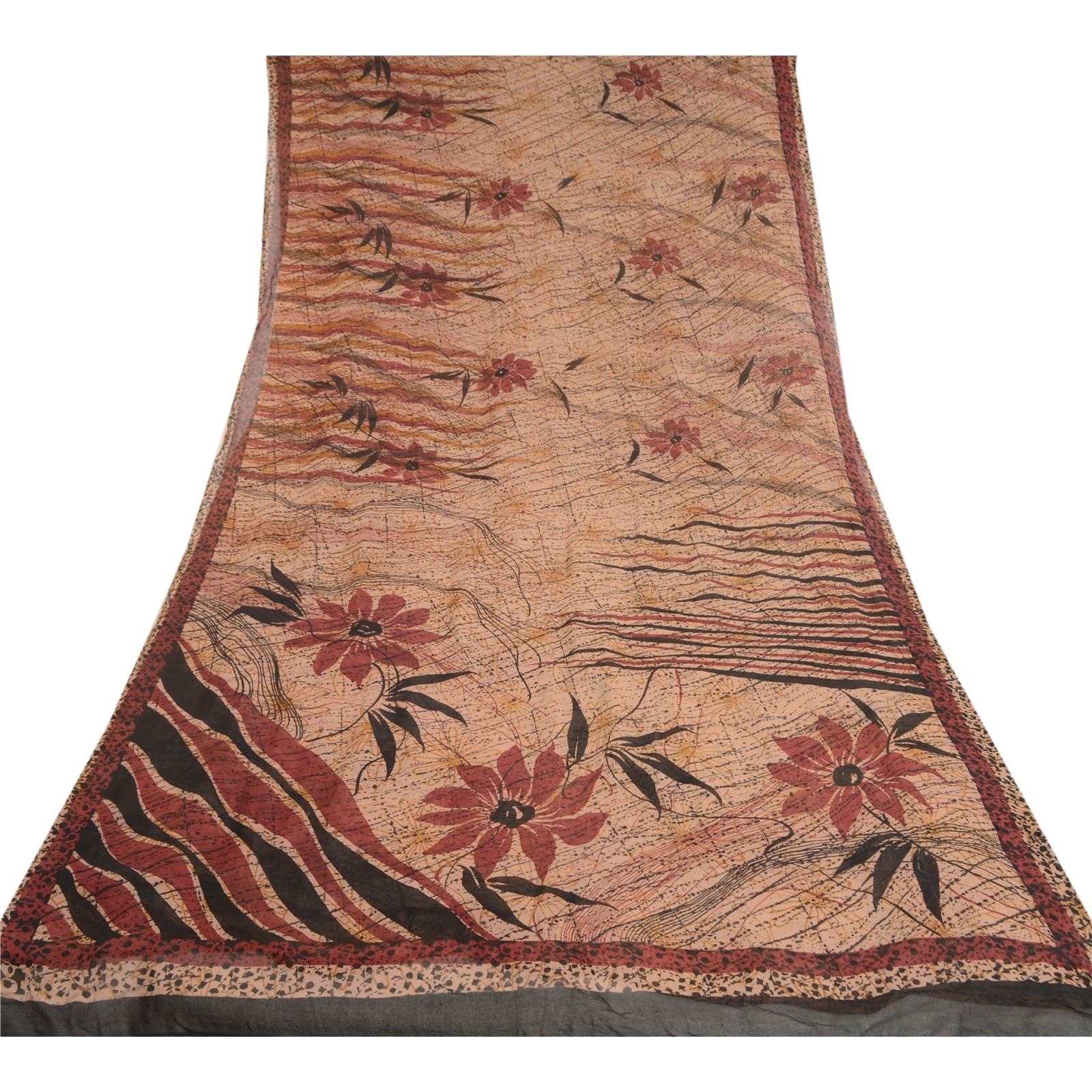 Sanskriti Vintage Saree Peach Pure Georgette Silk Printed Sari 5yd Craft Sustainable Fabric