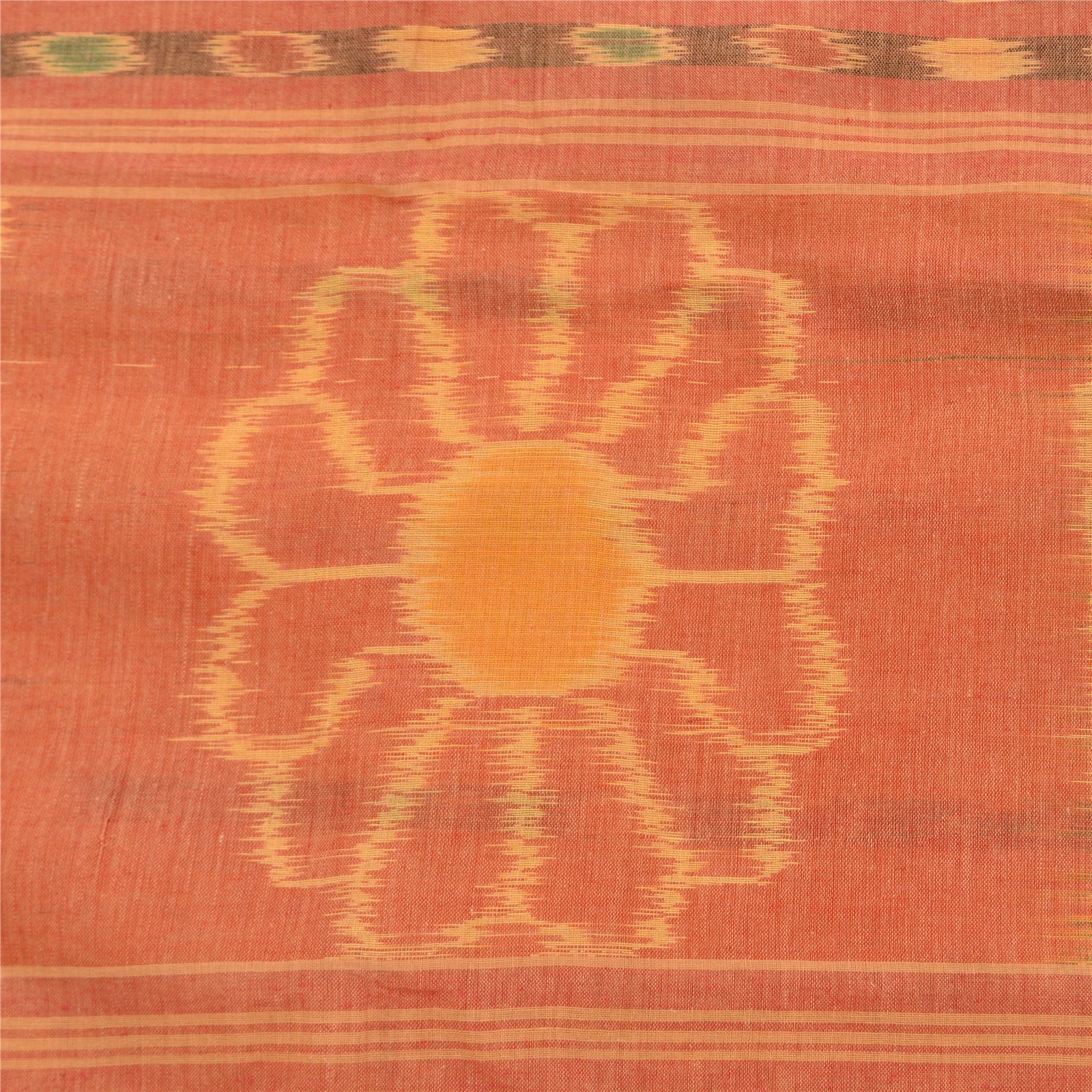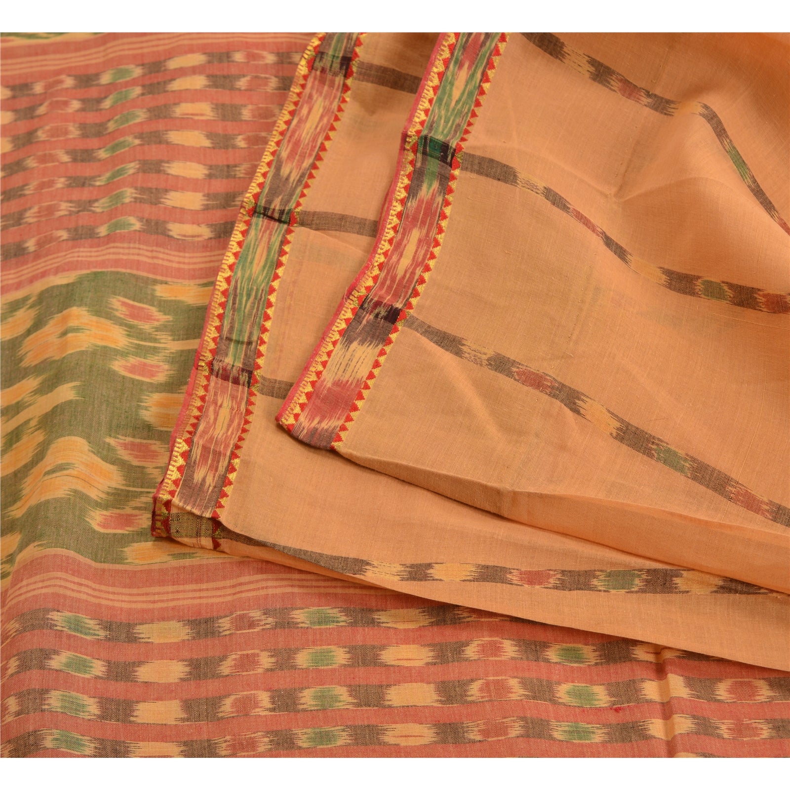 Sanskriti Vintage Saree Peach Sambhalpuri HandWoven Ikat Pure Cotton Sari Sustainable Fabric