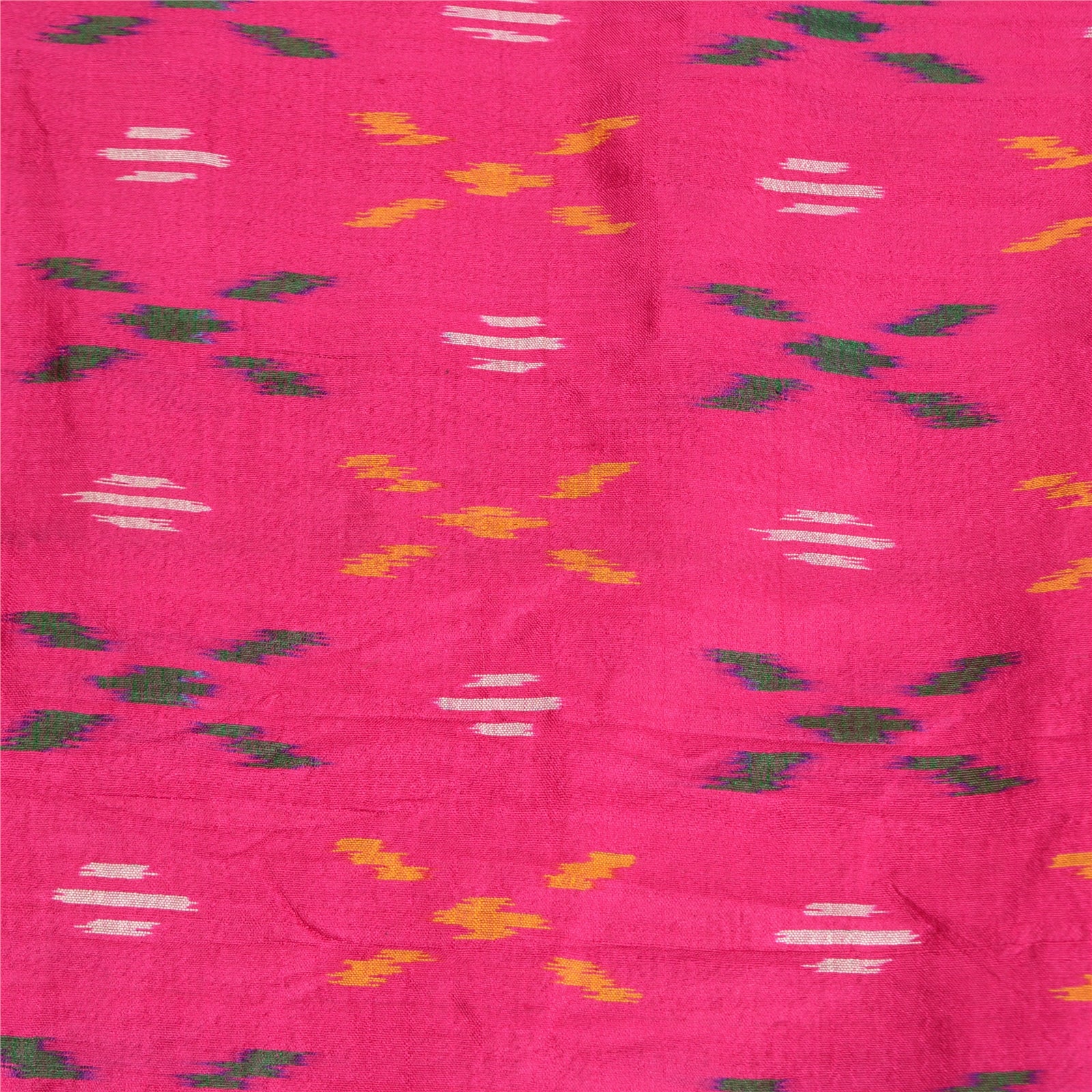 Sanskriti Vintage Saree Pink Sambhalpuri Hand Woven Ikat Pure Silk Sari Sustainable Fabric