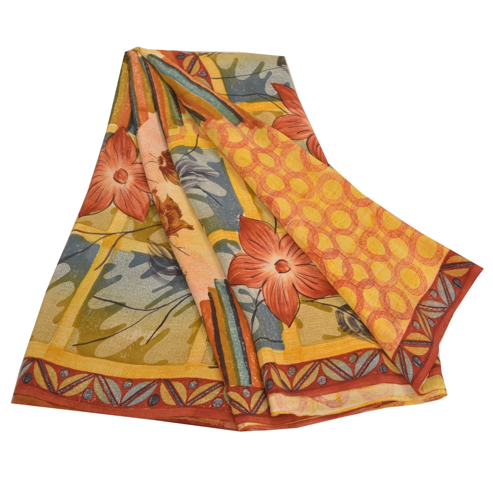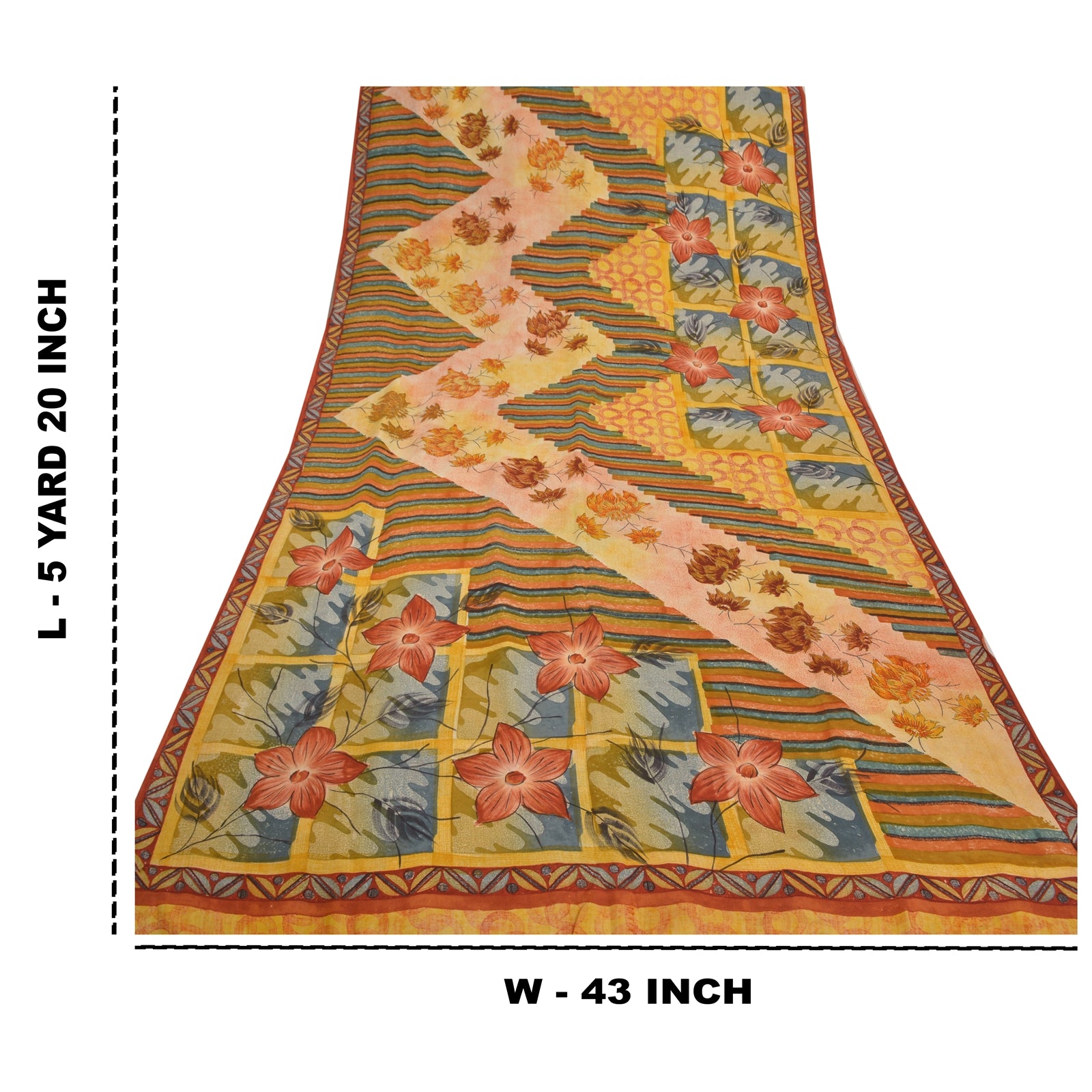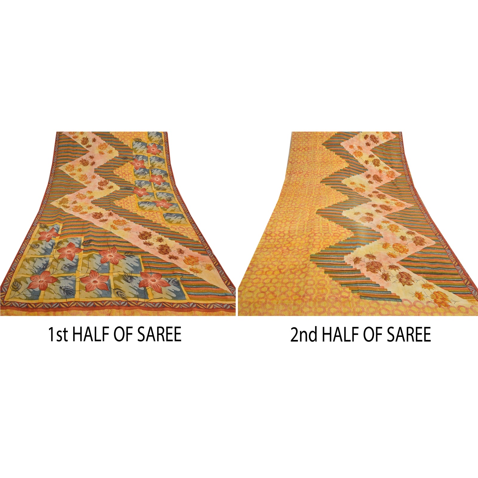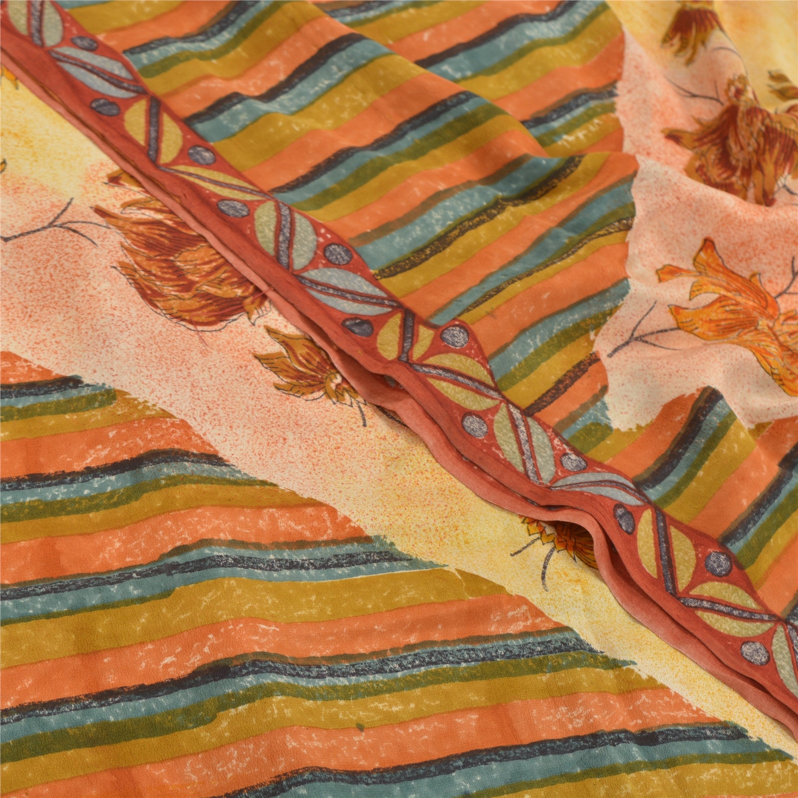 Sanskriti Vintage Sarees 100% Pure Crepe Silk Printed Sari 5 yard Craft Sustainable Fabric