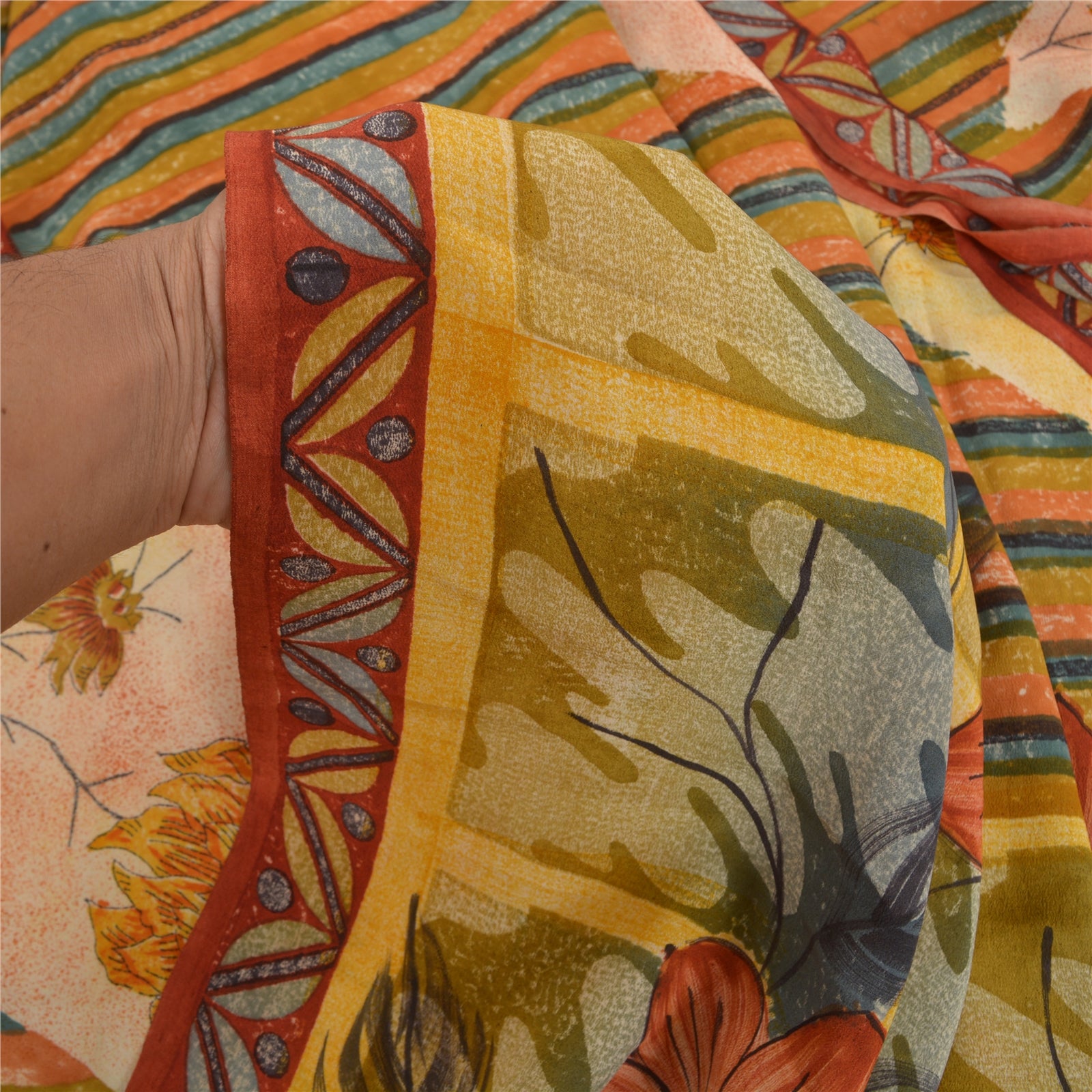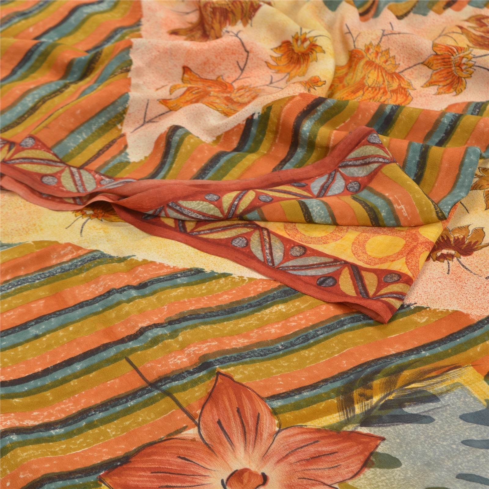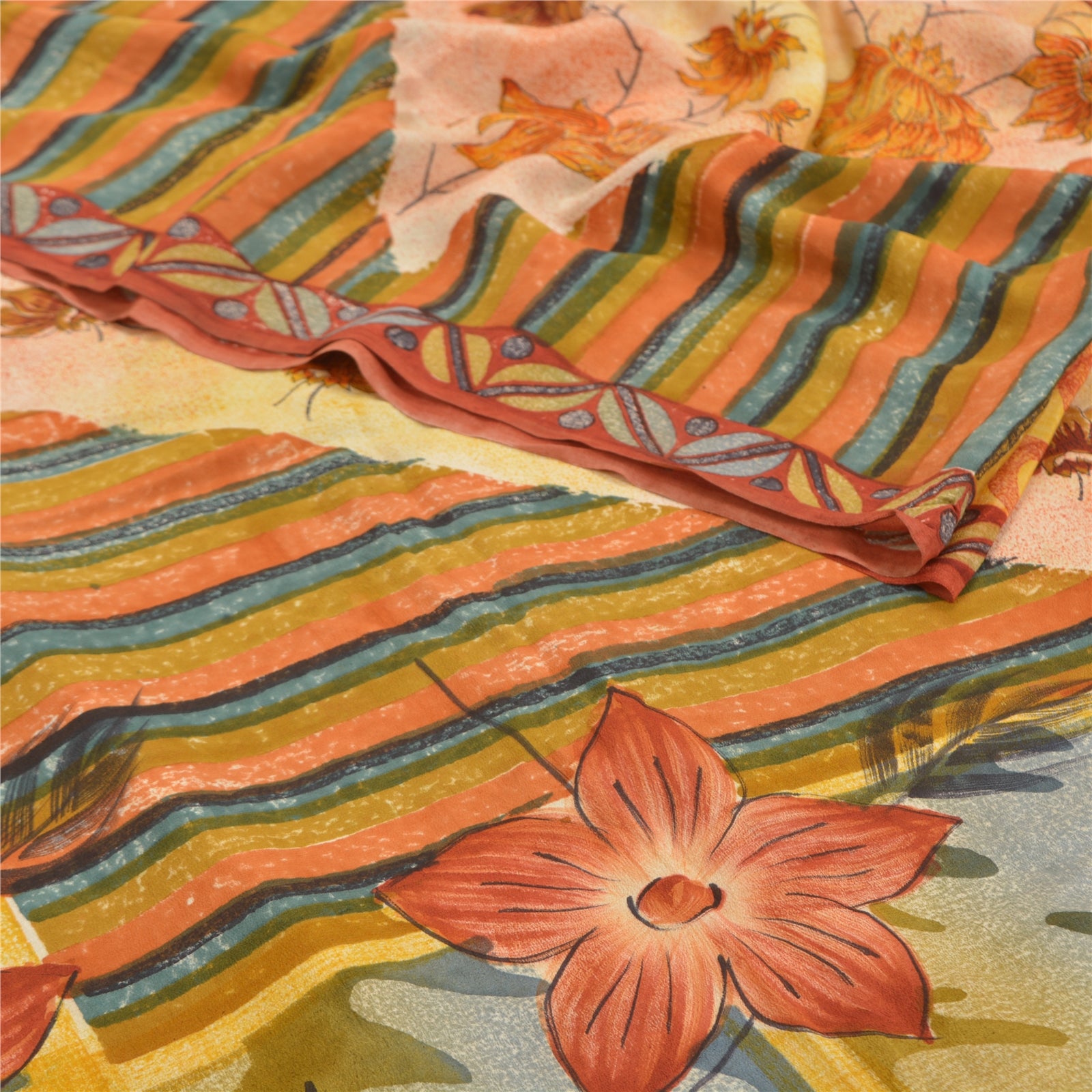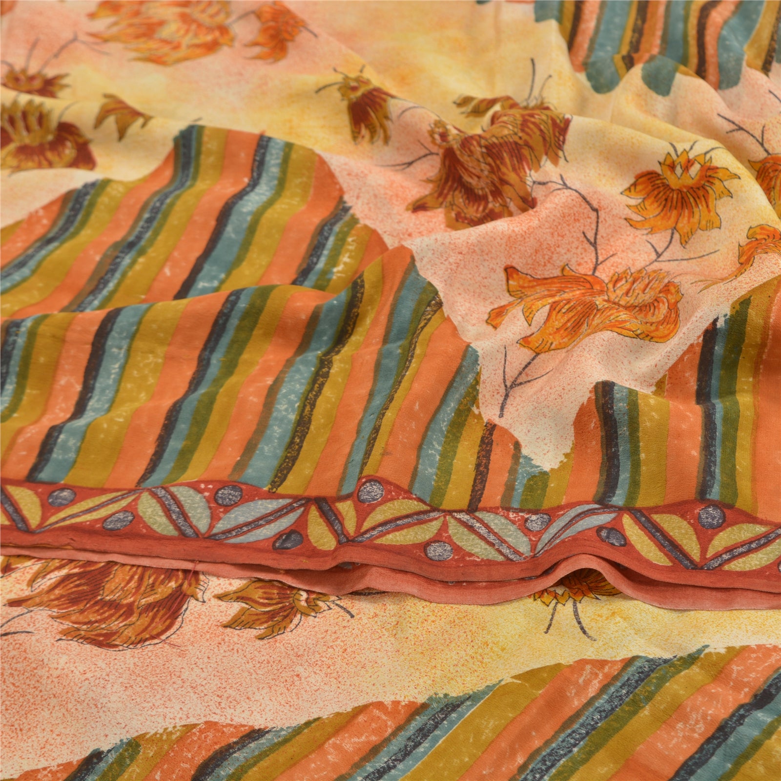 Sanskriti Vintage Sarees 100% Pure Crepe Silk Printed Sari 5 yard Craft Sustainable Fabric