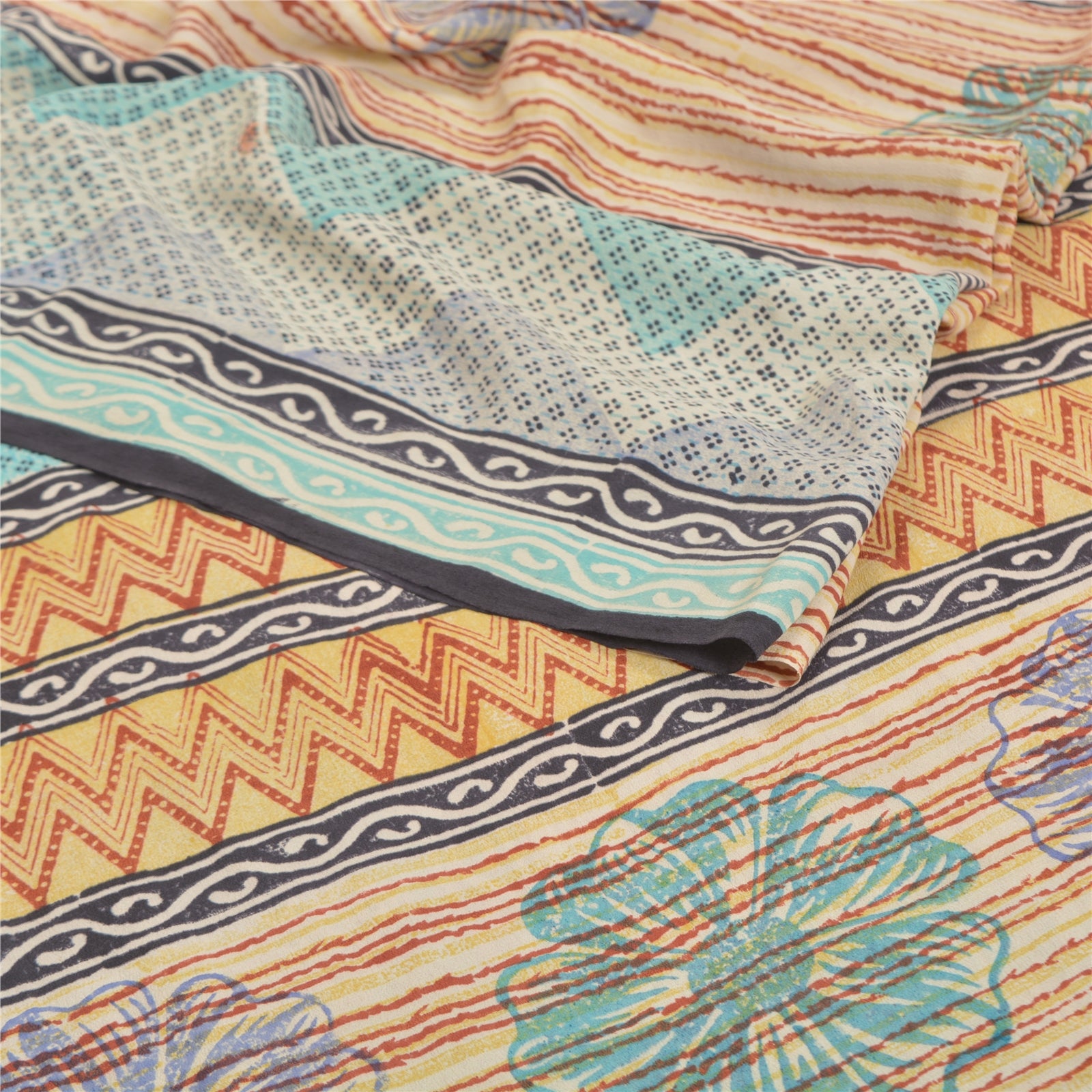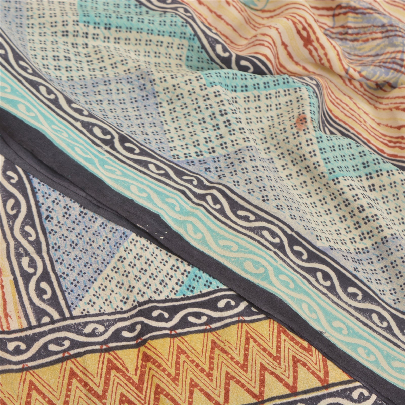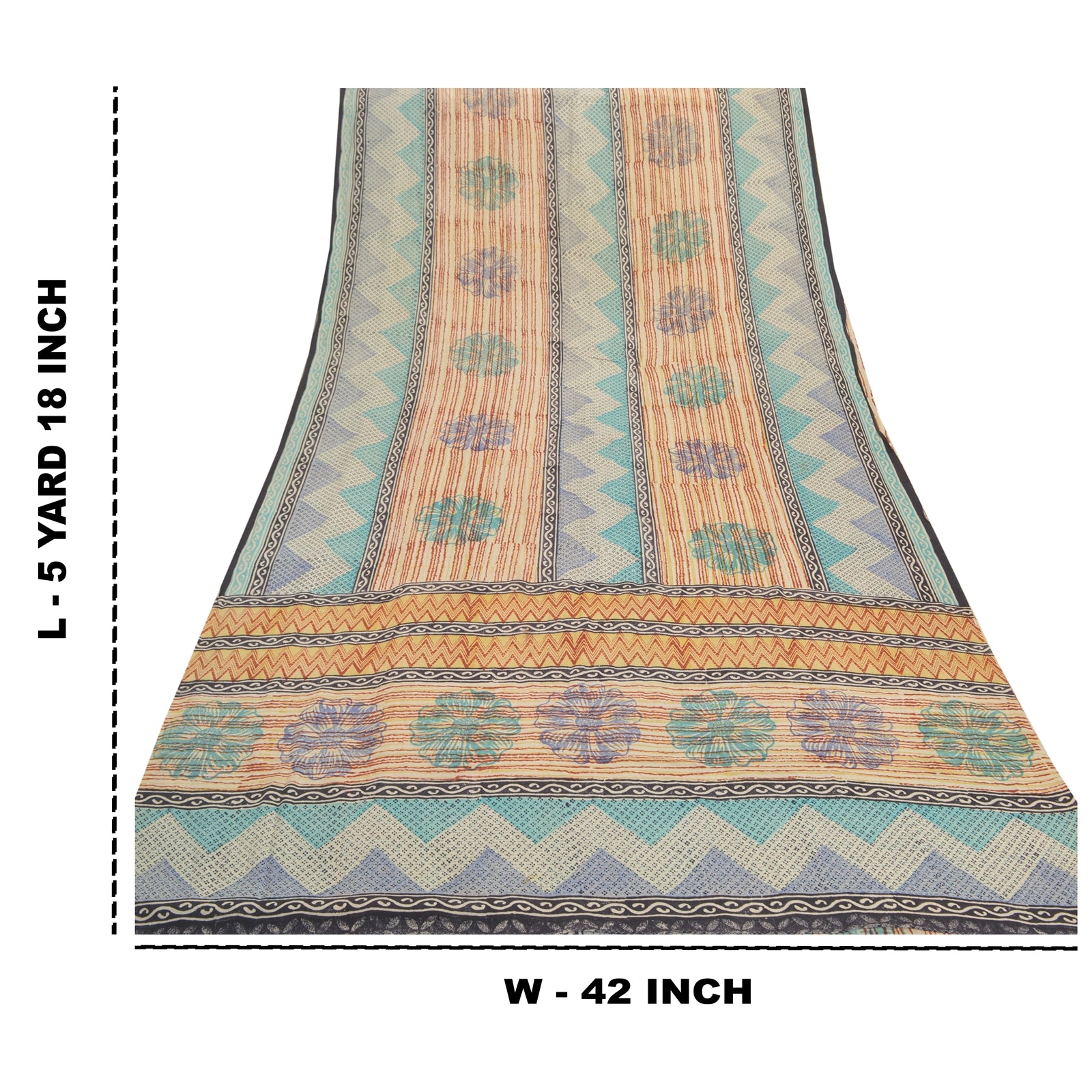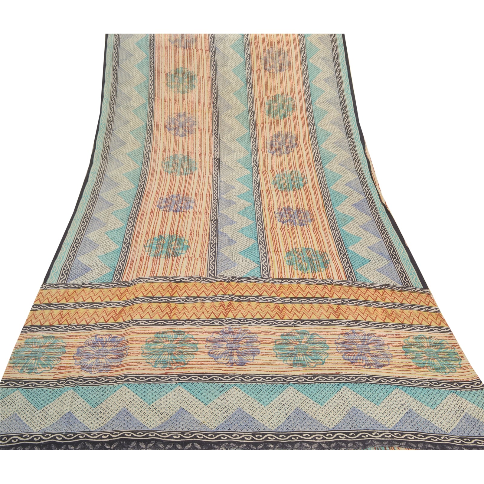 Sanskriti Vintage Sarees 100% Pure Crepe Silk Printed Sari 5 yardCraft Sustainable Fabric