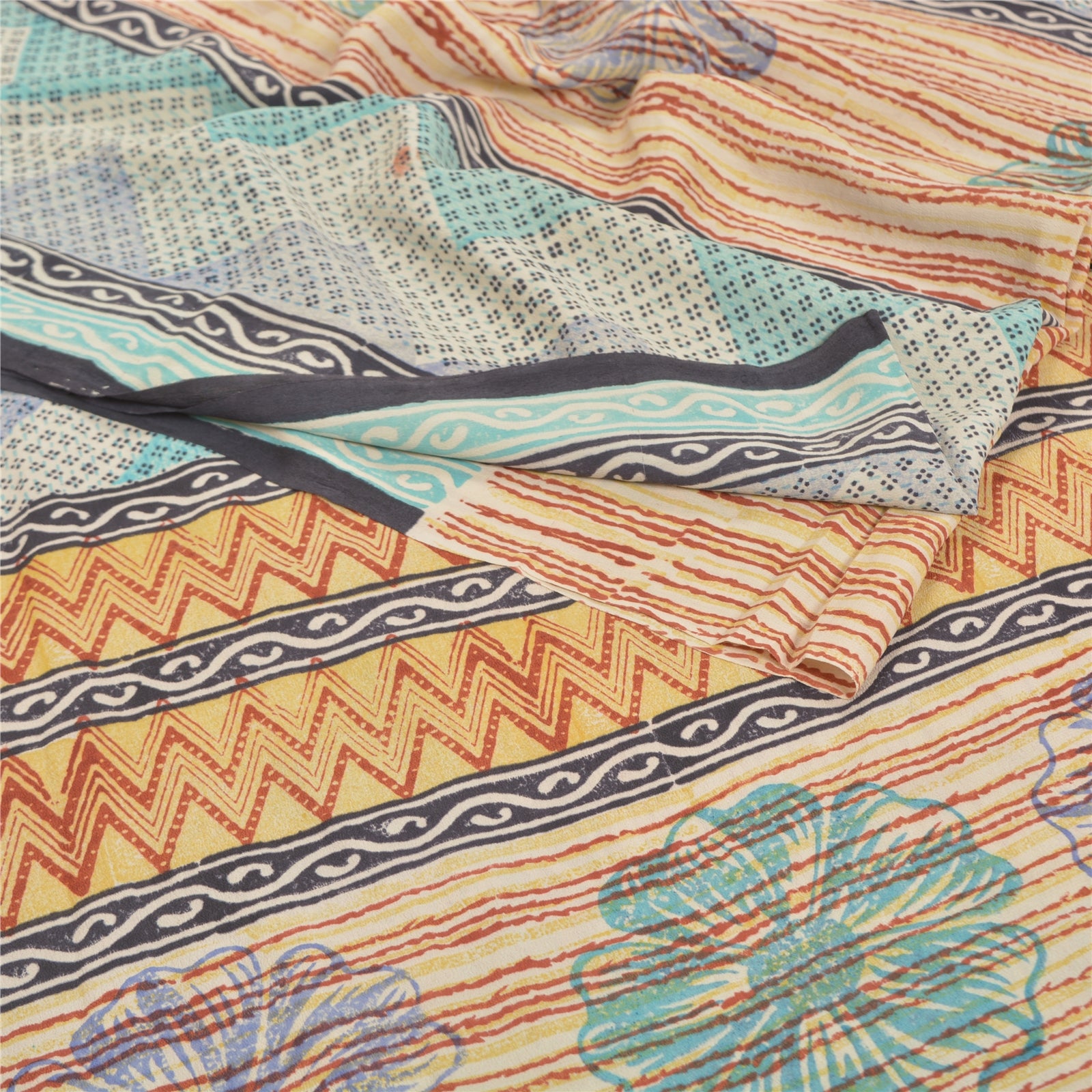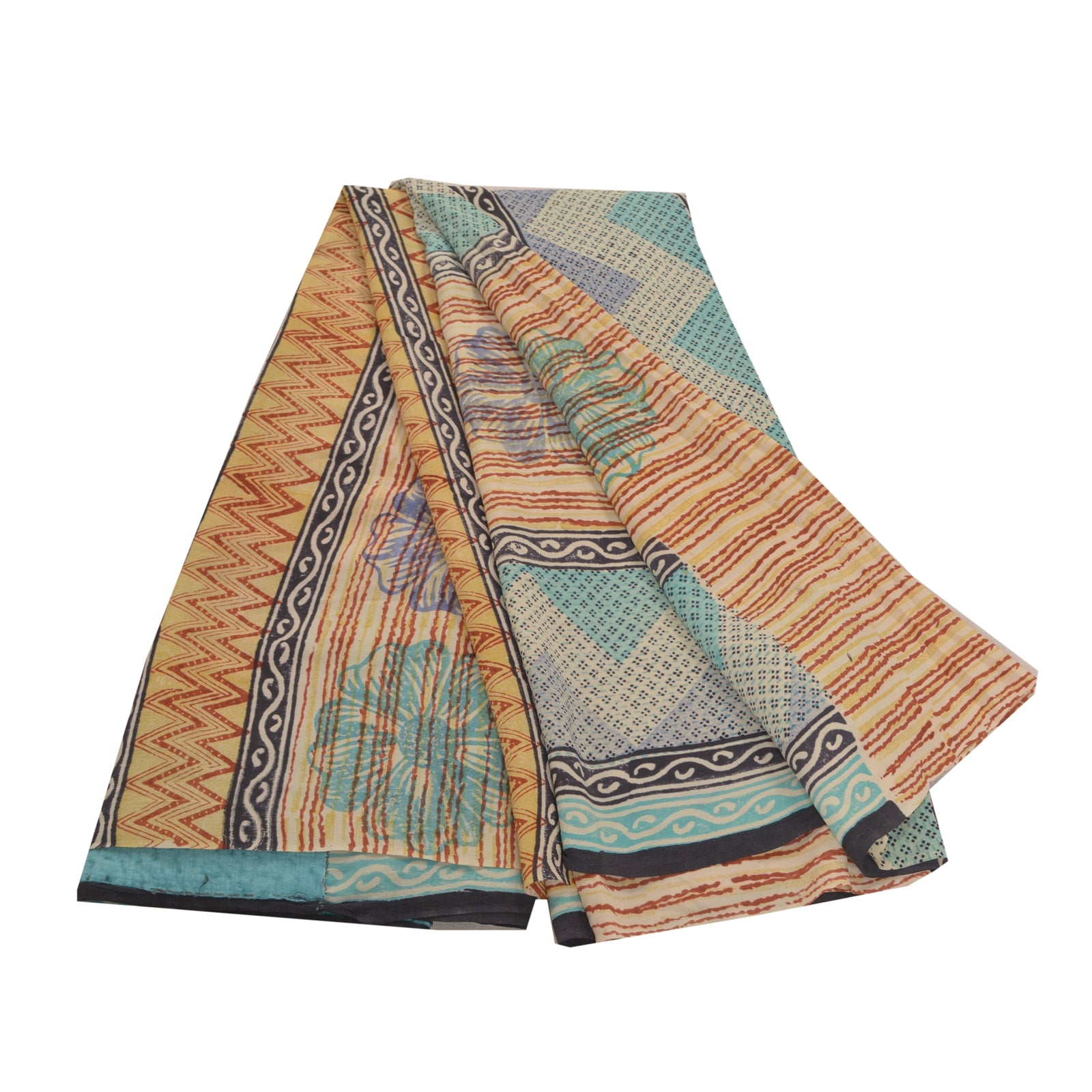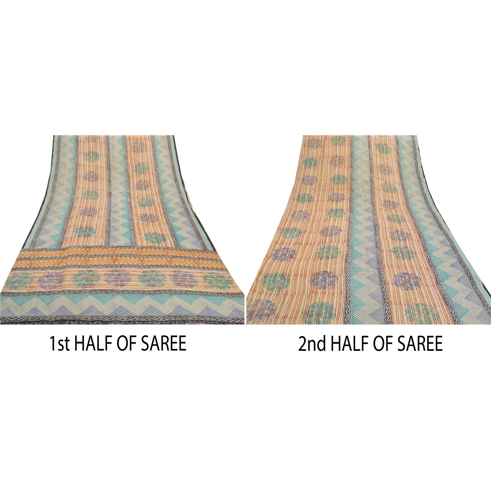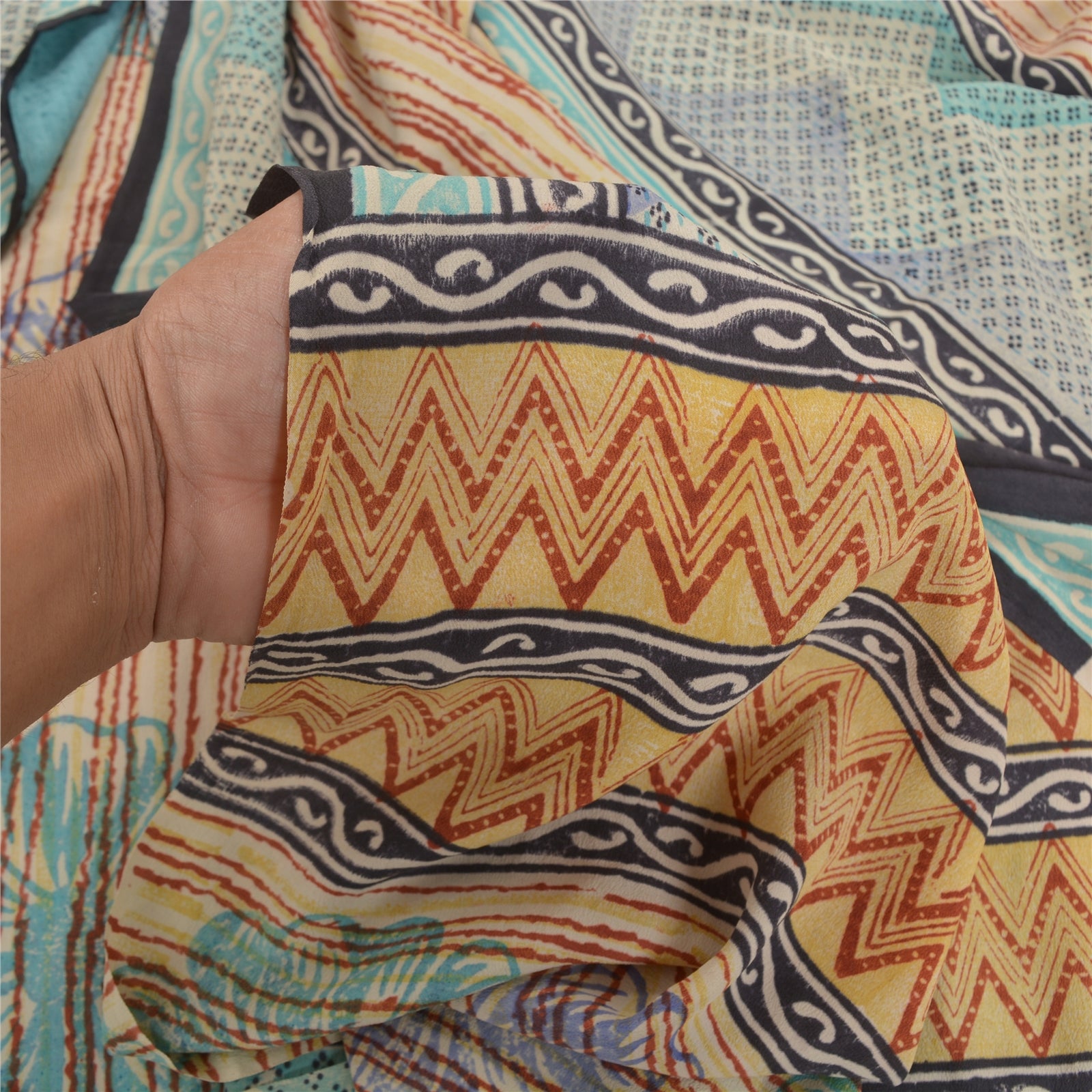 Sanskriti Vintage Sarees 100% Pure Crepe Silk Printed Sari 5 yardCraft Sustainable Fabric