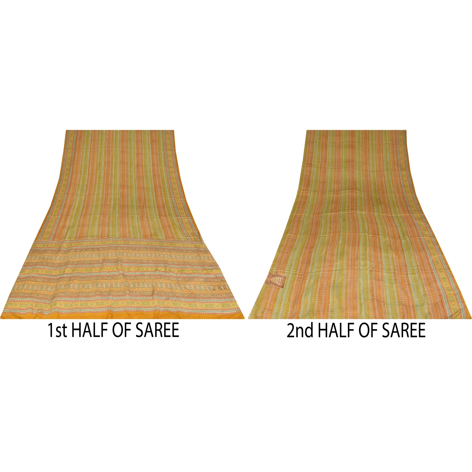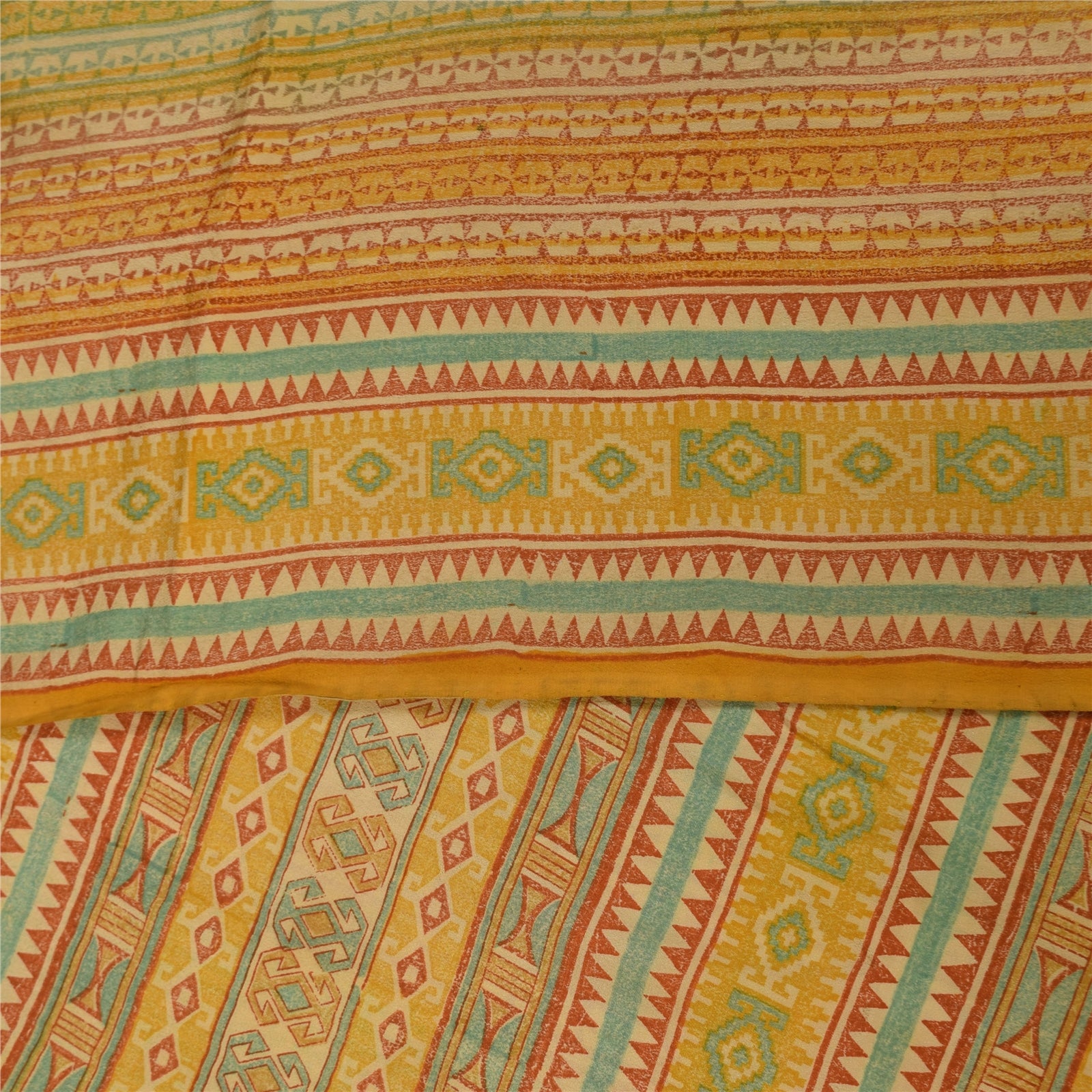 Sanskriti Vintage Sarees 100% Pure Crepe Silk Printed Sari 5+yd Craft Fabric