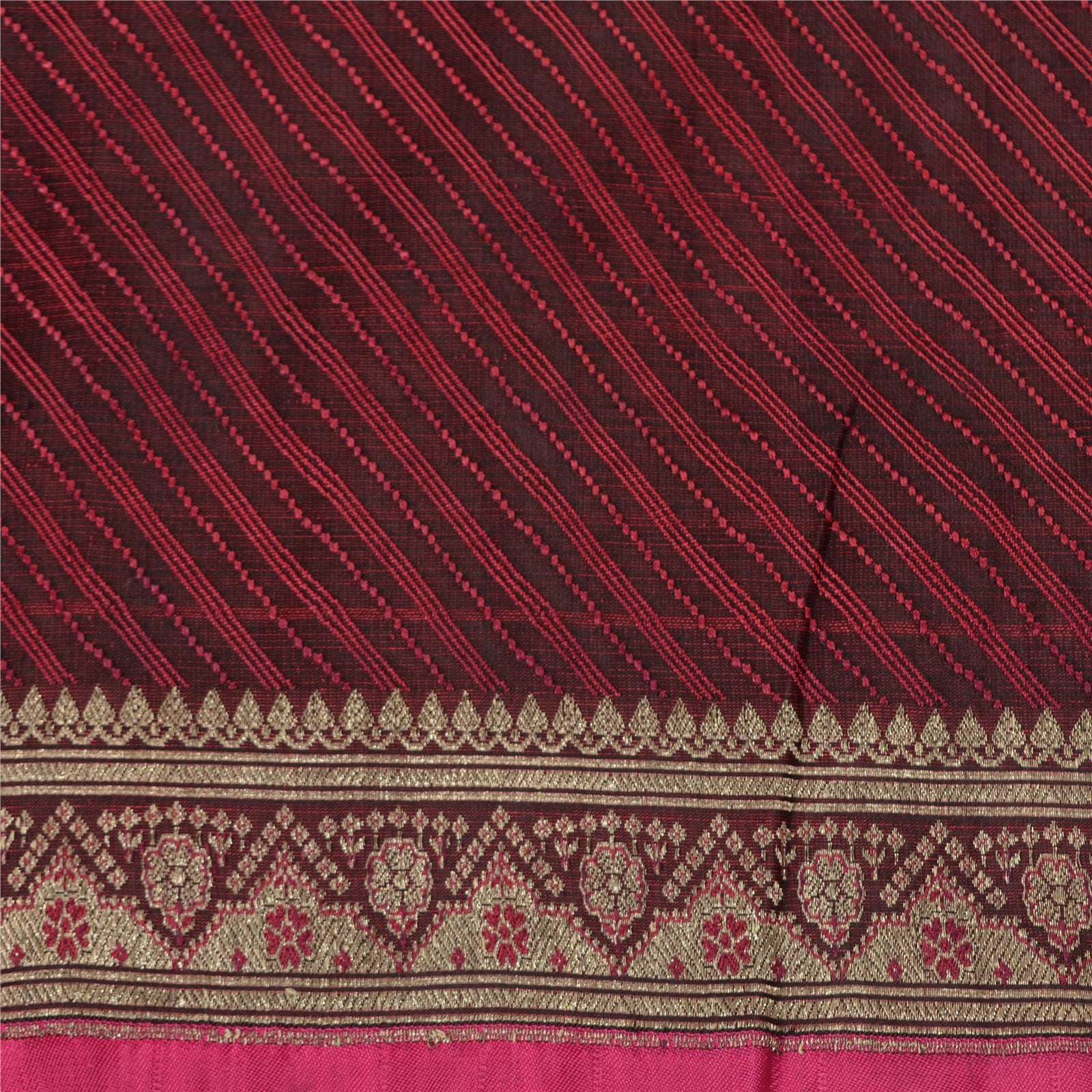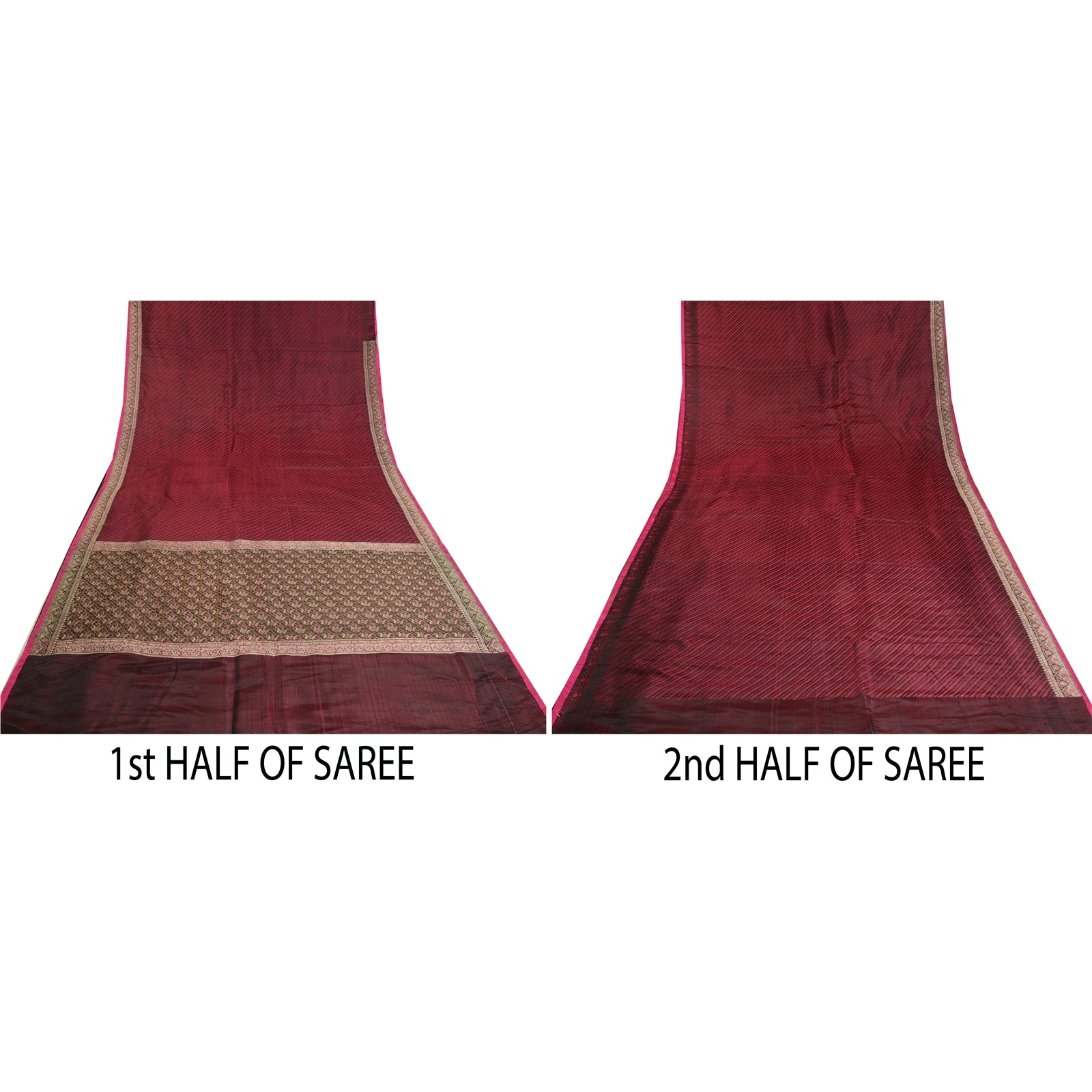 Sanskriti Vintage Sarees Red Pure Satin Silk Woven Brocade/Banarasi Sari Fabric