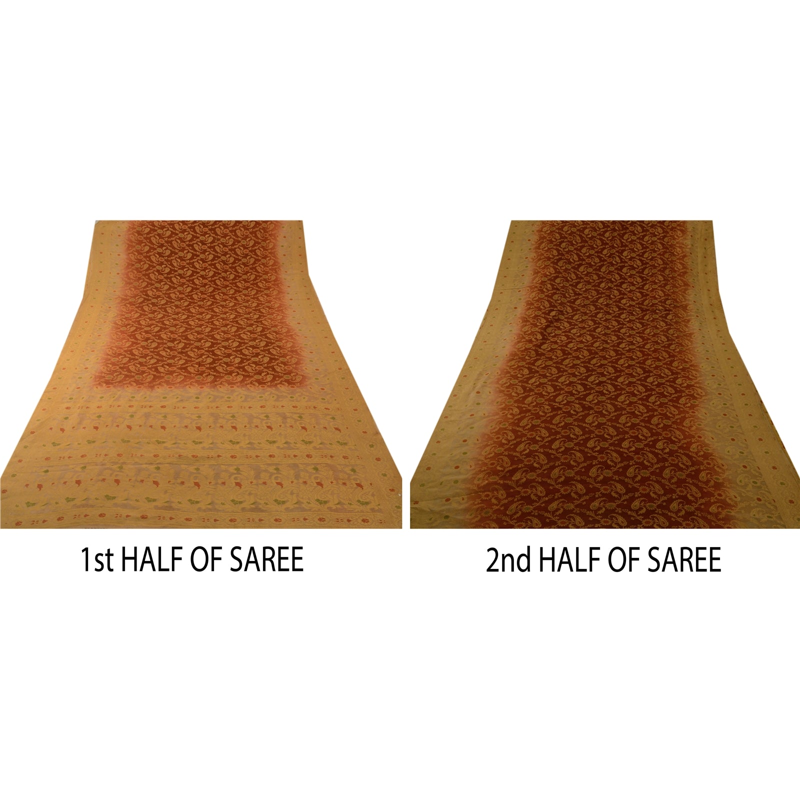 Sanskriti Vintage Sarees 100% Pure Silk Brown Woven Craft 5 Yard Fabric Sari