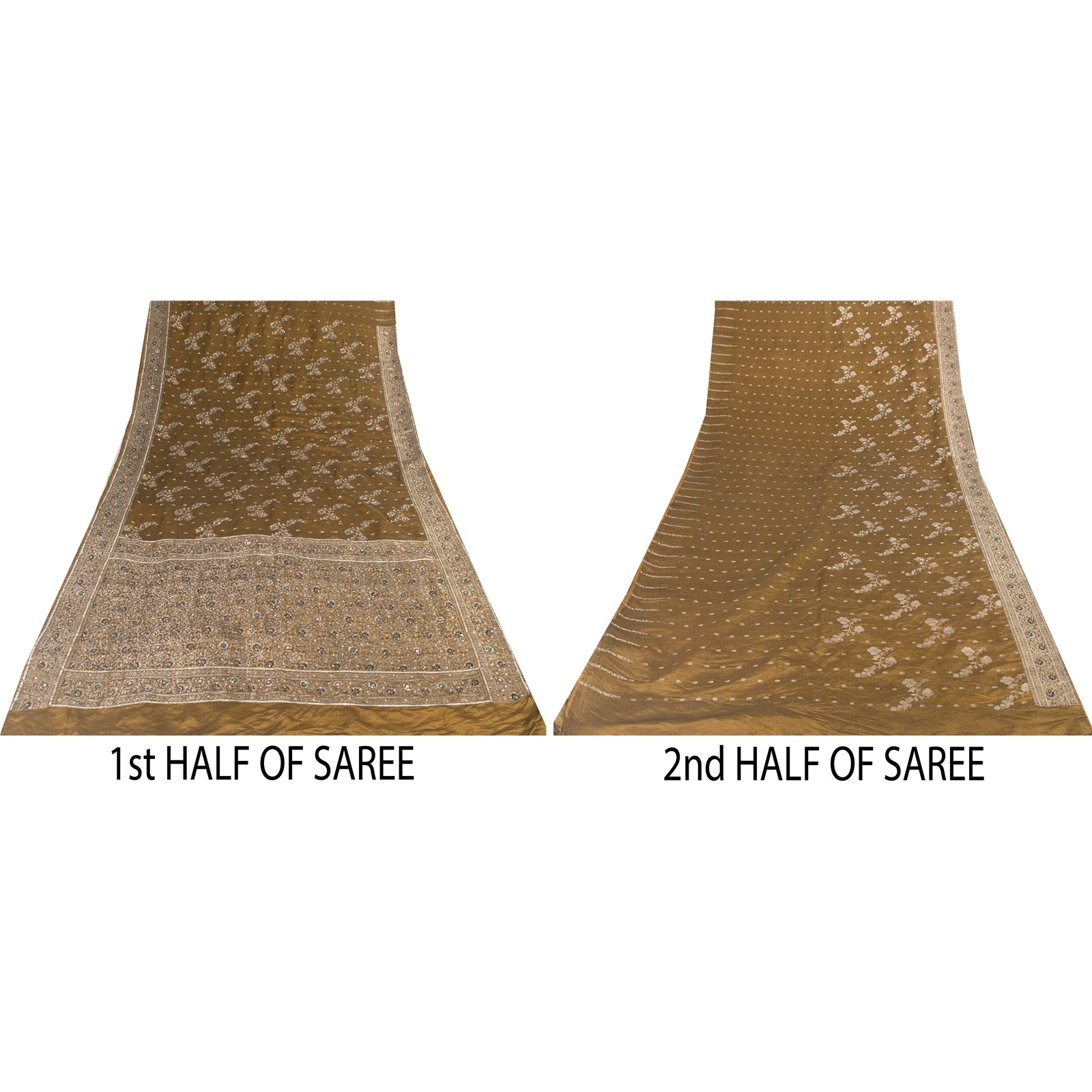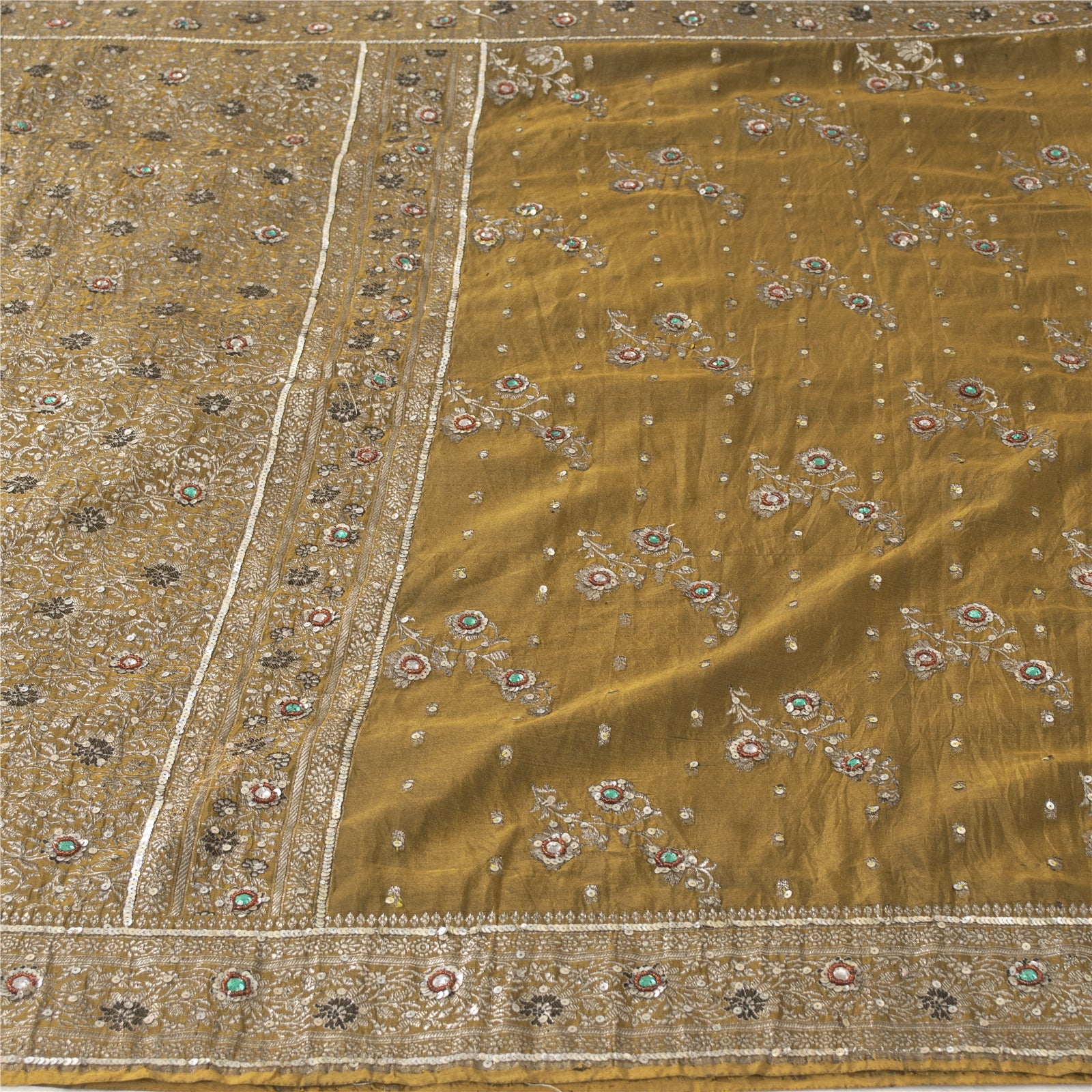 Sanskriti Vintage Sarees Banarasi Brocade Zari Woven Bead Blend Silk Sari Fabric