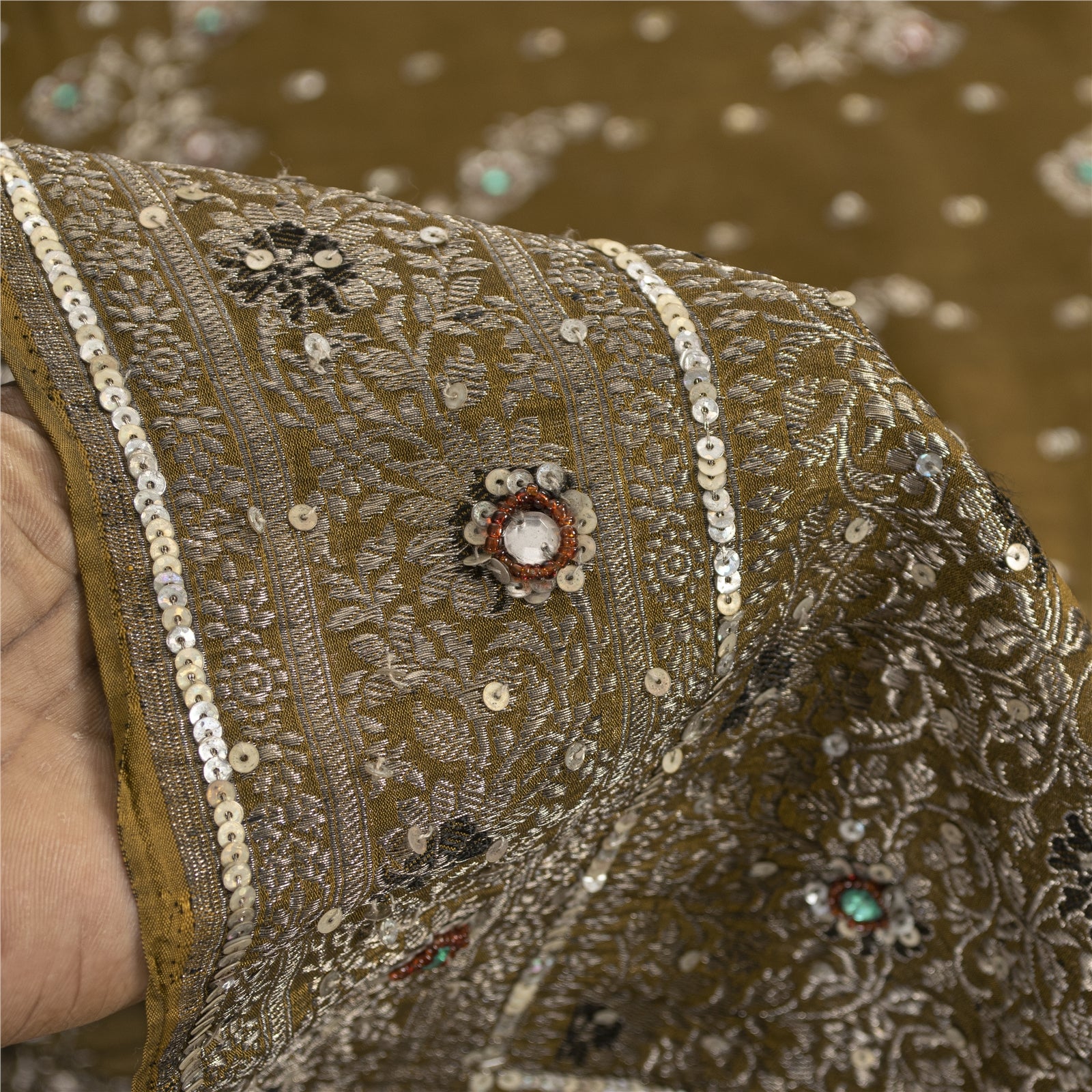 THE ITEM COLOR OR SHADE MAY BE DARKER OR LIGHTER THAN THE PICTURE. Beautiful green colored blend silk brocade/banarasi zari woven & hand embroidered sari.' Pallu & Border has floral design with zari woven work, sequins, rhinestone & dabka work. Similar work in center part of saree. This saree can be used for various crafting ideas too. Use it for dress designing, as a throw, as window dressing, upholstery, table linen and much more. Let your creative juices flow. Shipping Note: 'International buyers please note: Import duties, taxes, and charges are not included in the item price or postage cost. These charges are the buyer's responsibility. Please check with your country's customs office to determine what these additional costs will be prior to bidding or buying. Buyer will pay custom duty/tax. It is calculated and charged differently by every country. As a seller I do not have any control over it. VAT or sales tax is calculated by the platform at the time of checkout. Customs charge is payable at the time of delivery.' BHS-2844