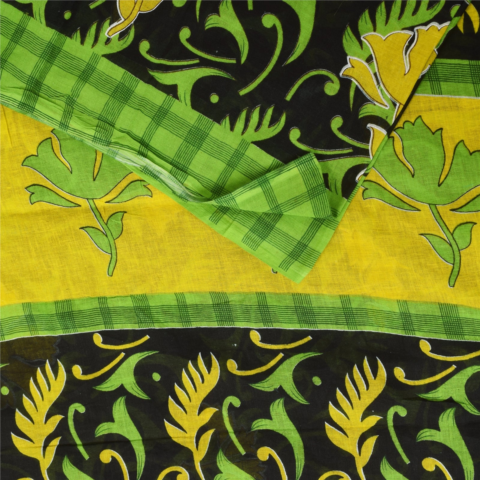 Sanskriti Vintage Sarees Black 100% Pure Cotton Printed Sari 5+yd Craft Sustainable Fabric