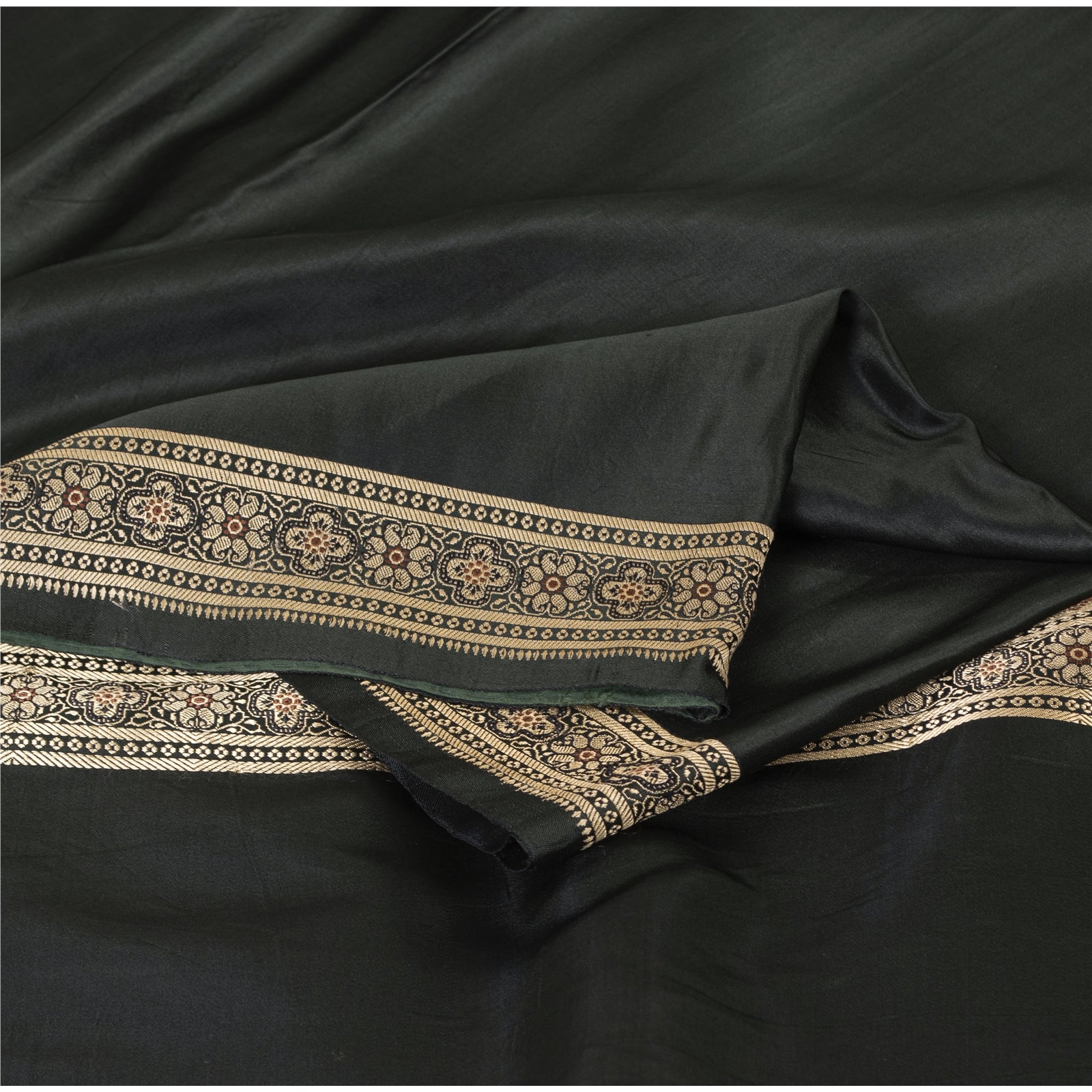 THE ITEM COLOR OR SHADE MAY BE DARKER OR LIGHTER THAN THE PICTURE. Beautiful black colored pure satin silk brocade/banarasi woven sari.' Pallu & Border has floral design with woven work. Solid black color in center part of saree. This saree can be used for various crafting ideas too. Use it for dress designing, as a throw, as window dressing, upholstery, table linen and much more. Let your creative juices flow. Shipping Note: 'International buyers please note: Import duties, taxes, and charges are not included in the item price or postage cost. These charges are the buyer's responsibility. Please check with your country's customs office to determine what these additional costs will be prior to bidding or buying. Buyer will pay custom duty/tax. It is calculated and charged differently by every country. As a seller I do not have any control over it. VAT or sales tax is calculated by the platform at the time of checkout. Customs charge is payable at the time of delivery.' BHS-2829