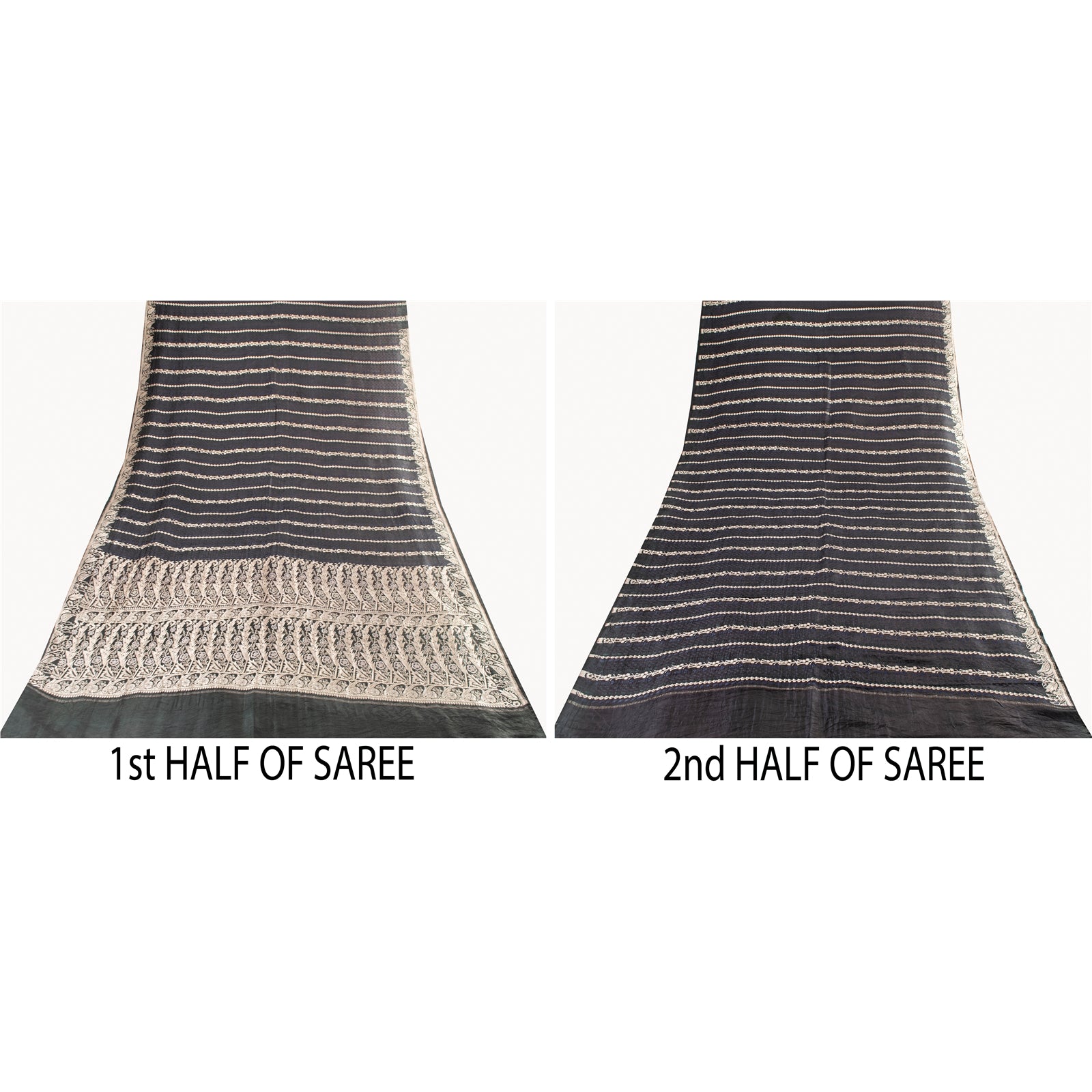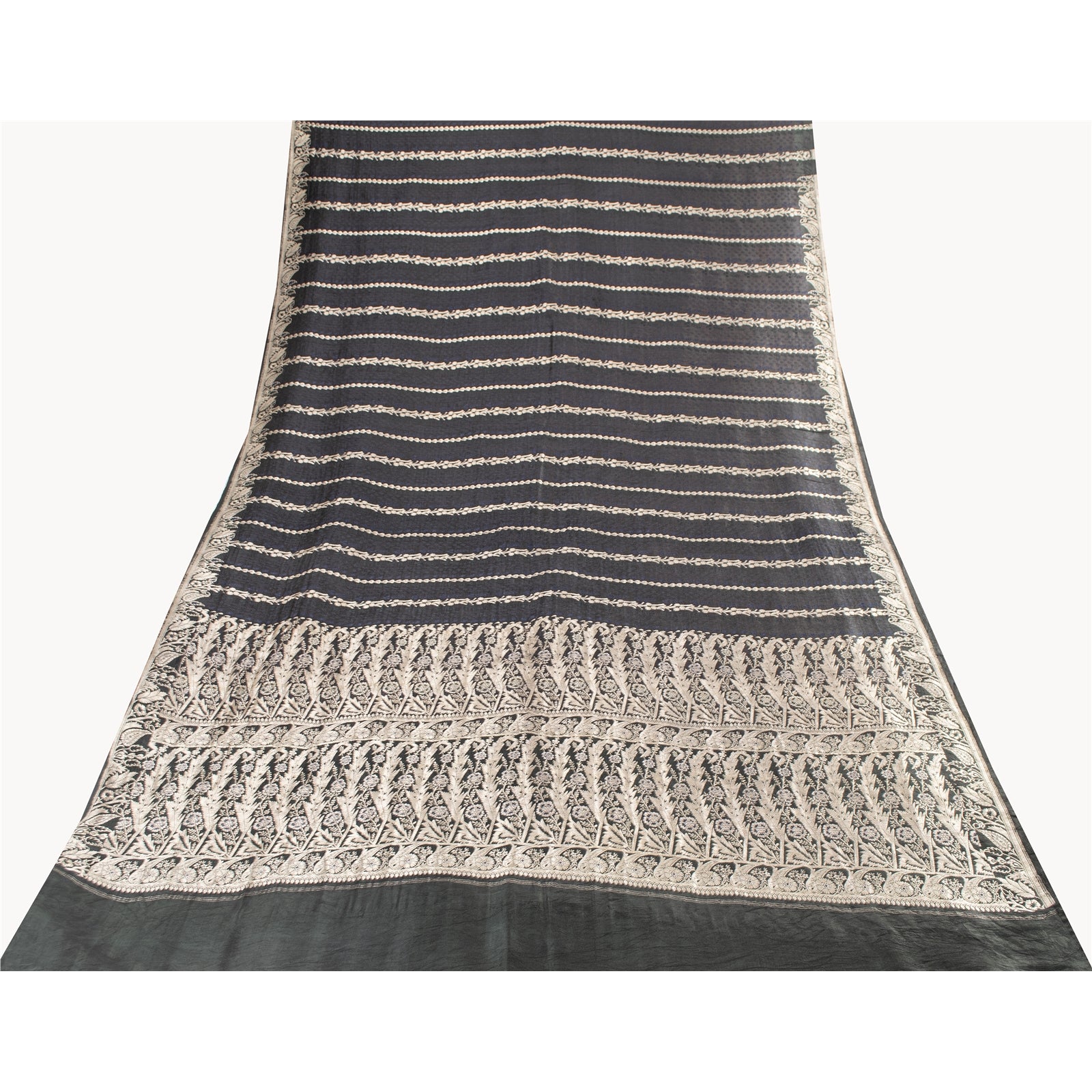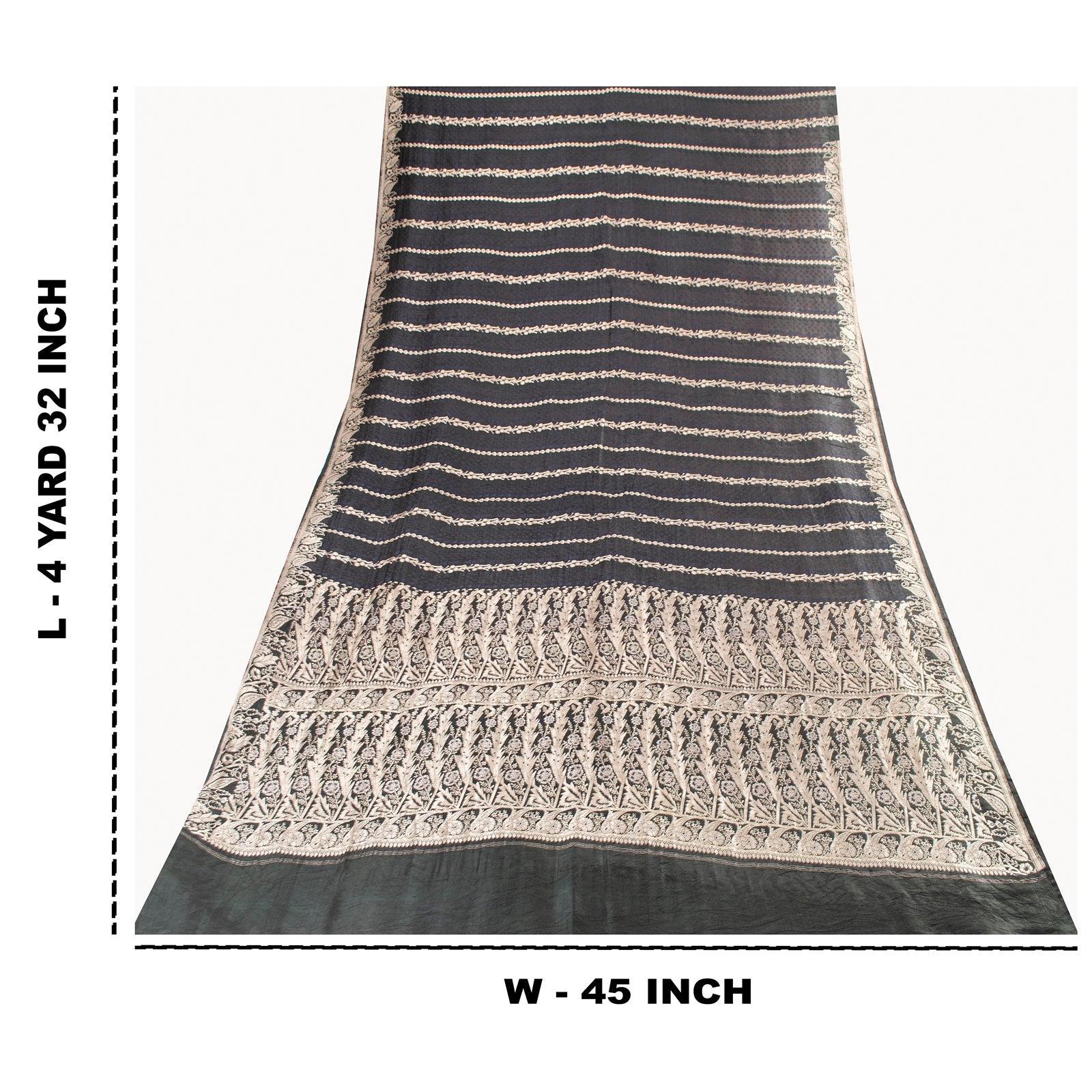THE ITEM COLOR OR SHADE MAY BE DARKER OR LIGHTER THAN THE PICTURE. Beautiful black colored pure satin silk brocade/banarasi zari woven sari.' Pallu & Border has floral design with zari woven work. Similar work in center part of saree. This saree can be used for various crafting ideas too. Use it for dress designing, as a throw, as window dressing, upholstery, table linen and much more. Let your creative juices flow. Shipping Note: 'International buyers please note: Import duties, taxes, and charges are not included in the item price or postage cost. These charges are the buyer's responsibility. Please check with your country's customs office to determine what these additional costs will be prior to bidding or buying. Buyer will pay custom duty/tax. It is calculated and charged differently by every country. As a seller I do not have any control over it. VAT or sales tax is calculated by the platform at the time of checkout. Customs charge is payable at the time of delivery.' BHS-2827