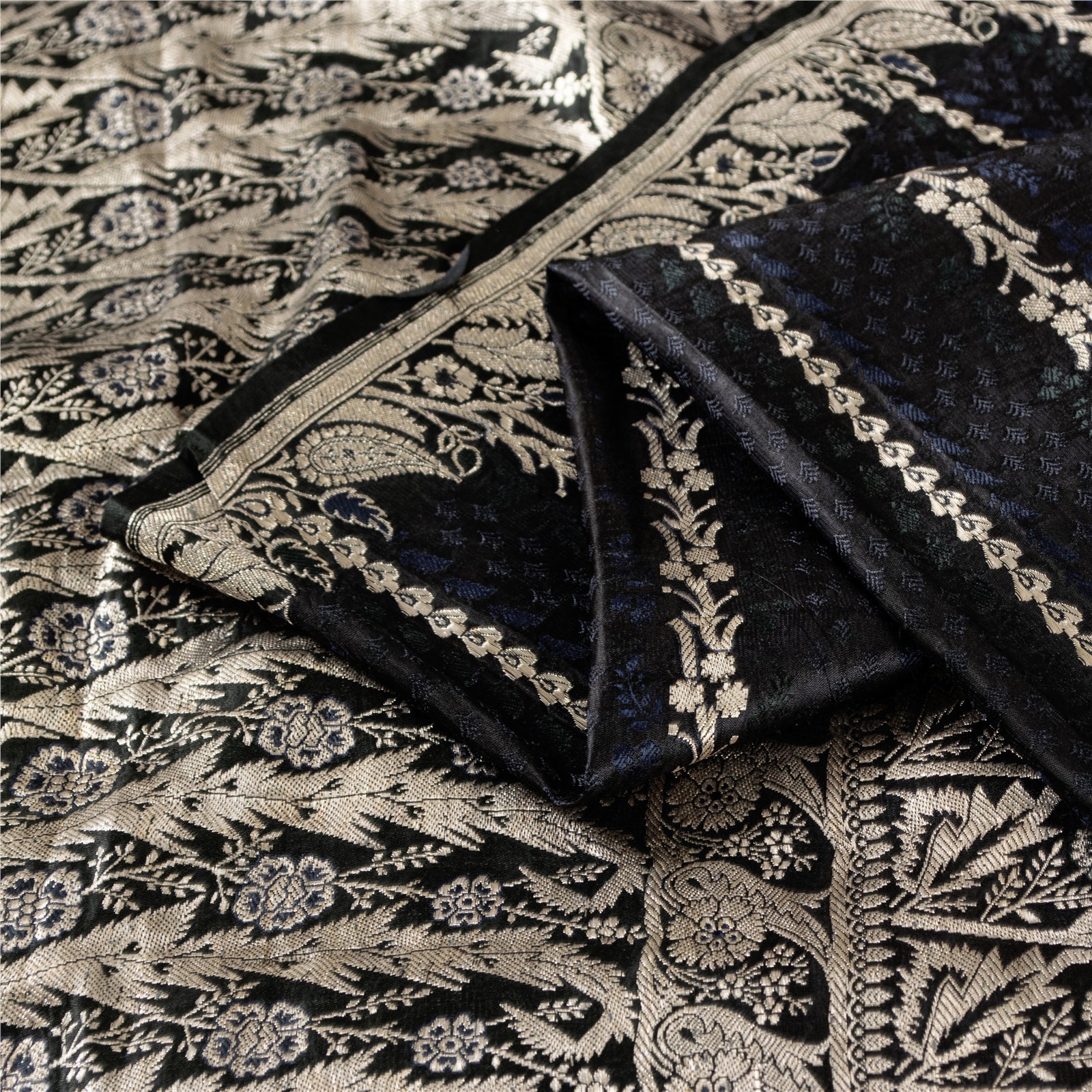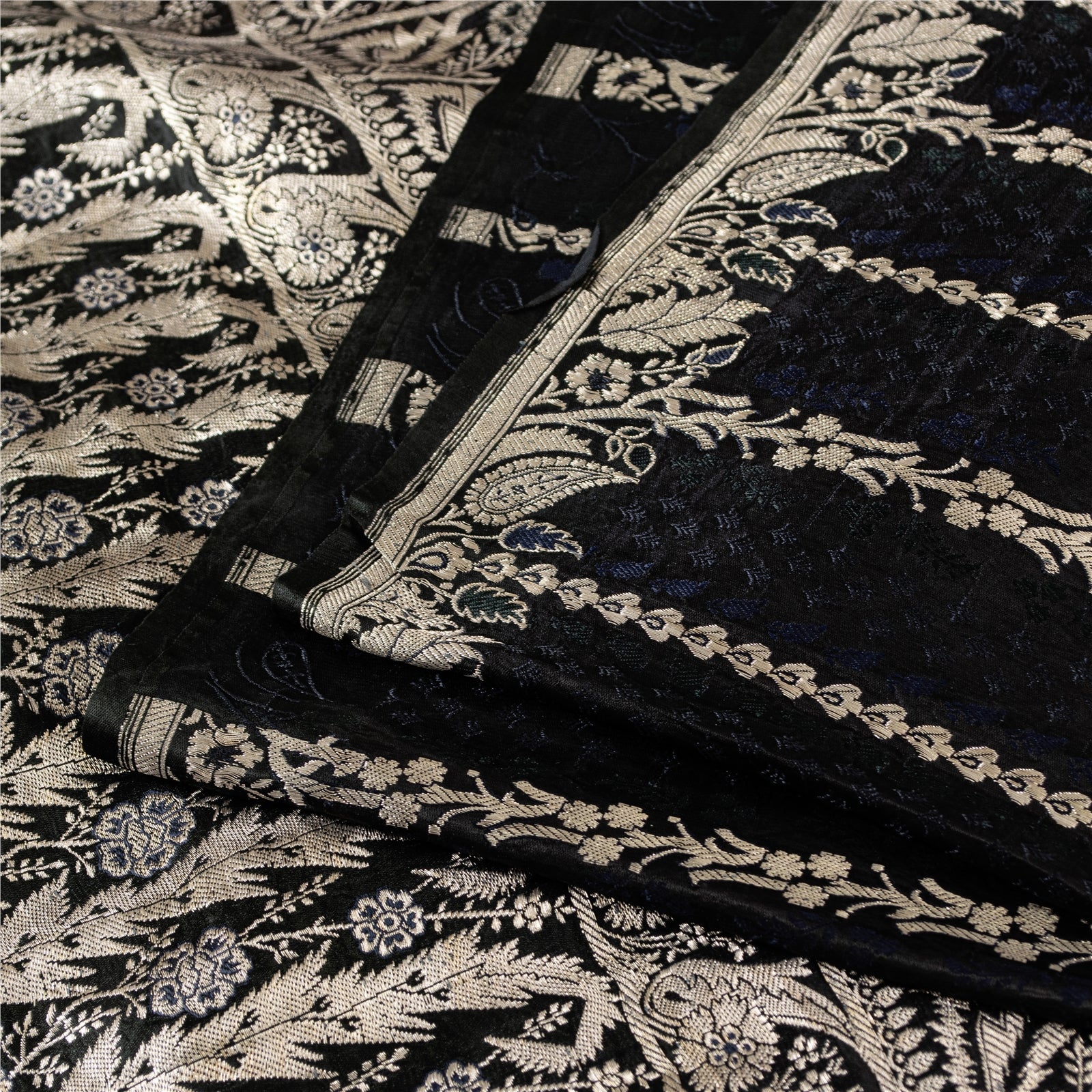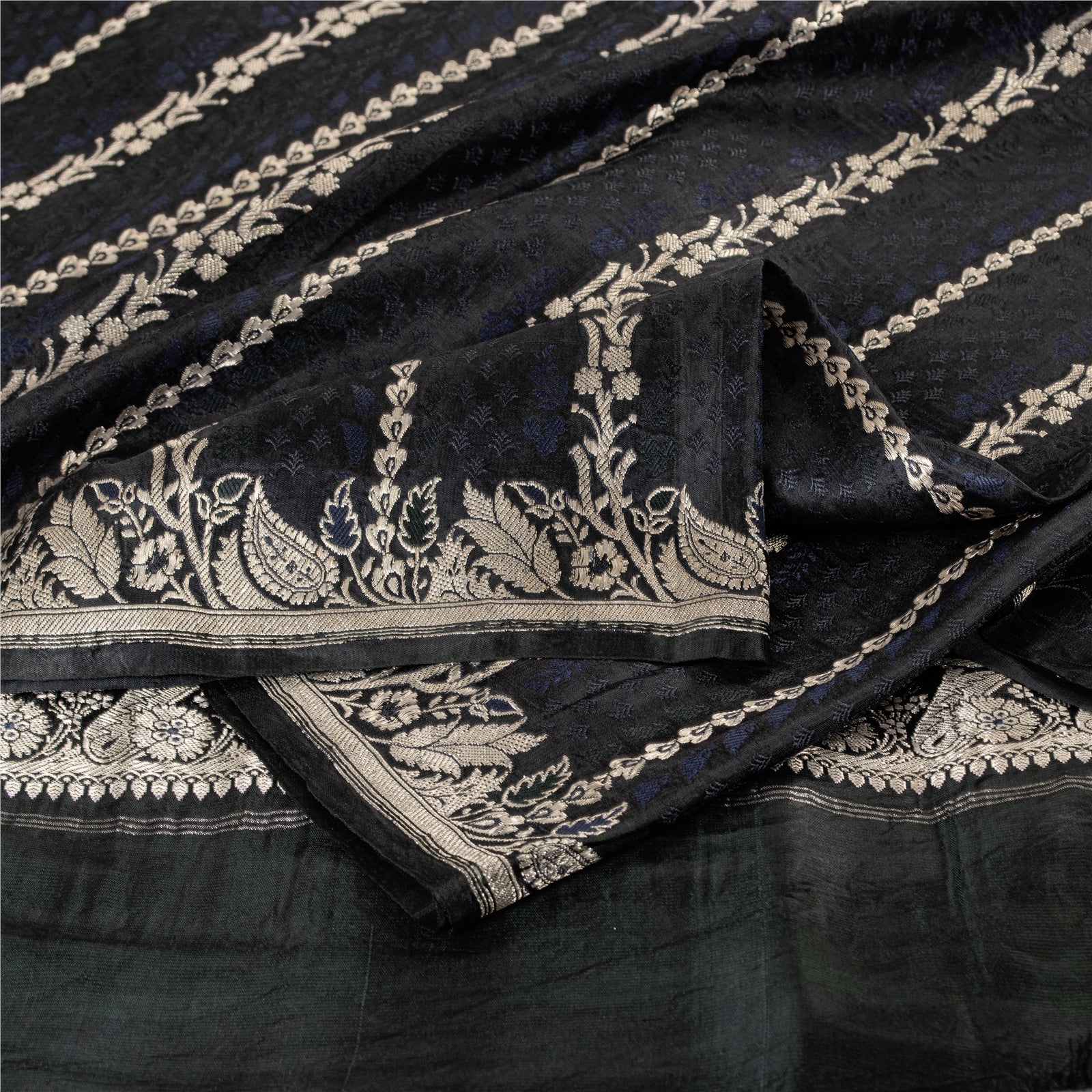 THE ITEM COLOR OR SHADE MAY BE DARKER OR LIGHTER THAN THE PICTURE. Beautiful black colored pure satin silk brocade/banarasi zari woven sari.' Pallu & Border has floral design with zari woven work. Similar work in center part of saree. This saree can be used for various crafting ideas too. Use it for dress designing, as a throw, as window dressing, upholstery, table linen and much more. Let your creative juices flow. Shipping Note: 'International buyers please note: Import duties, taxes, and charges are not included in the item price or postage cost. These charges are the buyer's responsibility. Please check with your country's customs office to determine what these additional costs will be prior to bidding or buying. Buyer will pay custom duty/tax. It is calculated and charged differently by every country. As a seller I do not have any control over it. VAT or sales tax is calculated by the platform at the time of checkout. Customs charge is payable at the time of delivery.' BHS-2827