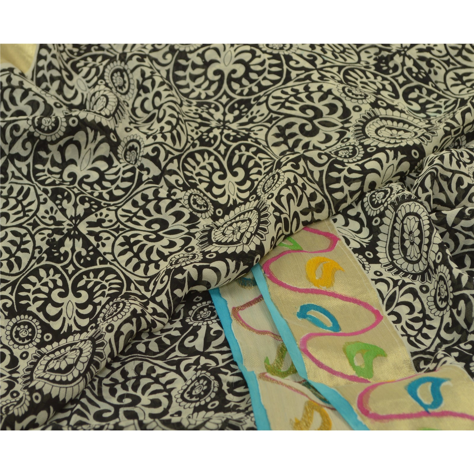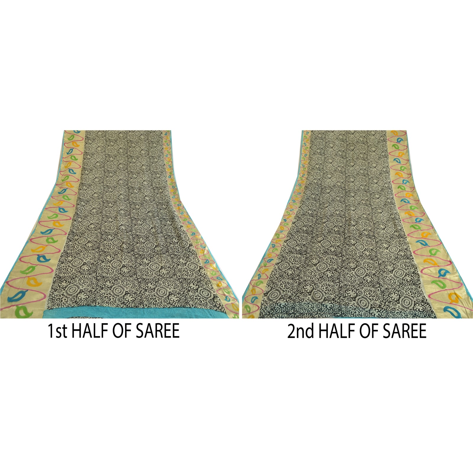 Sanskriti Vintage Sarees Black Blend Georgette Woven Border Printed Sari Sustainable Fabric