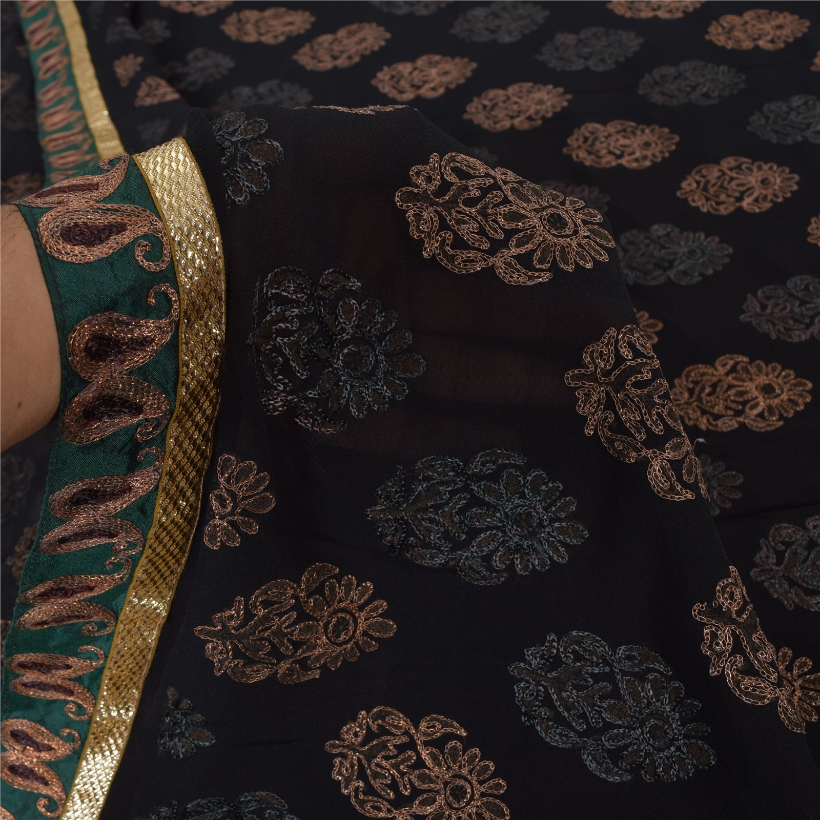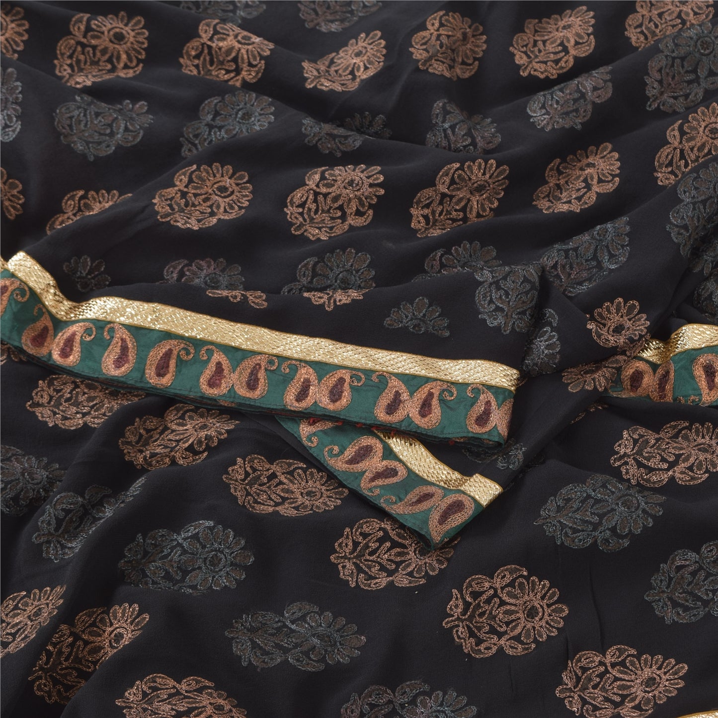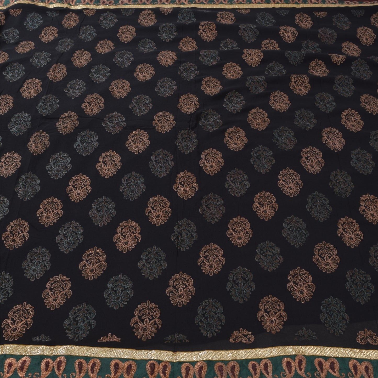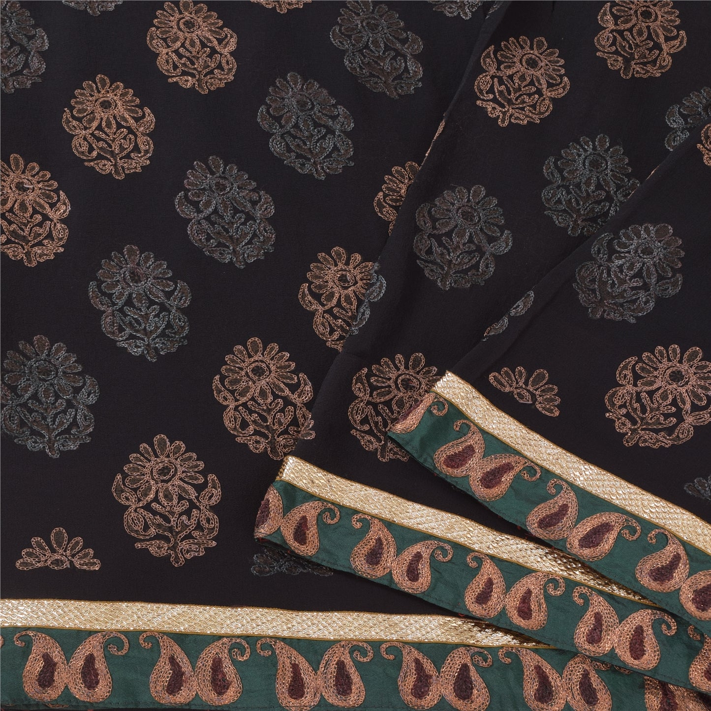 Sanskriti Vintage Sarees Black Embroidered Pure Georgette Silk Sari Craft Sustainable Fabric
