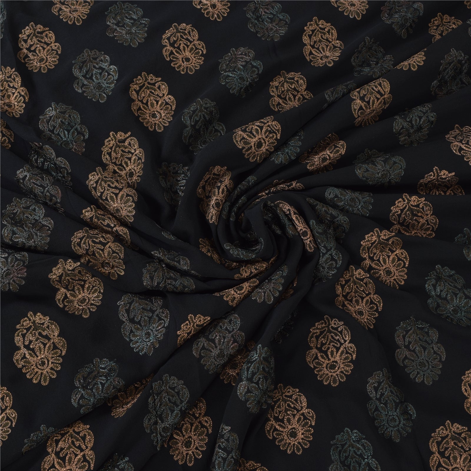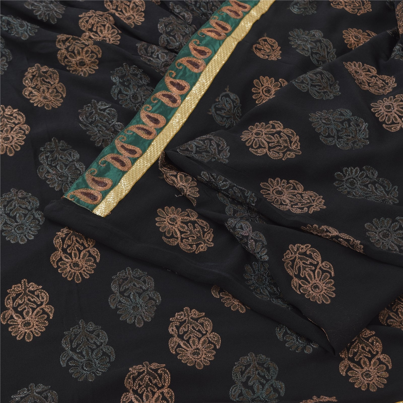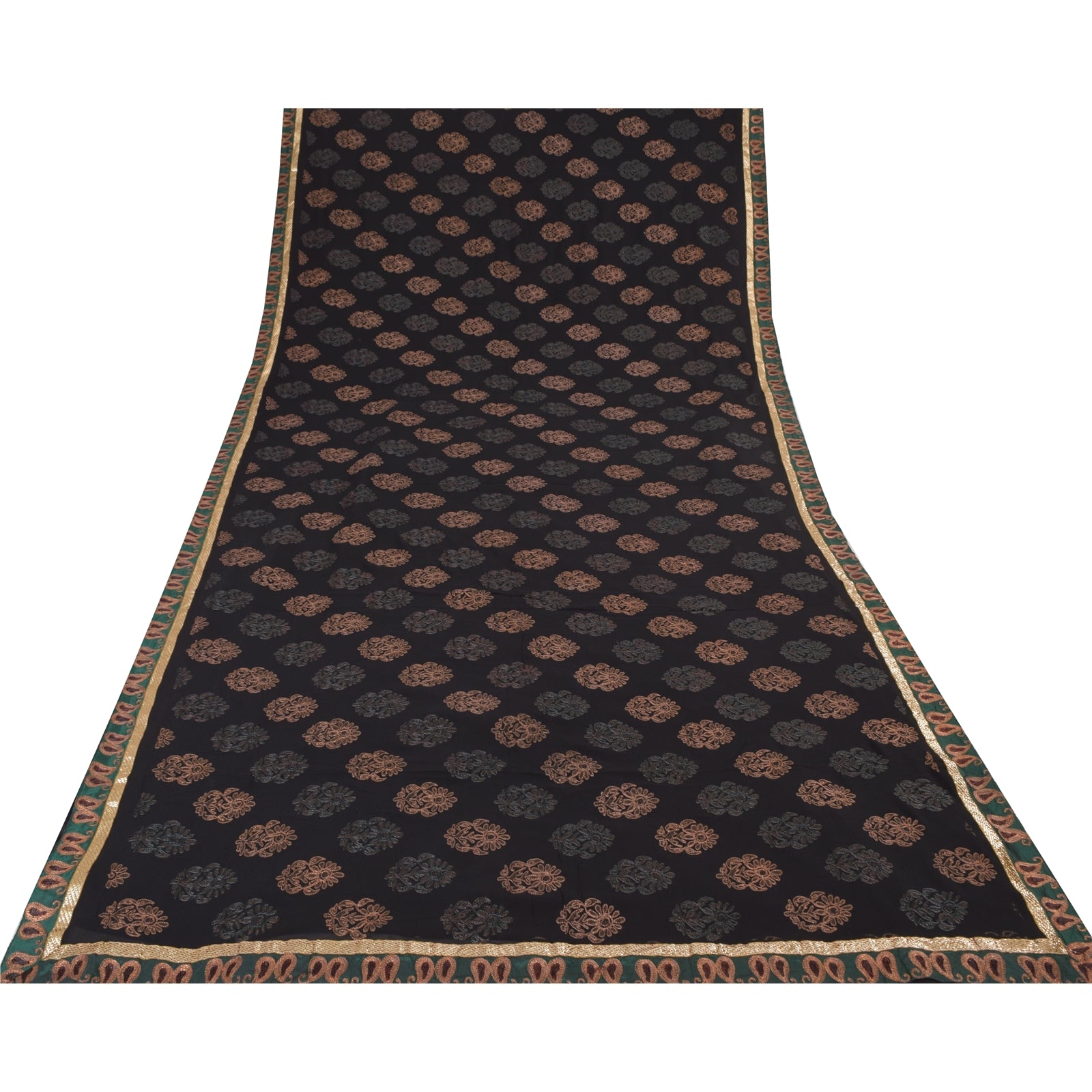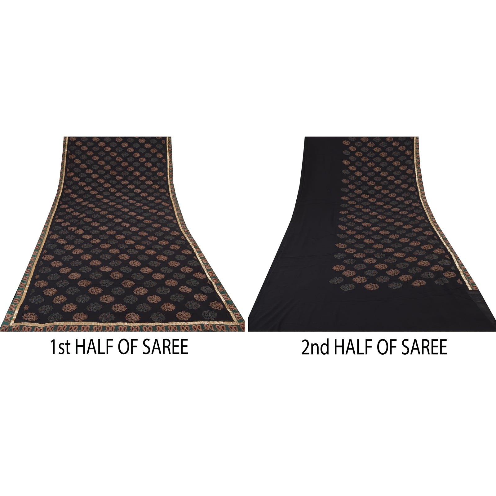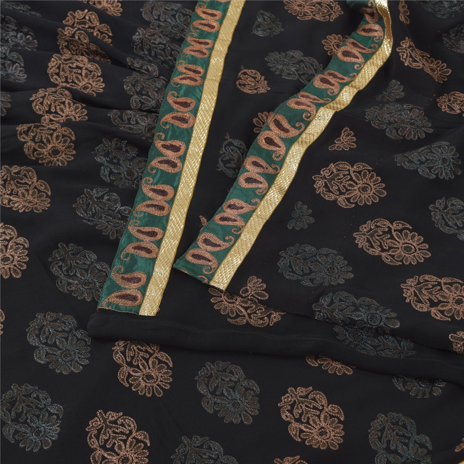 Sanskriti Vintage Sarees Black Embroidered Pure Georgette Silk Sari Craft Sustainable Fabric