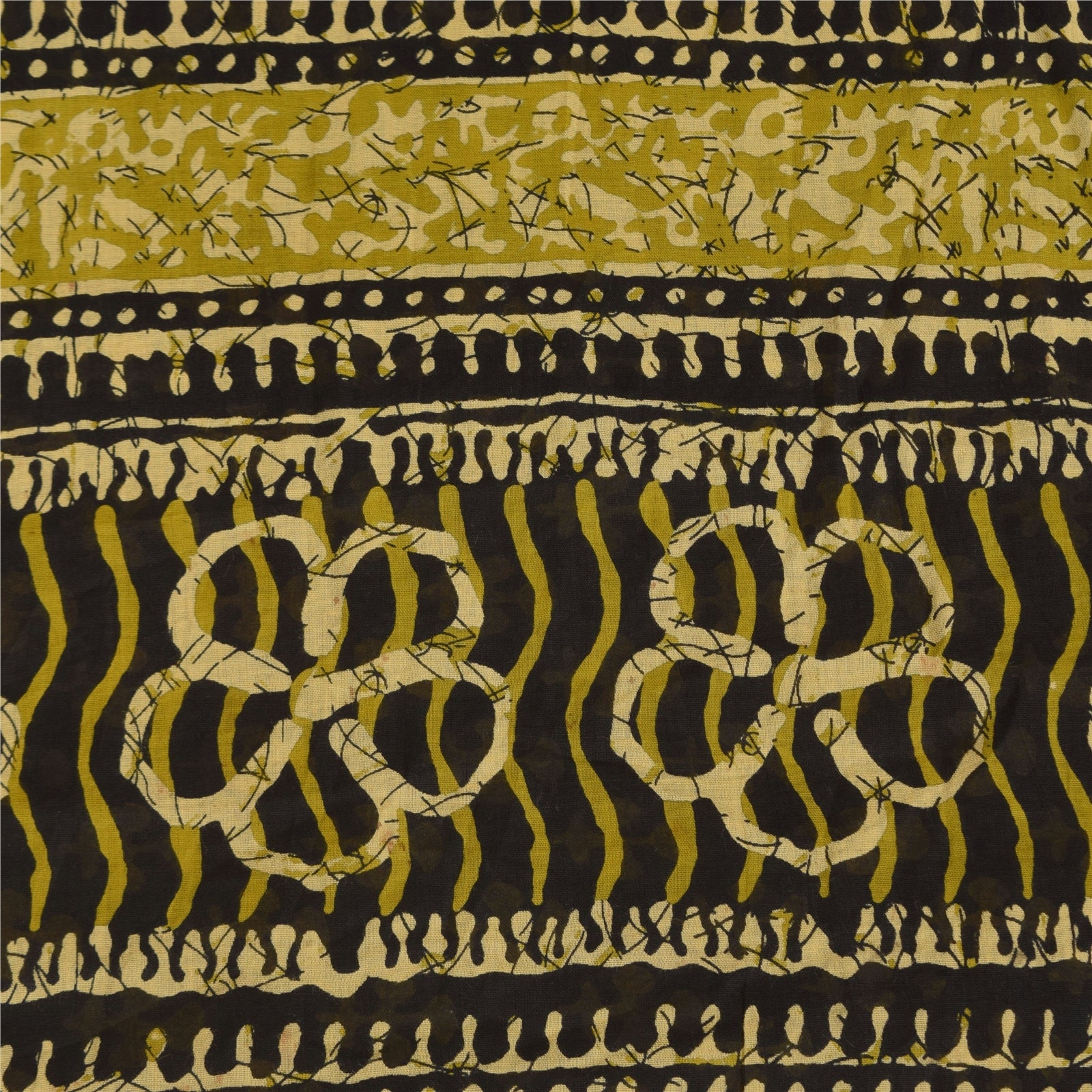Sanskriti Vintage Sarees Black/Green Pure Cotton Batik Printed Sari 5+yd Sustainable Fabric