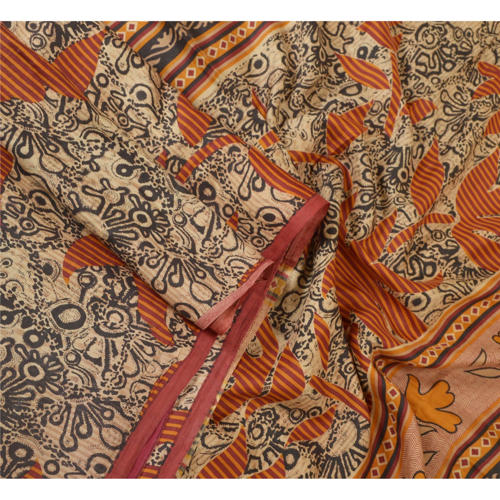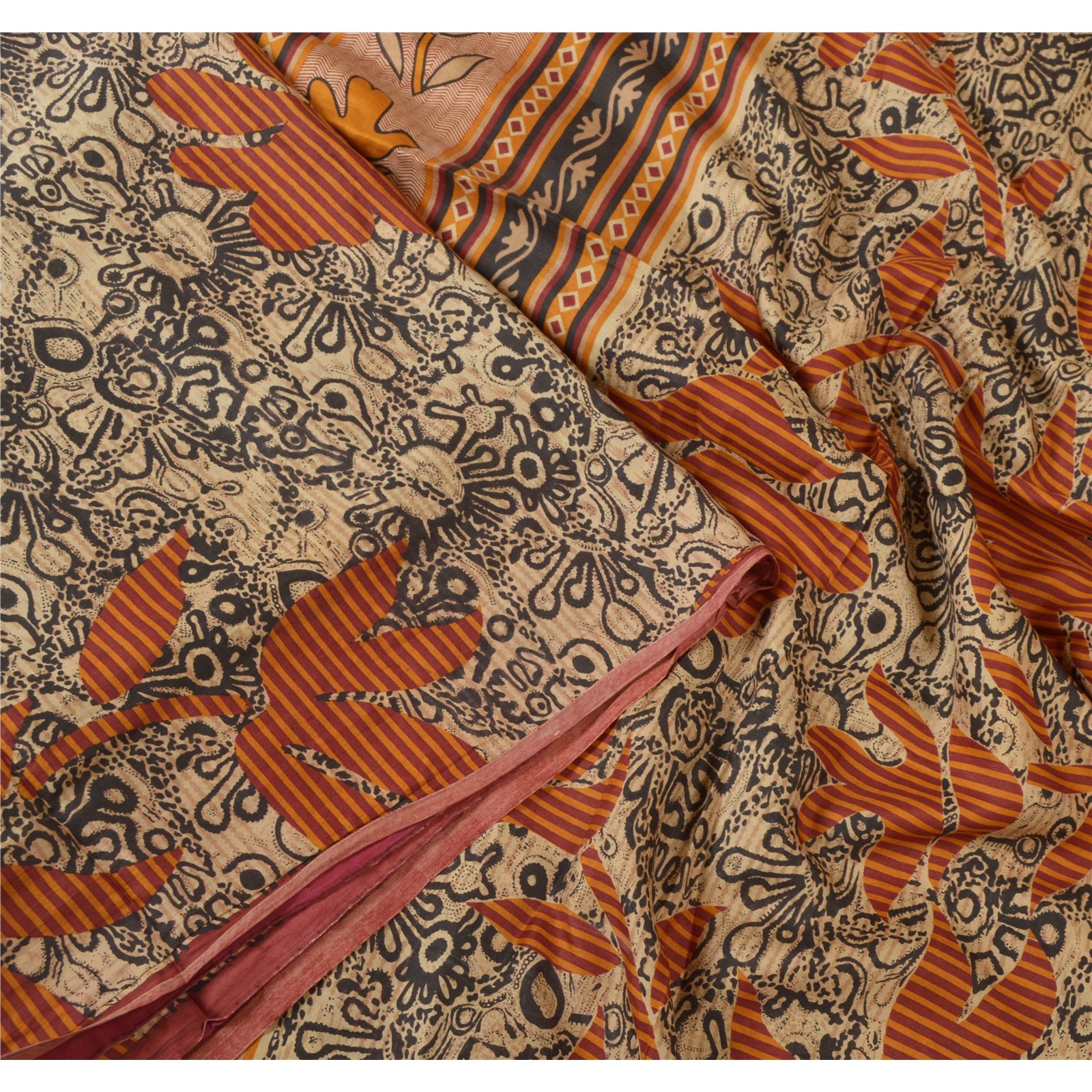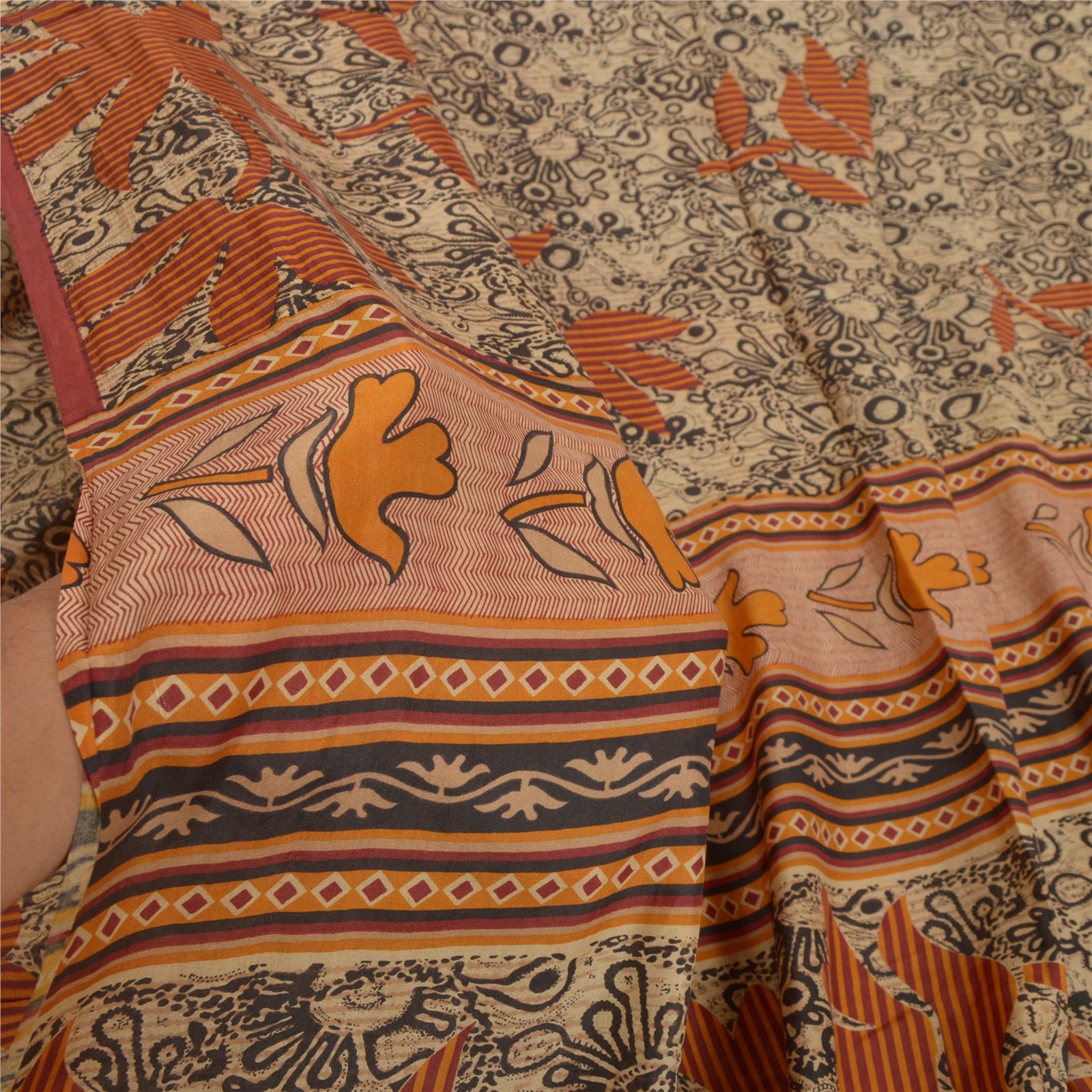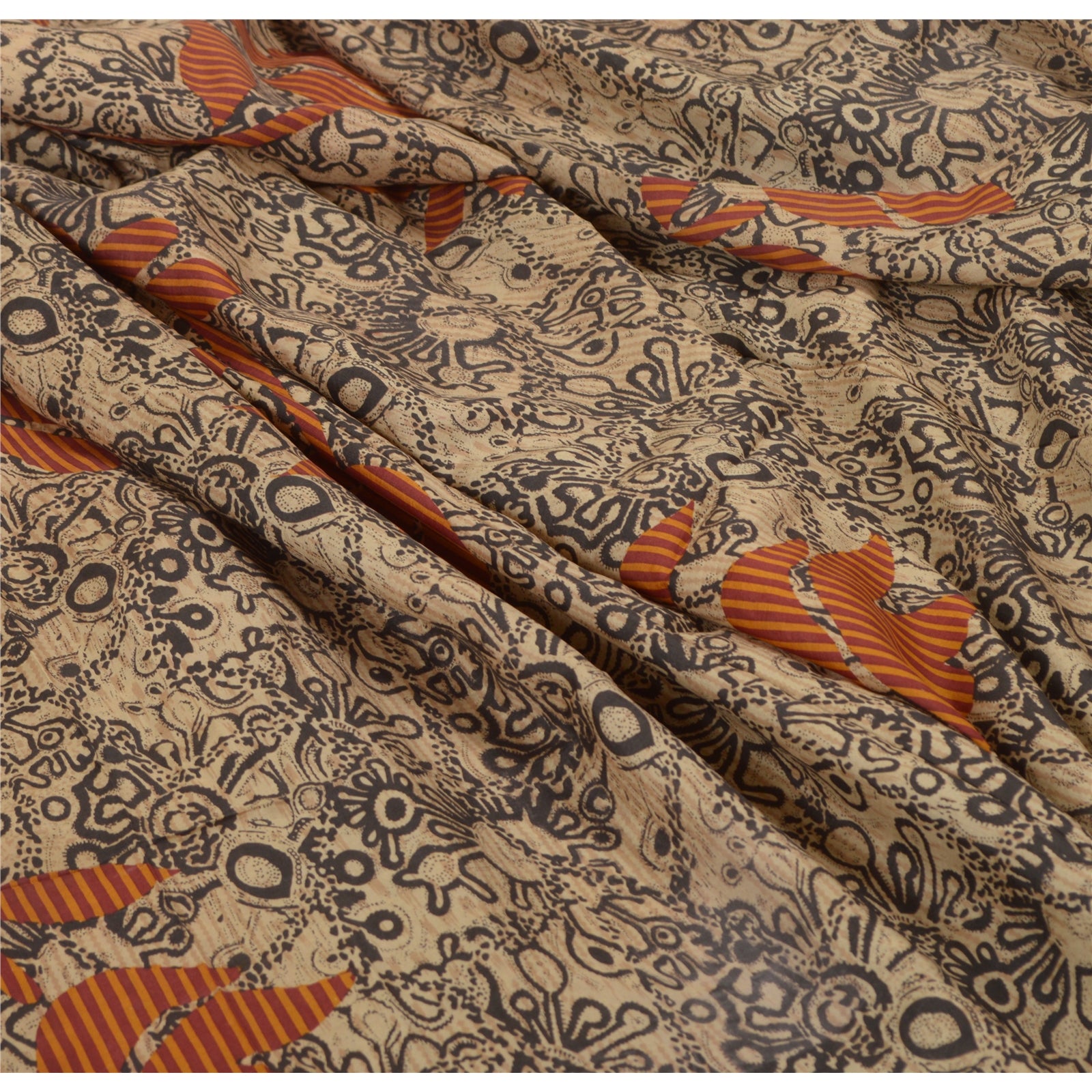 Sanskriti Vintage Sarees Black/Orange 100% Pure Silk Printed Sari Craft Sustainable Fabric