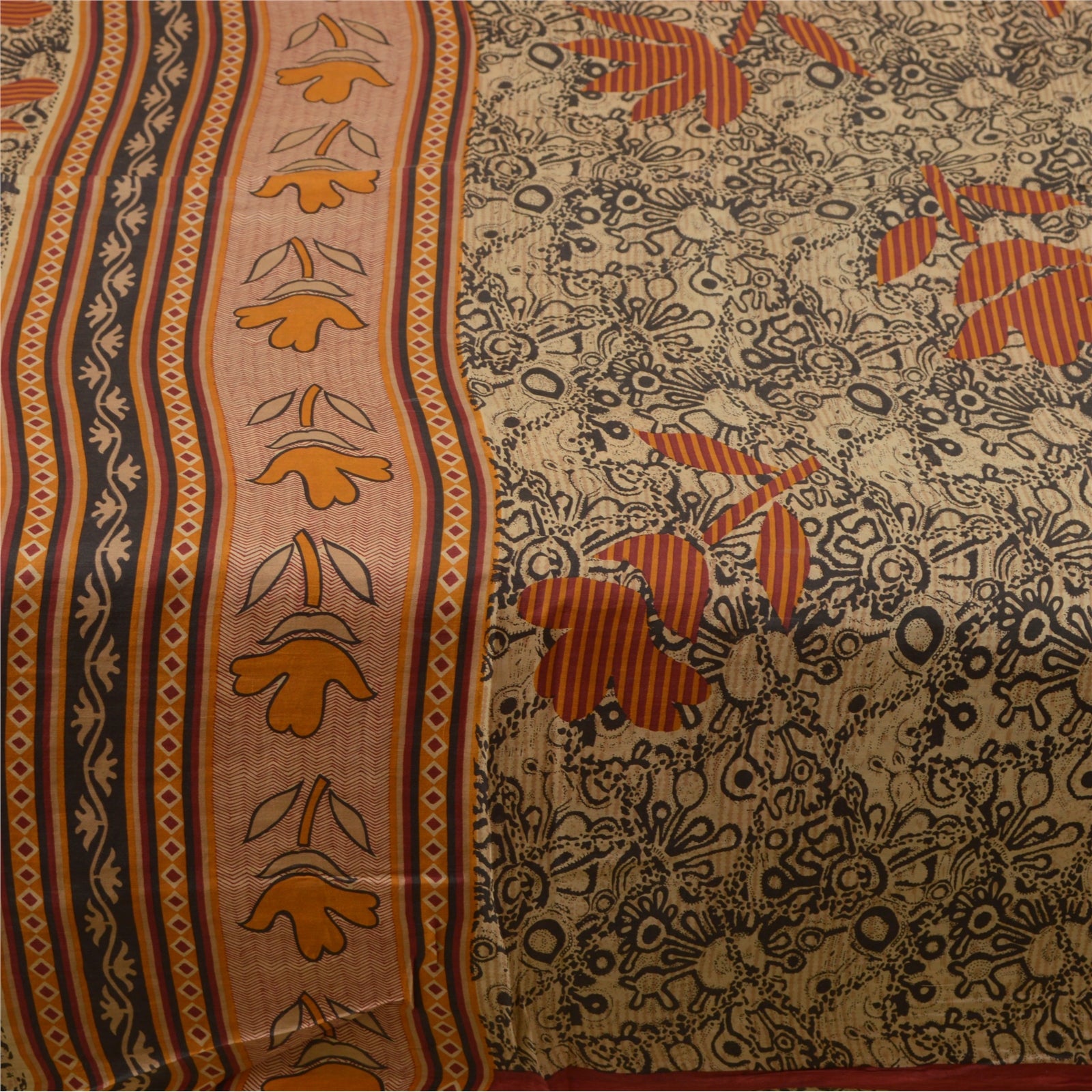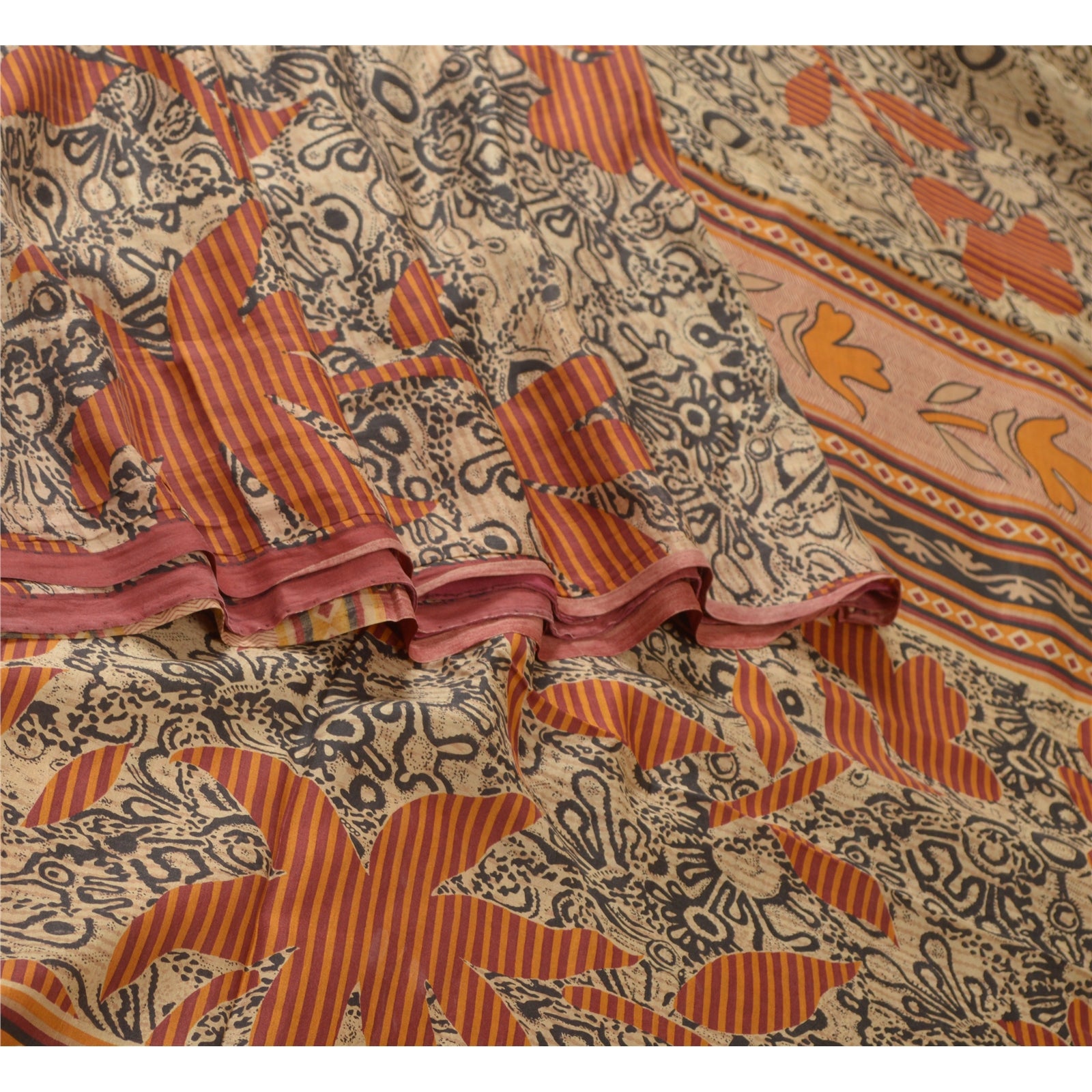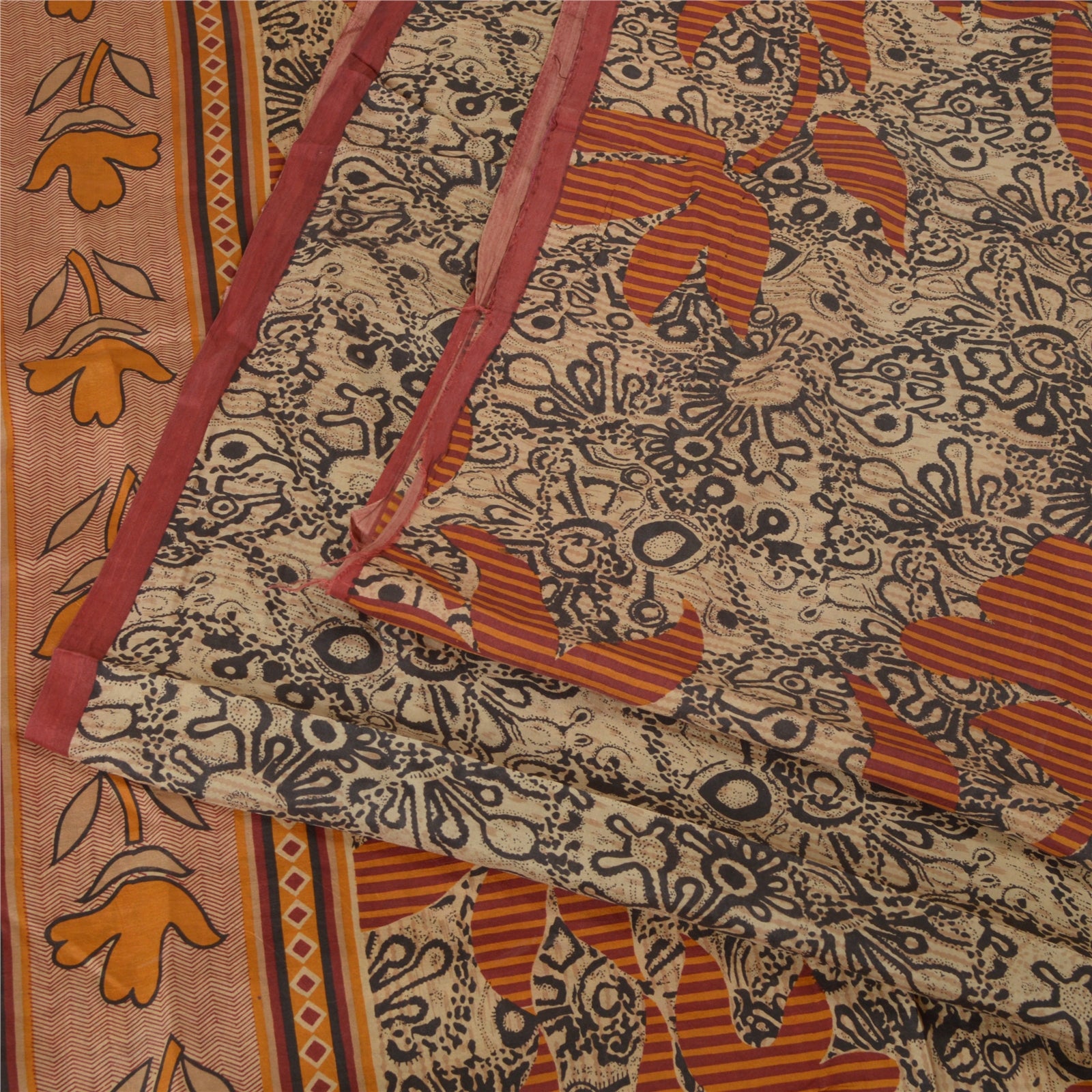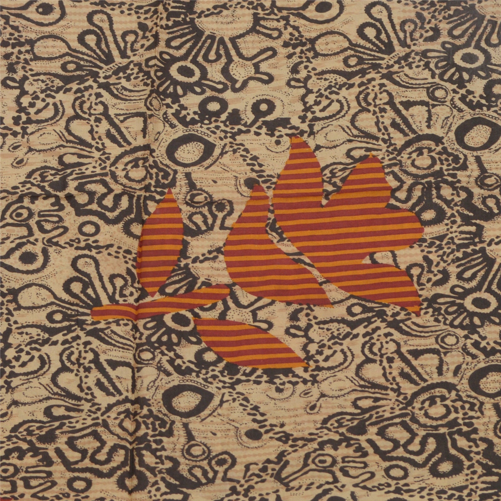 Sanskriti Vintage Sarees Black/Orange 100% Pure Silk Printed Sari Craft Sustainable Fabric