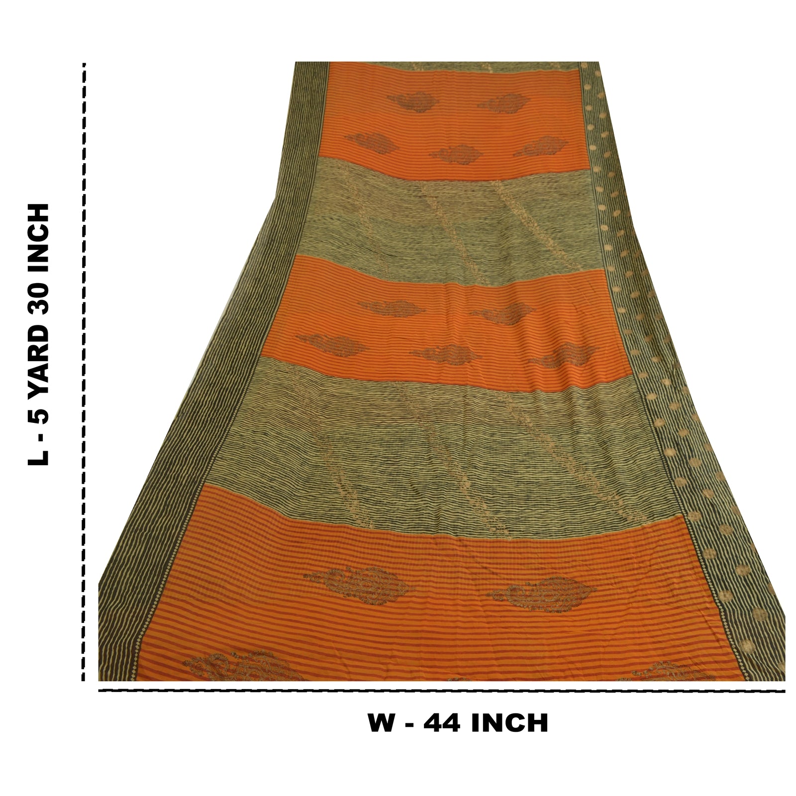 THE ITEM COLOR OR SHADE MAY BE DARKER OR LIGHTER THAN THE PICTURE.' Beautiful black & orange colored pure georgette silk printed saree. Pallu & Border has printed floral design.. Similar design in center part of saree. Saree has mild stain on it. What is special about this saree? Brilliant design on soft Sustainable Fabric is really enhancing the beauty of the saree. This unique vintage saree can be used for various crafting ideas even if you don't want to use it as a sari. Design a dress, use it as a as window dressing, upholstery, sarongs, throw, dress making and table linen much more. Let your creative juices flow and use this decorated Sustainable Fabric in multiple fashion. International buyers please note: Import duties, taxes, and charges are not included in the item price or postage cost. These charges are the buyer's responsibility. Please check with your country's customs office to determine what these additional costs will be prior to bidding or buying.Buyer will pay custom duty/tax. It is calculated and charged differently by every country. As a seller I do not have any control over it. VAT or sales tax is calculated by the platform at the time of checkout. Customs charge is payable at the time of delivery.