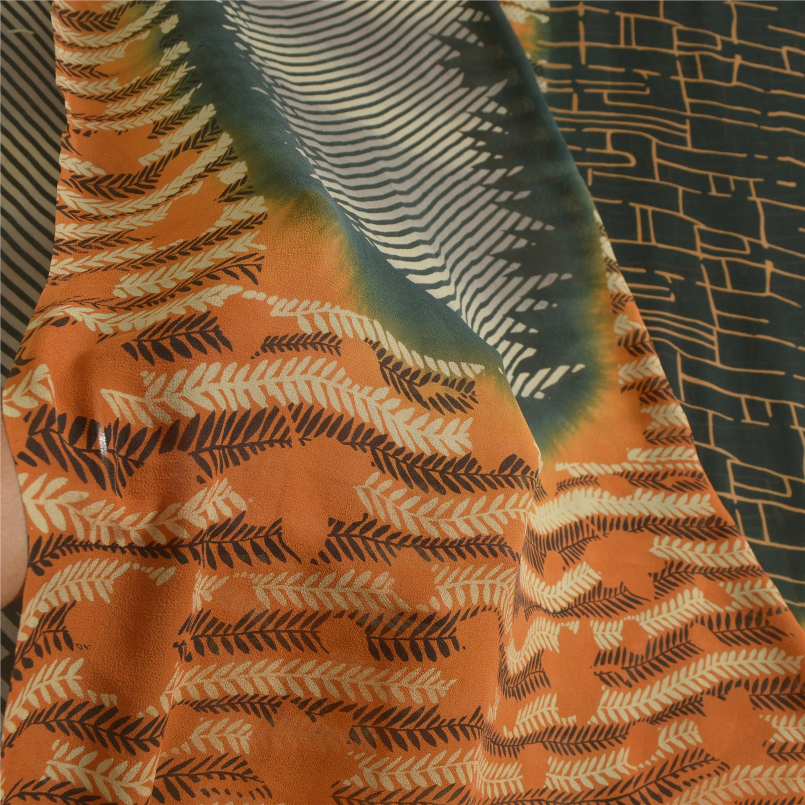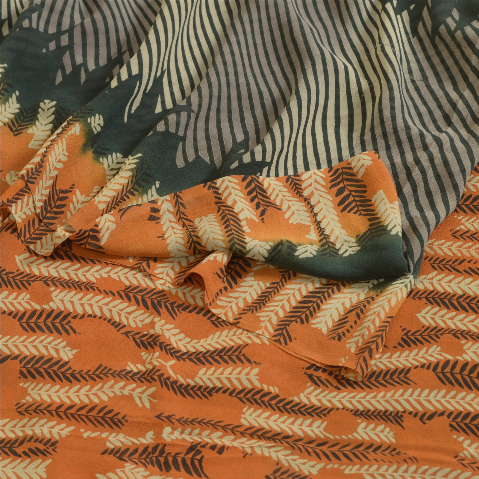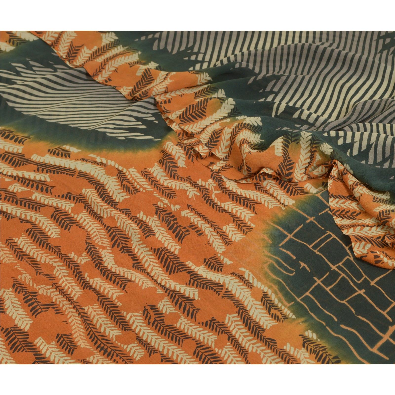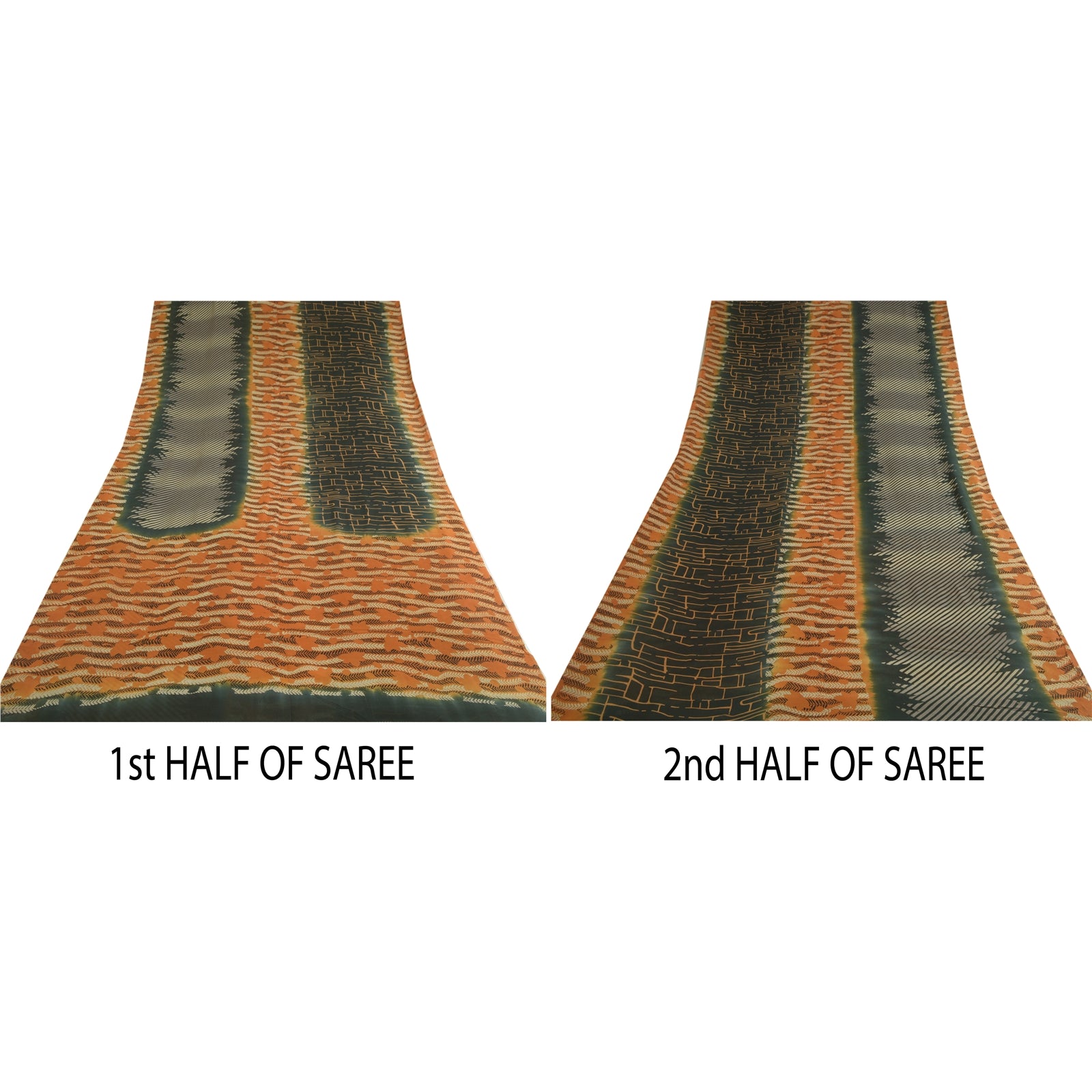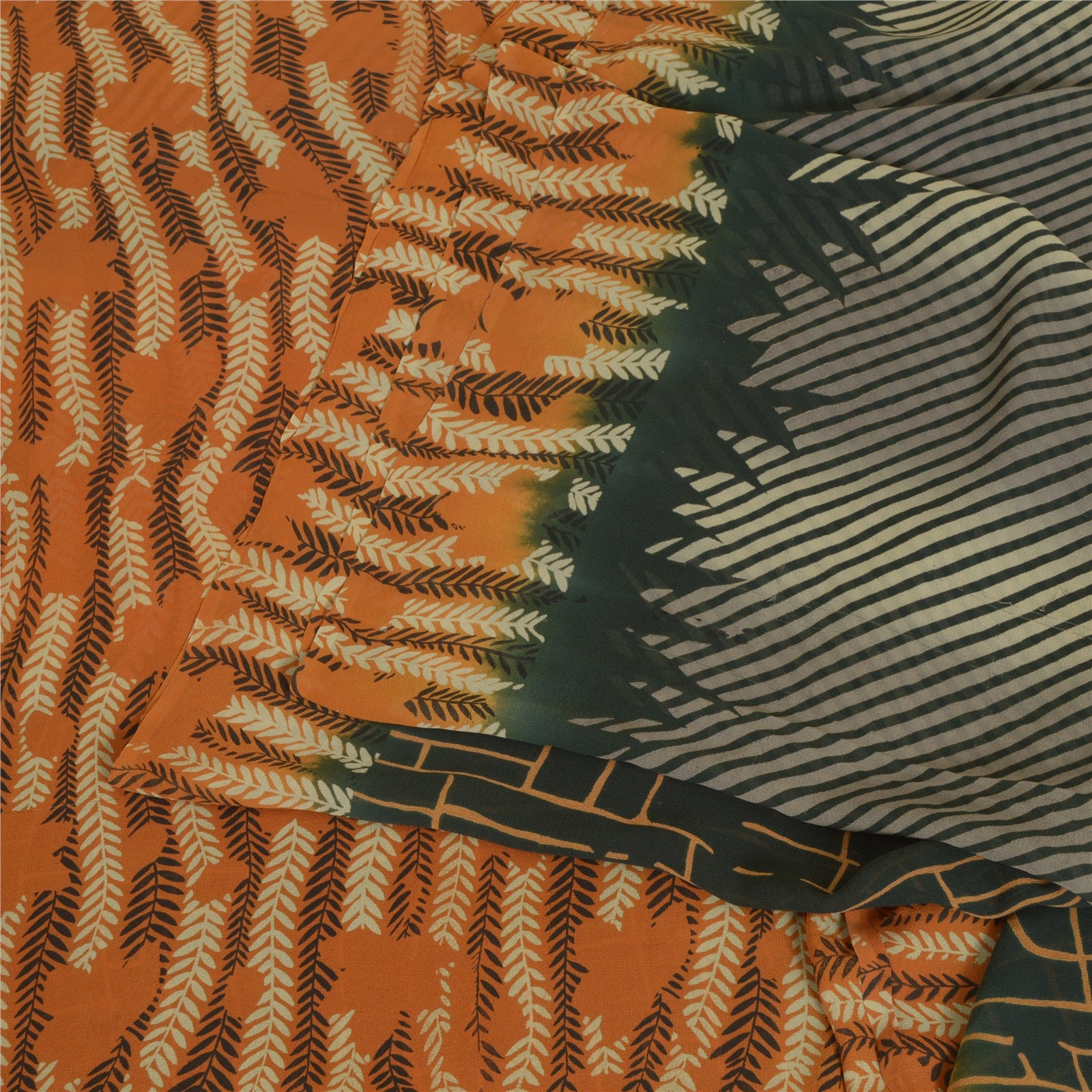 THE ITEM COLOR OR SHADE MAY BE DARKER OR LIGHTER THAN THE PICTURE.' Beautiful black & orange colored pure georgette silk printed saree. Pallu & border has printed abstract design. Similar design in center part of saree. Saree has mild stain on it. What is special about this saree? Brilliant design on soft Sustainable Fabric is really enhancing the beauty of the saree. This unique vintage saree can be used for various crafting ideas even if you don't want to use it as a sari. Design a dress, use it as a as window dressing, upholstery, sarongs, throw, dress making and table linen much more. Let your creative juices flow and use this decorated Sustainable Fabric in multiple fashion. International buyers please note: Import duties, taxes, and charges are not included in the item price or postage cost. These charges are the buyer's responsibility. Please check with your country's customs office to determine what these additional costs will be prior to bidding or buying.Buyer will pay custom duty/tax. It is calculated and charged differently by every country. As a seller I do not have any control over it. VAT or sales tax is calculated by the platform at the time of checkout. Customs charge is payable at the time of delivery.
