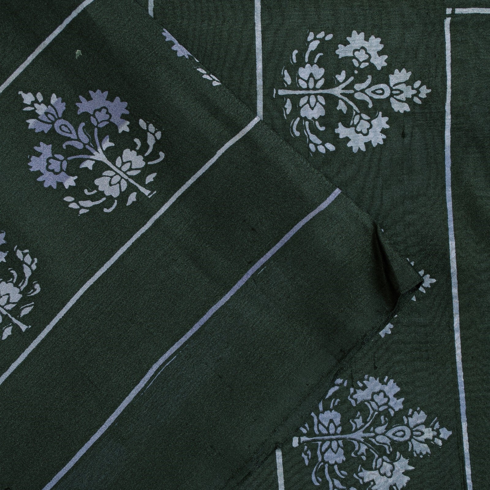 Sanskriti Vintage Sarees Black Pure Silk Floral Hand Block Printed 6+yd Sari