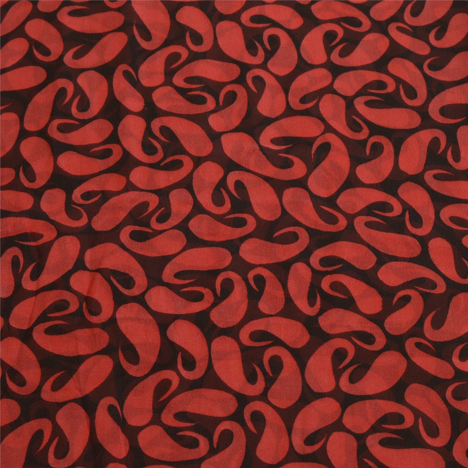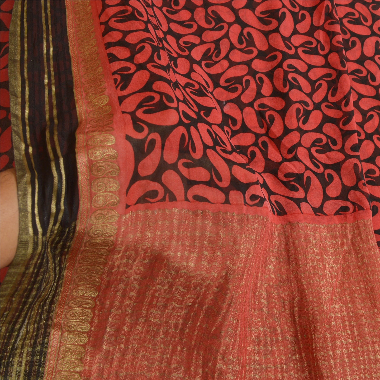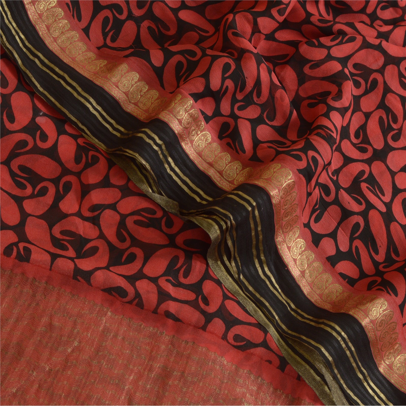 Sanskriti Vintage Sarees Black/Red Pure Georgette Printed Zari Work Sari Sustainable Fabric