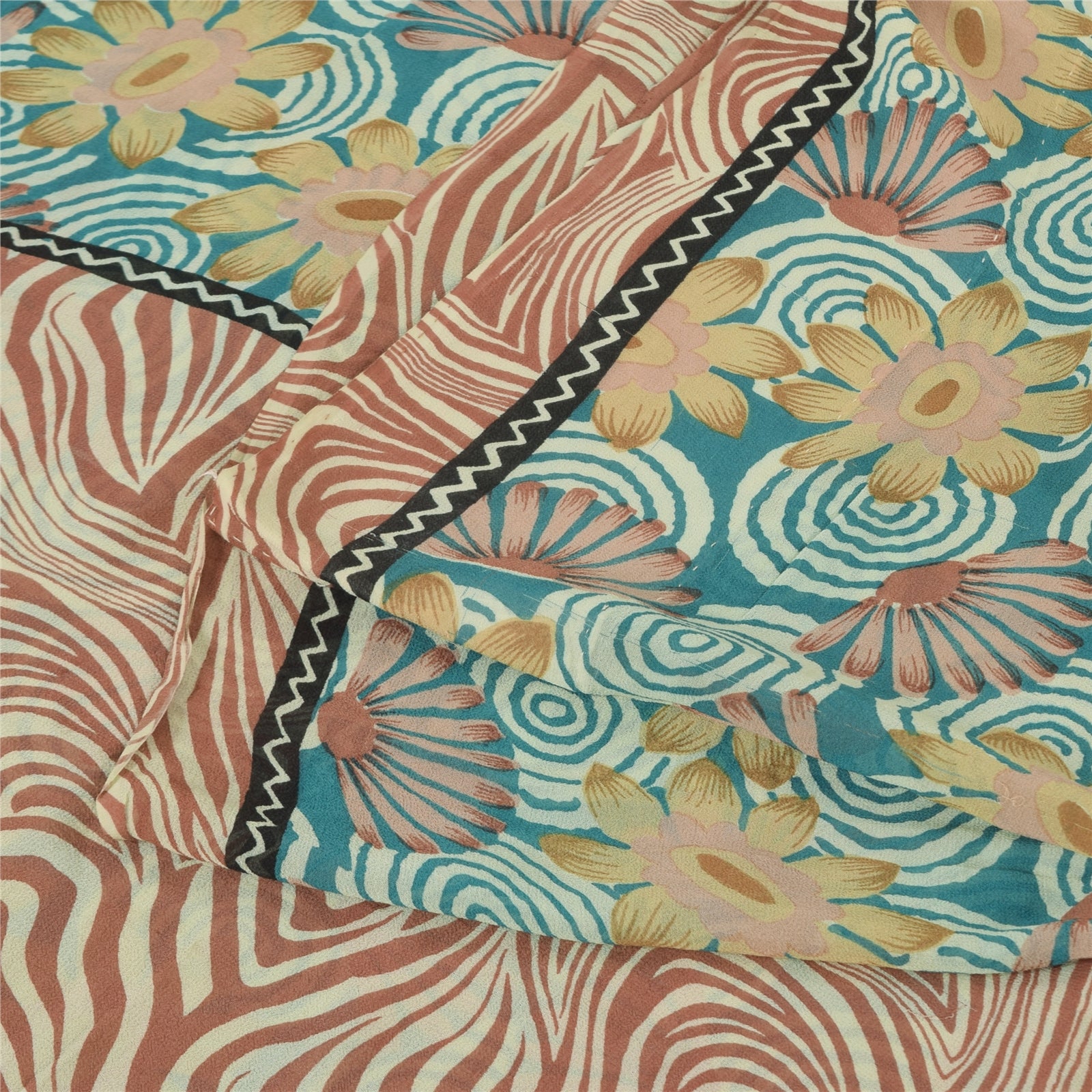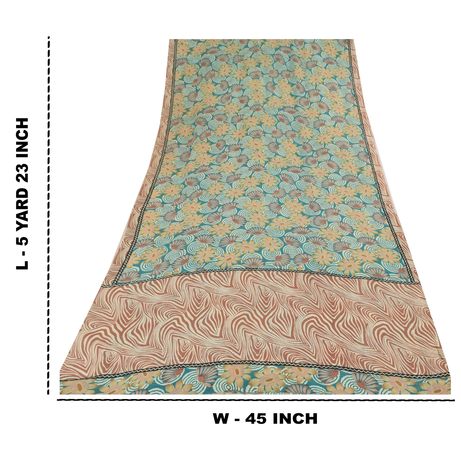 Sanskriti Vintage Sarees Blue 100% Pure Georgette Silk Printed Sari Craft Sustainable Fabric