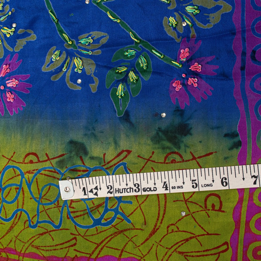 Sanskriti Vintage Sarees Blue-Green Hand Bead Sequins Pure Crepe Print 6YD Sari