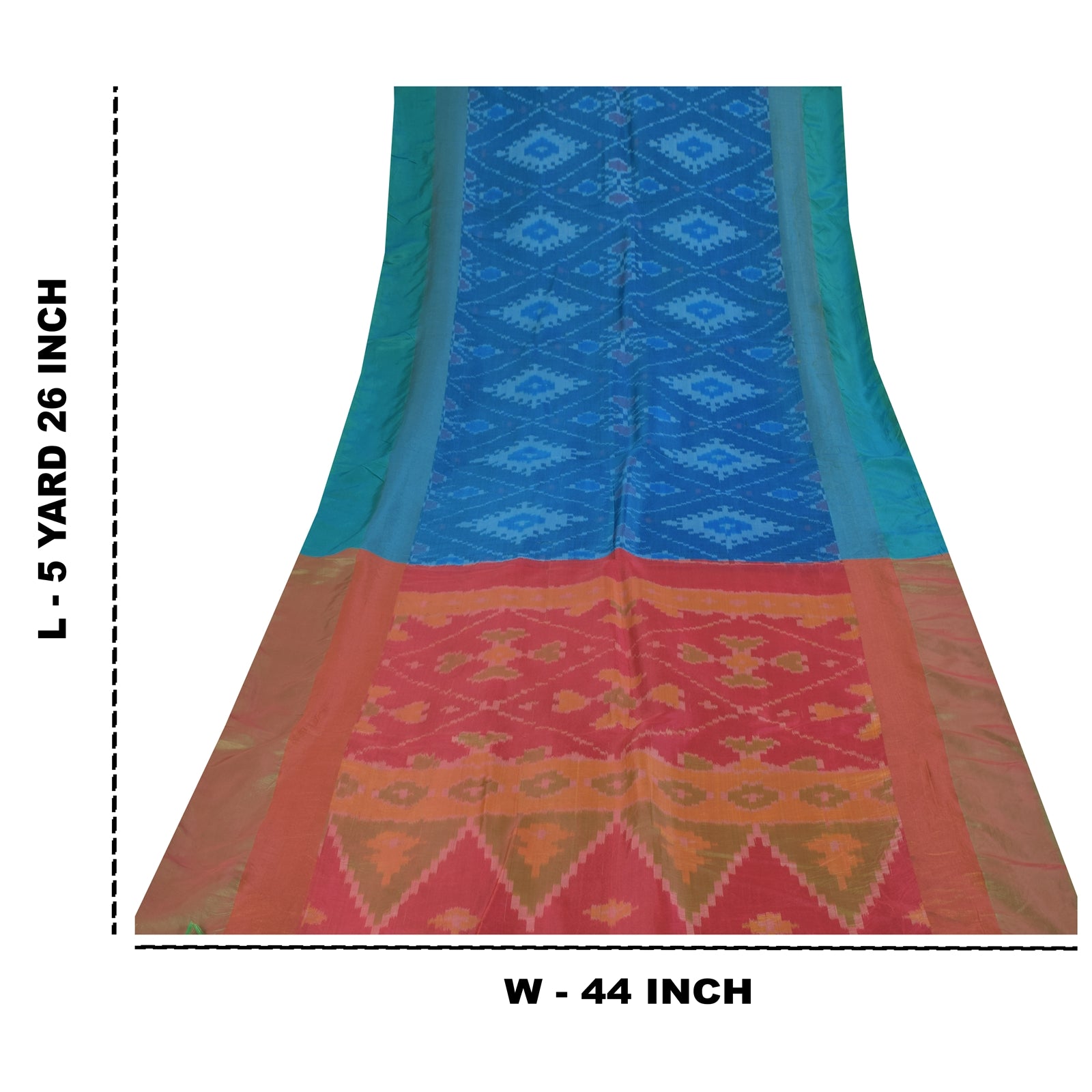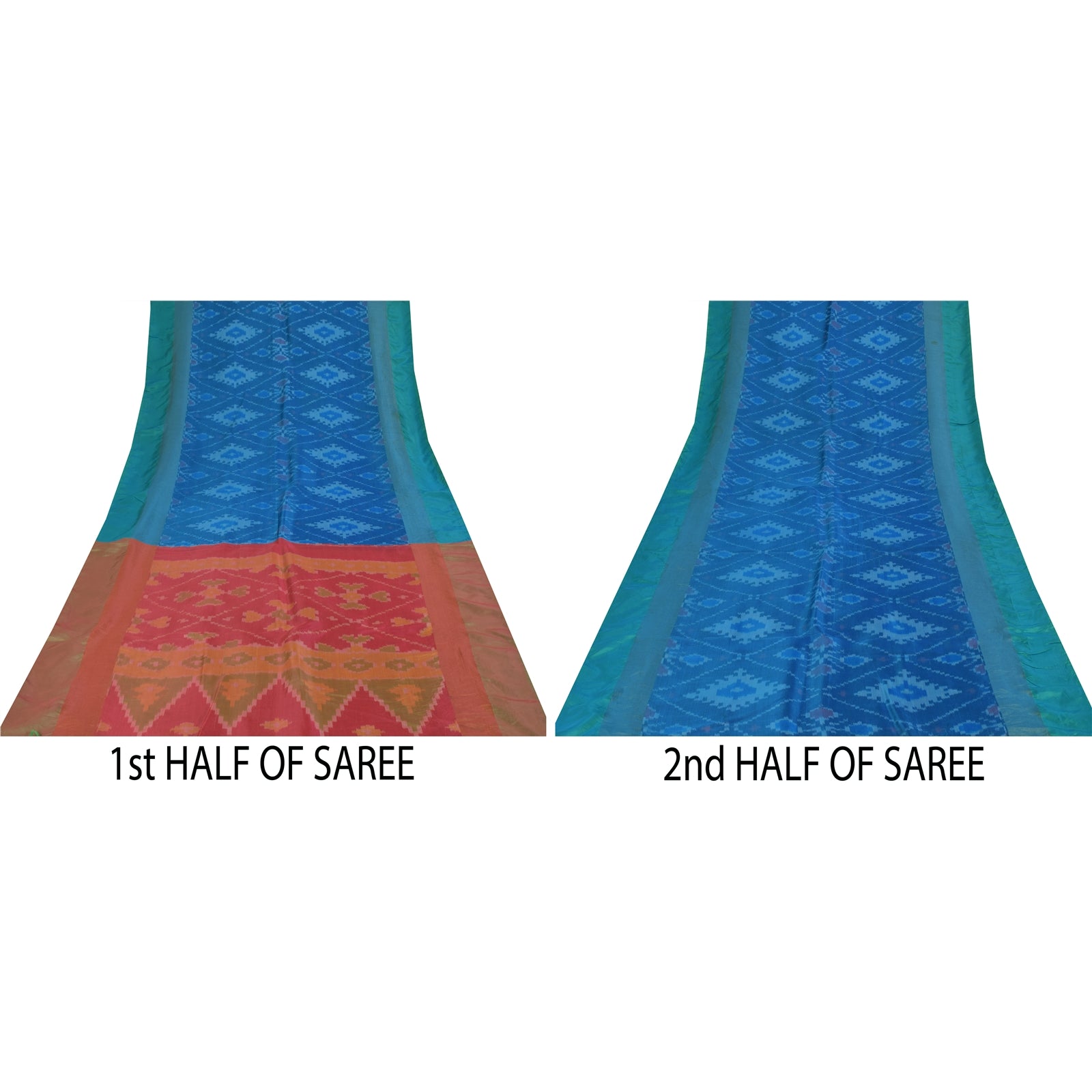 THE ITEM COLOR OR SHADE MAY BE DARKER OR LIGHTER THAN THE PICTURE. Attractive blue colored pure silk ikat hand woven patan patola sari. Pallu & Border has geometric design with ikat woven work & woven work. Similar work in center part of saree.. This unique vintage saree can be used for various crafting ideas even if you don't want to use it as a sari. Design a dress, use it as a as window dressing, upholstery, sarongs, throw, dress making and table linen much more. Let your creative juices flow and use this decorated Sustainable Fabric in multiple fashion. Shipping Note: 'International buyers please note: Import duties, taxes, and charges are not included in the item price or postage cost. These charges are the buyer's responsibility. Please check with your country's customs office to determine what these additional costs will be prior to bidding or buying. Buyer will pay custom duty/tax. It is calculated and charged differently by every country. As a seller I do not have any control over it. VAT or sales tax is calculated by the platform at the time of checkout. Customs charge is payable at the time of delivery.' PT-6284