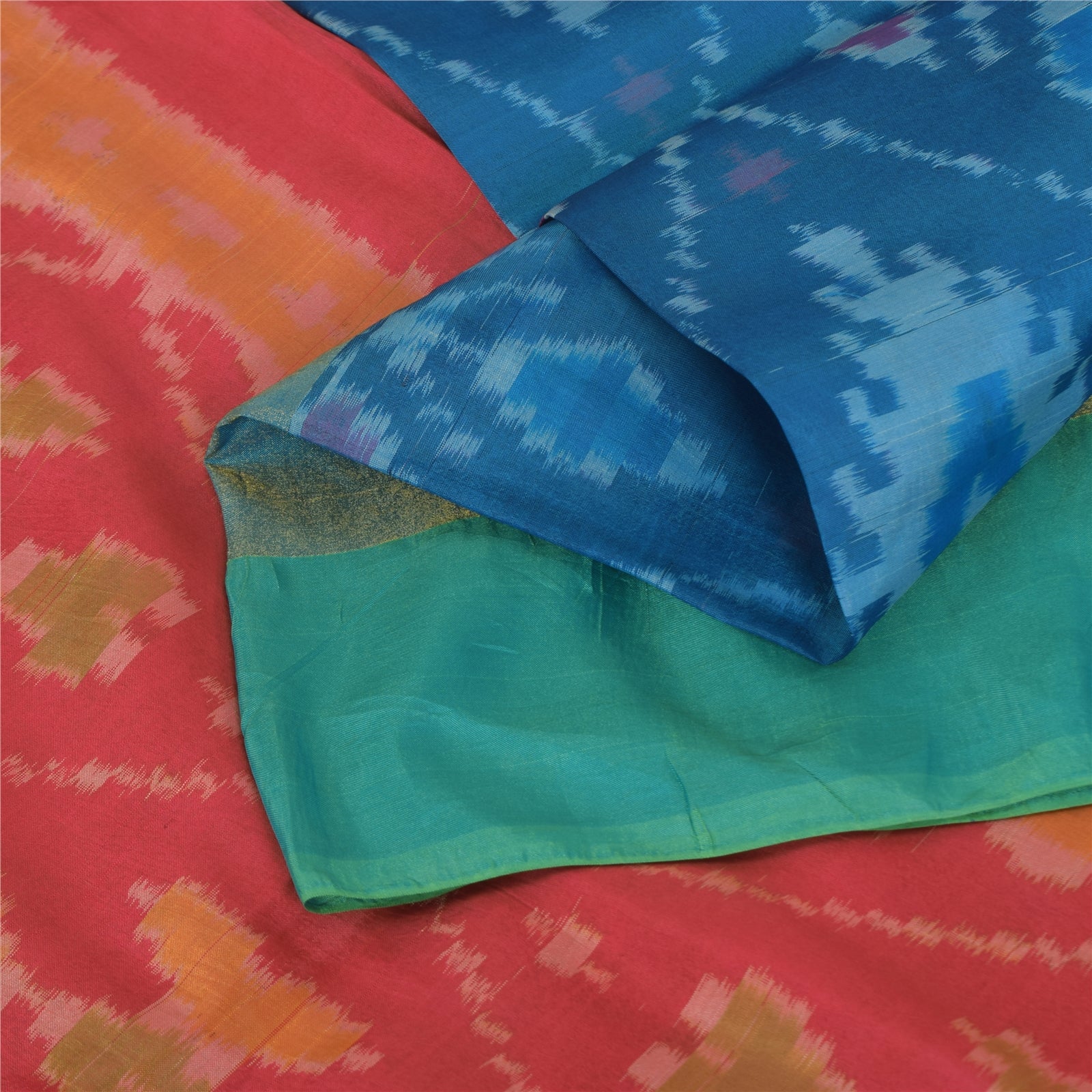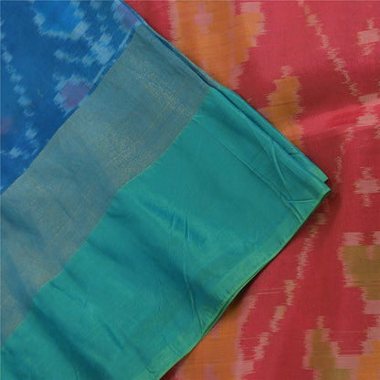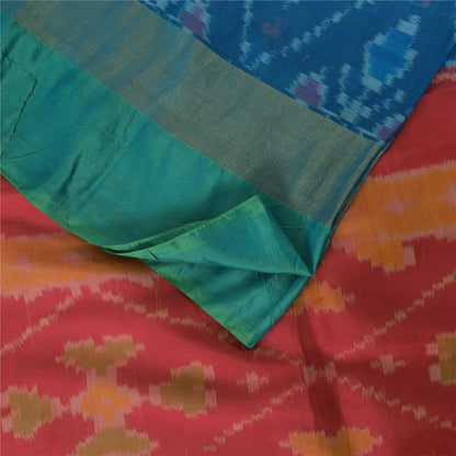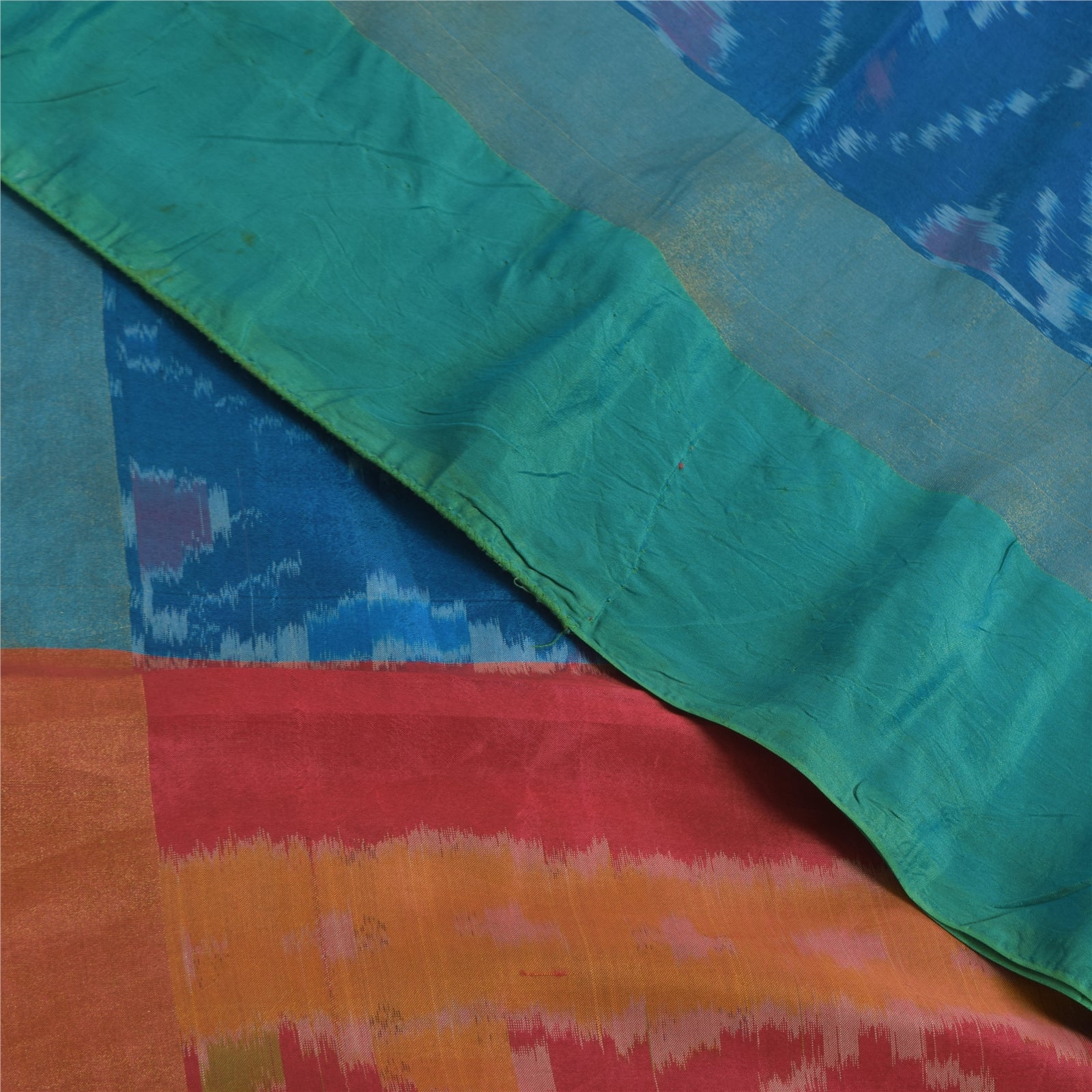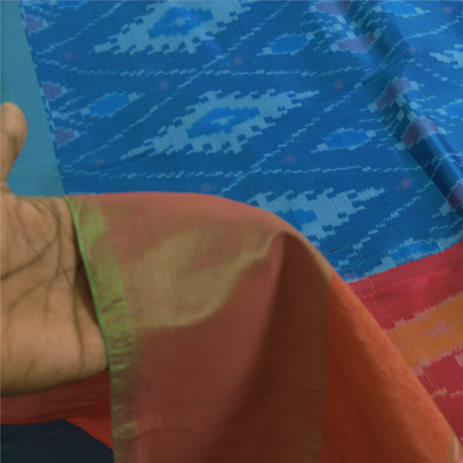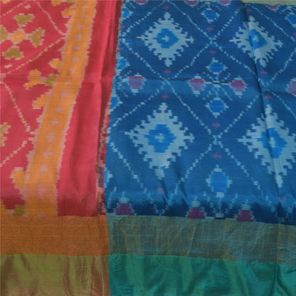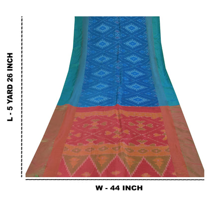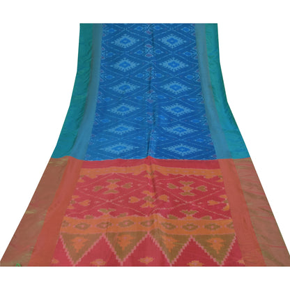 Sanskriti Vintage Sarees Blue Ikat Handwoven Patan Patola Pure Silk Sari Sustainable Fabric