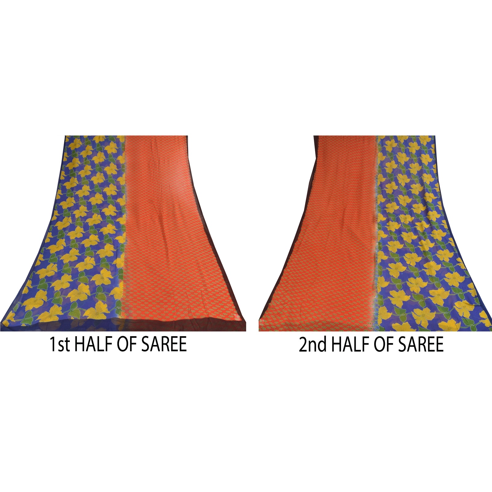 THE ITEM COLOR OR SHADE MAY BE DARKER OR LIGHTER THAN THE PICTURE.' Beautiful blue & orange colored pure georgette silk printed saree. Allover sari has printed floral design. . What is special about this saree? Brilliant design on soft Sustainable Fabric is really enhancing the beauty of the saree. This unique vintage saree can be used for various crafting ideas even if you don't want to use it as a sari. Design a dress, use it as a as window dressing, upholstery, sarongs, throw, dress making and table linen much more. Let your creative juices flow and use this decorated Sustainable Fabric in multiple fashion. International buyers please note: Import duties, taxes, and charges are not included in the item price or postage cost. These charges are the buyer's responsibility. Please check with your country's customs office to determine what these additional costs will be prior to bidding or buying.Buyer will pay custom duty/tax. It is calculated and charged differently by every country. As a seller I do not have any control over it. VAT or sales tax is calculated by the platform at the time of checkout. Customs charge is payable at the time of delivery. prg-14394