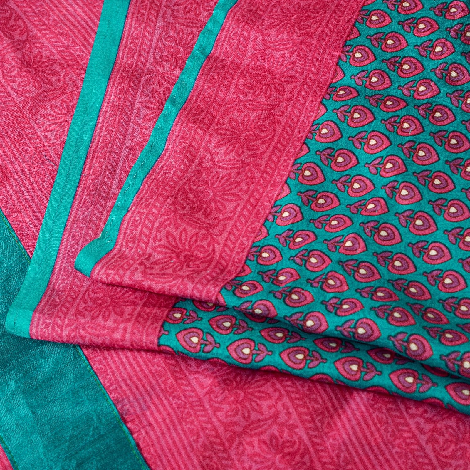 Sanskriti Vintage Sarees Blue & Pink Pure Silk Floral Print 5+yd Sari For Craft
