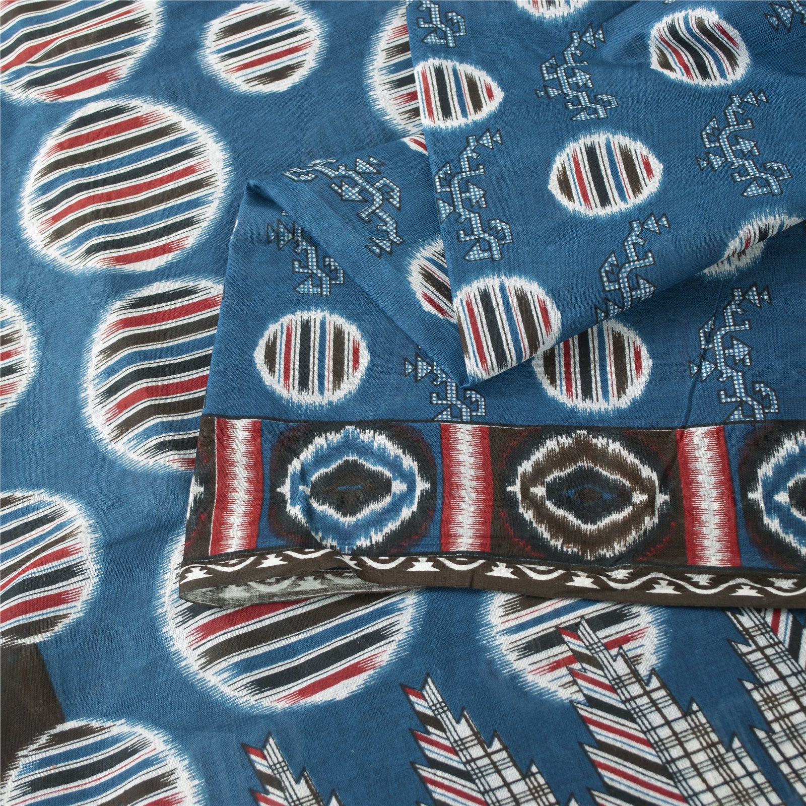 Sanskriti Vintage Sarees Blue Pure Cotton Geometric Print 5+yd Quilting Crafts