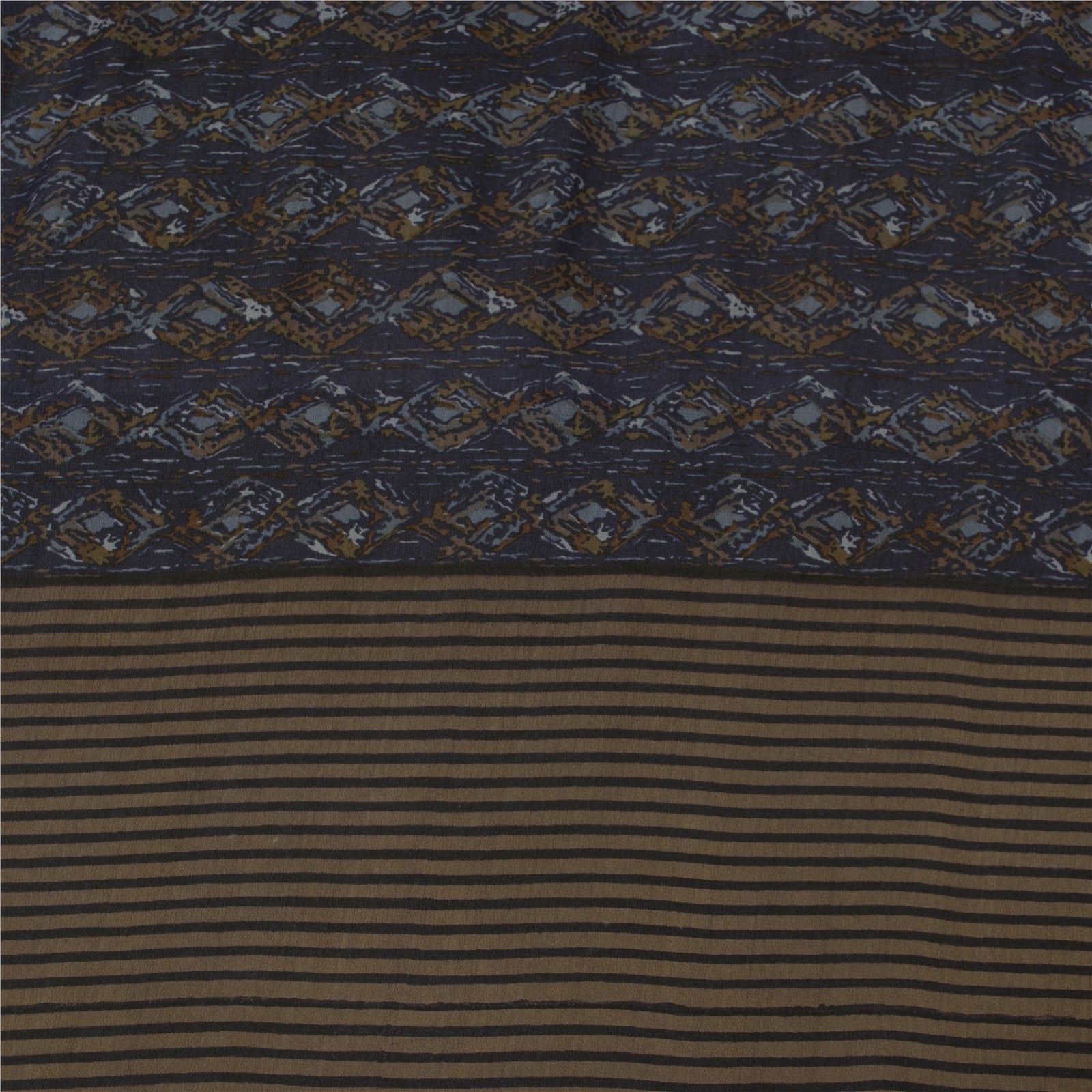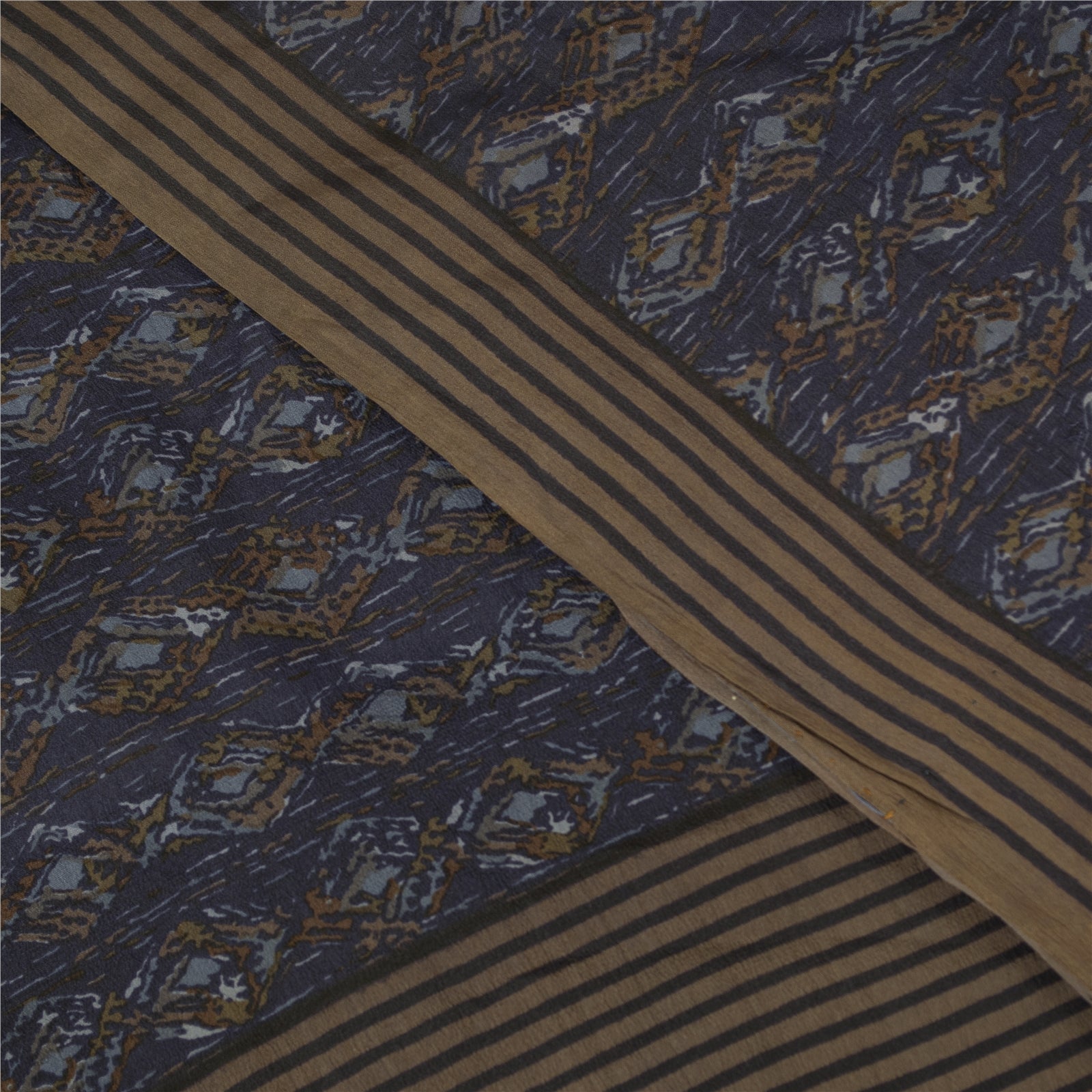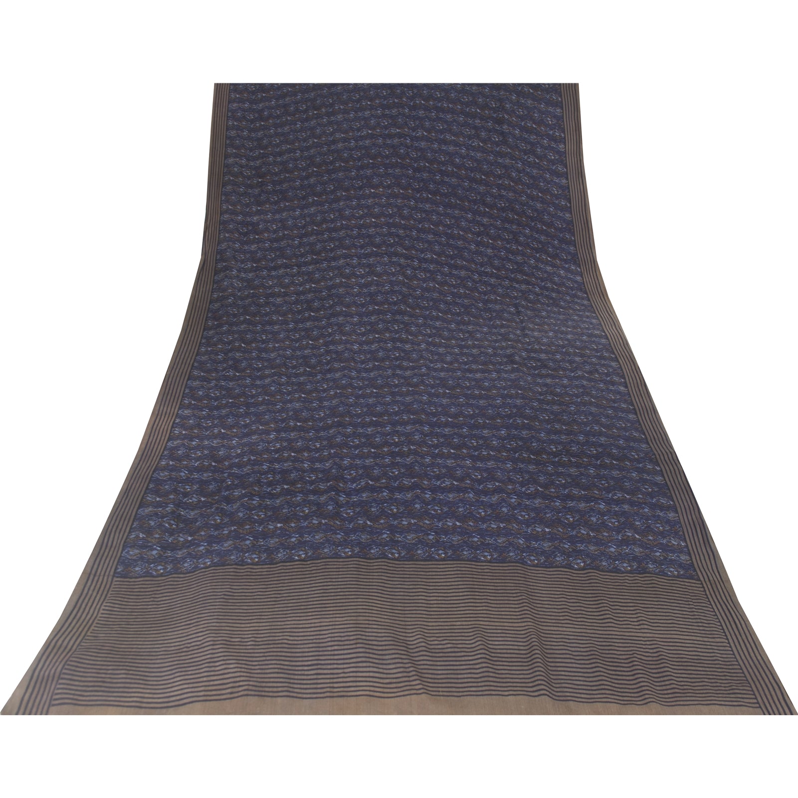 Sanskriti Vintage Sarees Blue Pure Crepe Geometric Print Sari 5+yd Craft Fabric