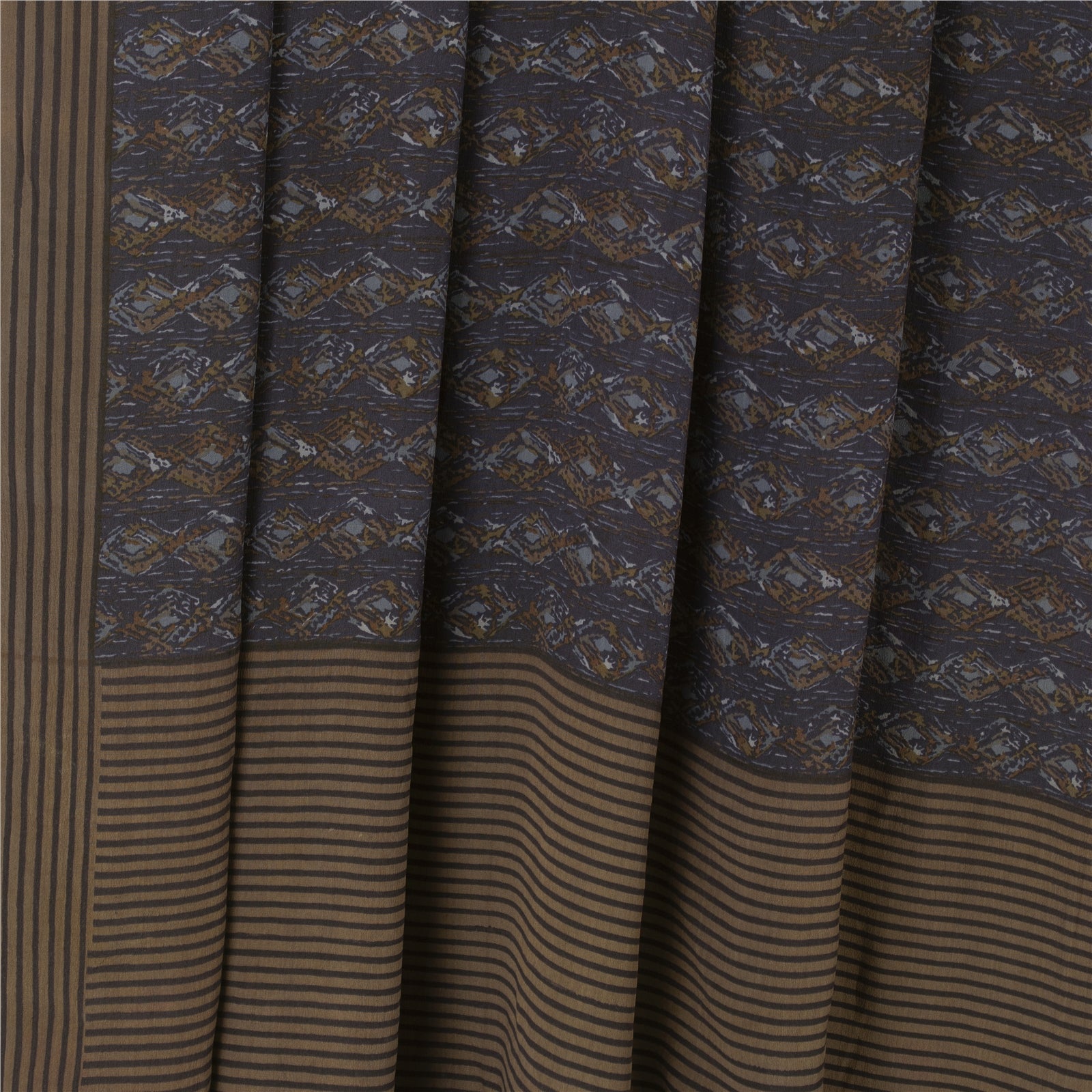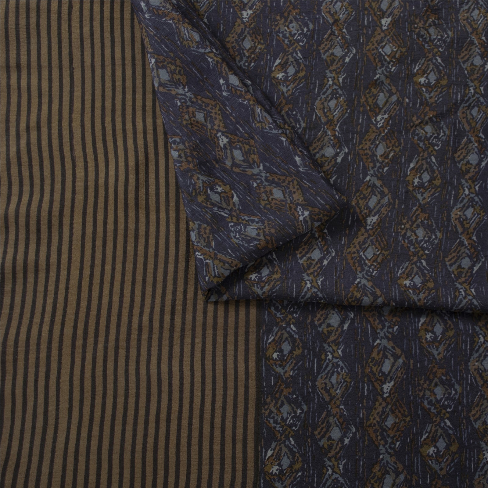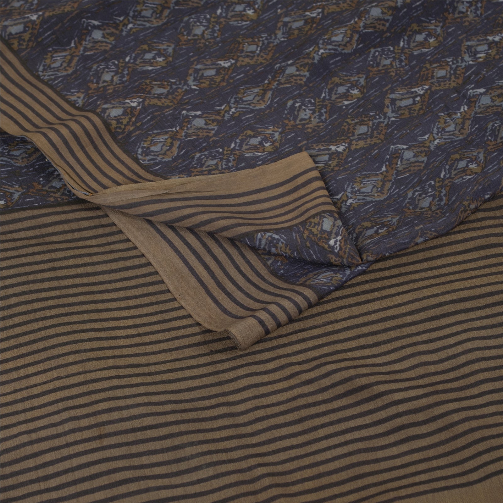 Sanskriti Vintage Sarees Blue Pure Crepe Geometric Print Sari 5+yd Craft Fabric