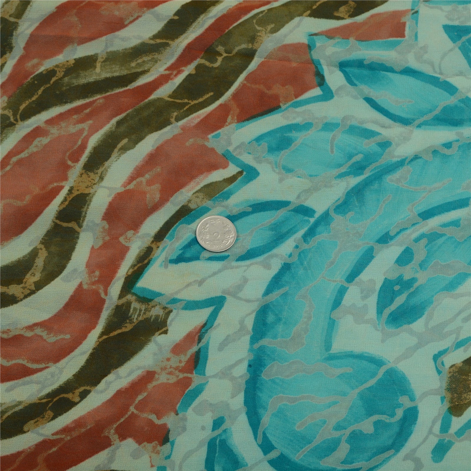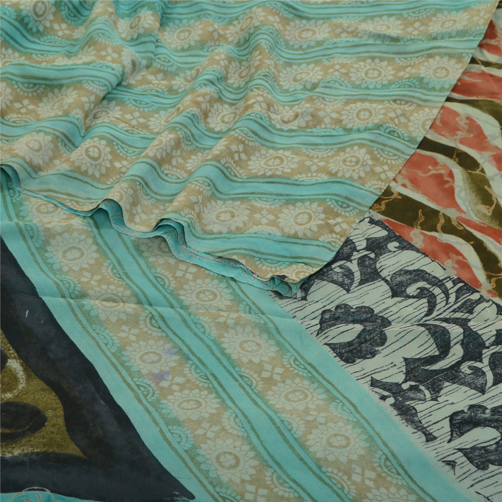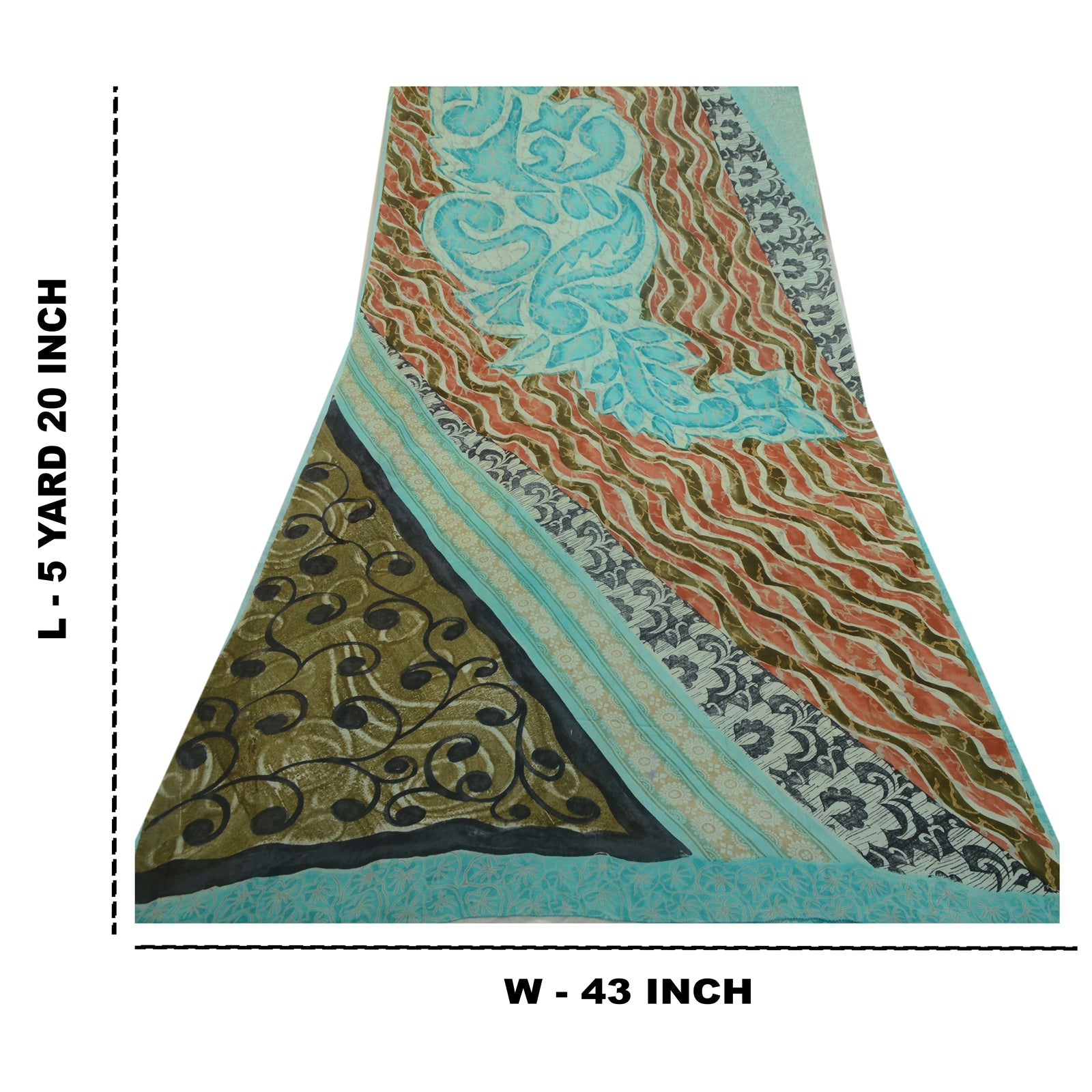 Sanskriti Vintage Sarees Blue Pure Georgette Silk Printed Sari 5yd Craft Sustainable Fabric