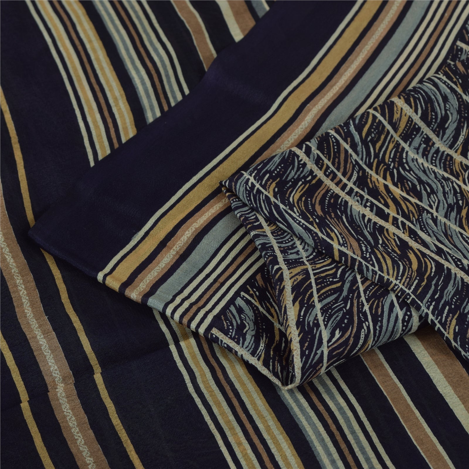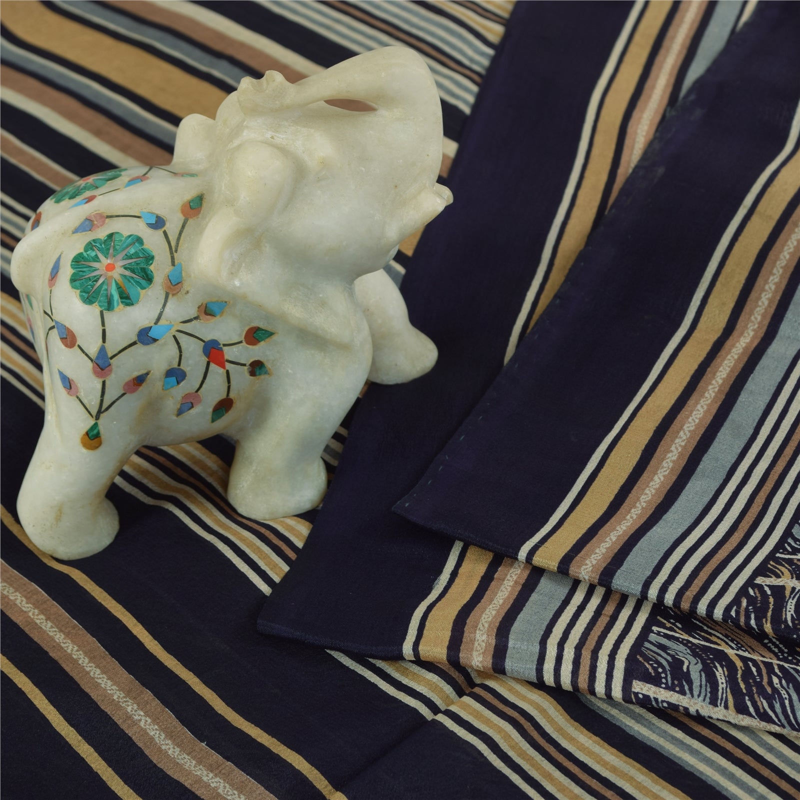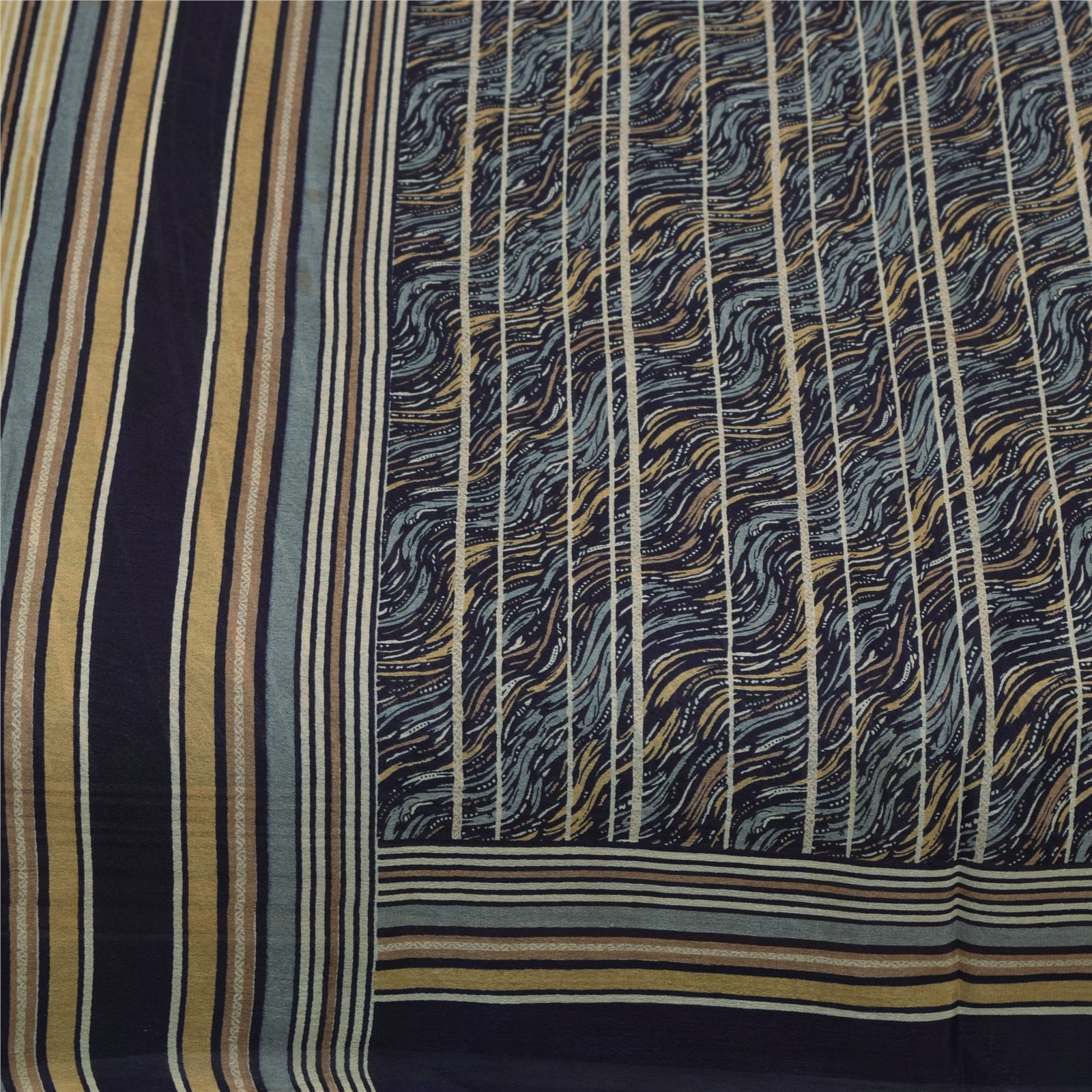 Sanskriti Vintage Sarees Blue Pure Silk Abstract Printed Sari 5+yd Craft Fabric