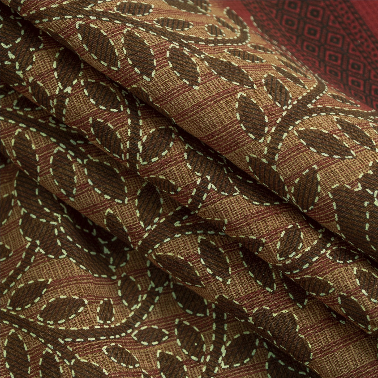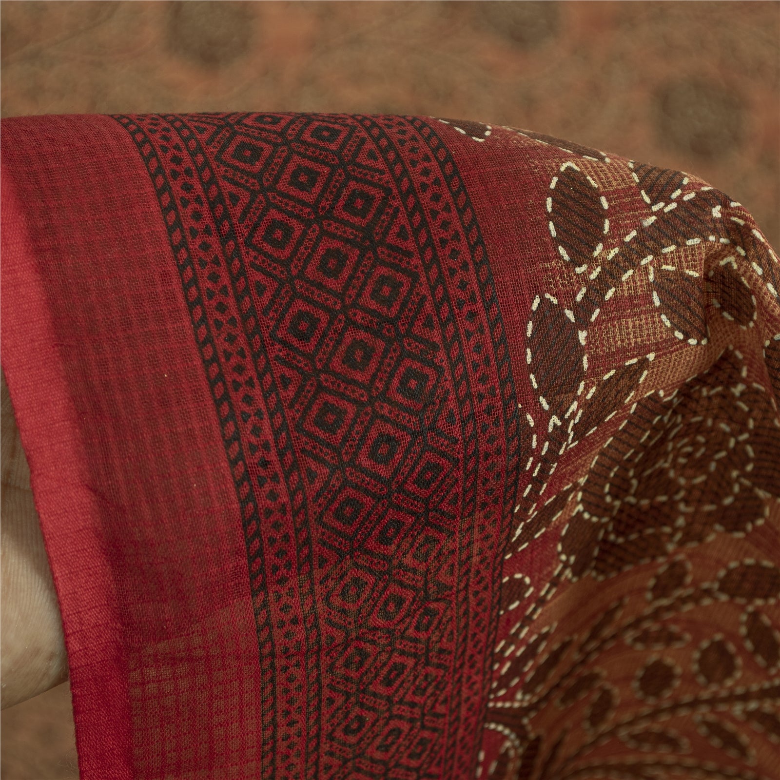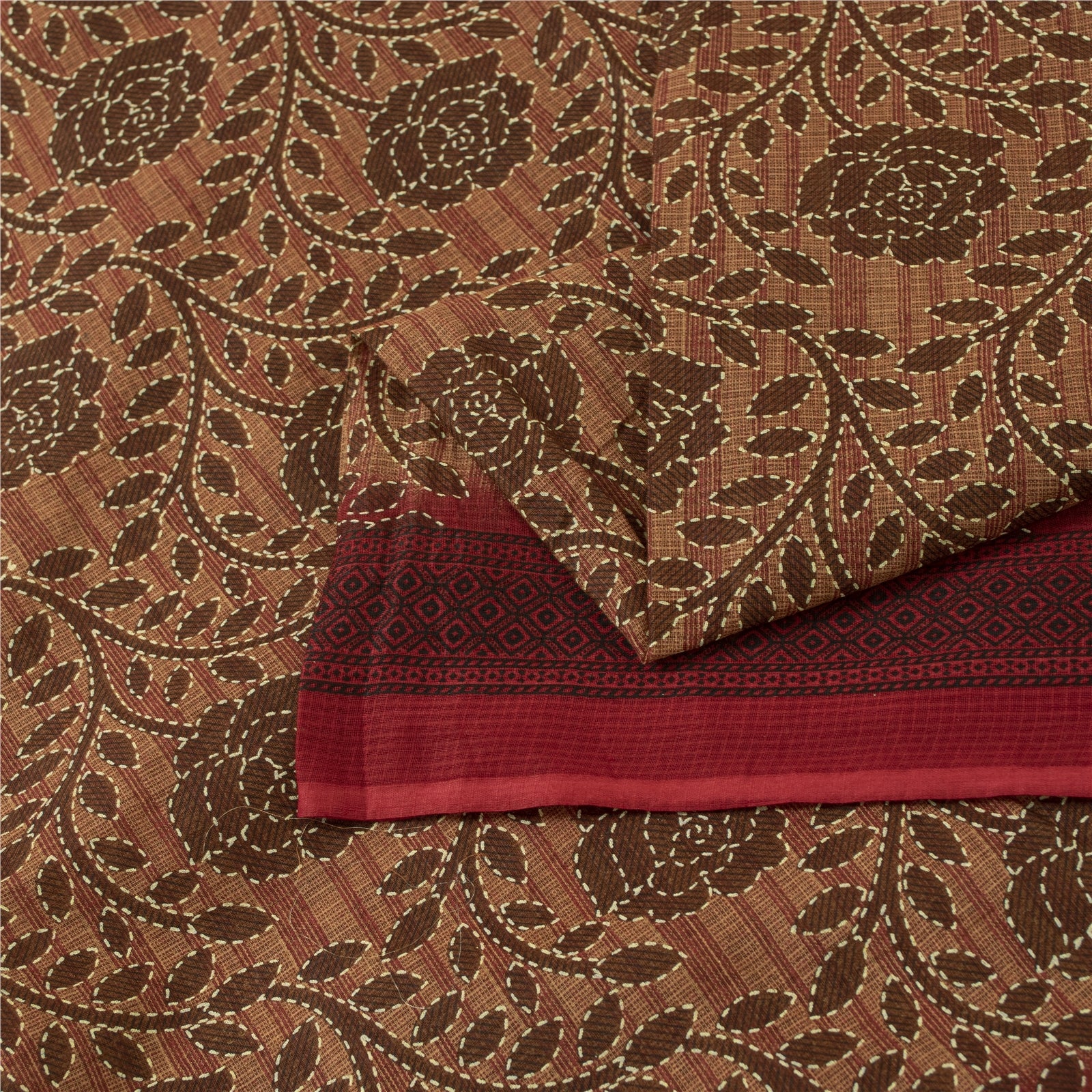 Sanskriti Vintage Sarees Brown 100% Pure Cotton Floral Kantha Printed 5+yd Sari