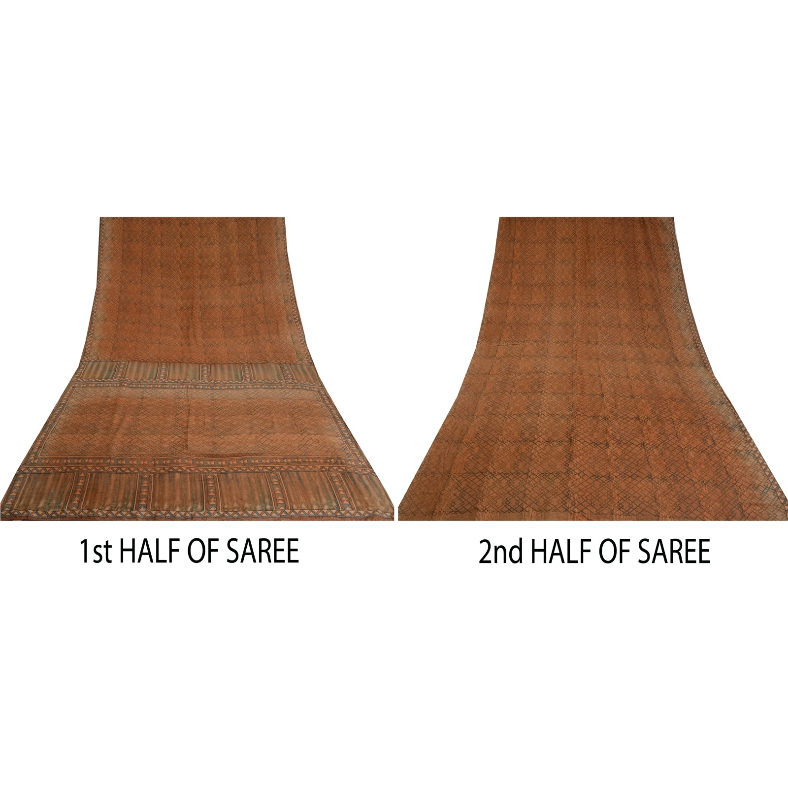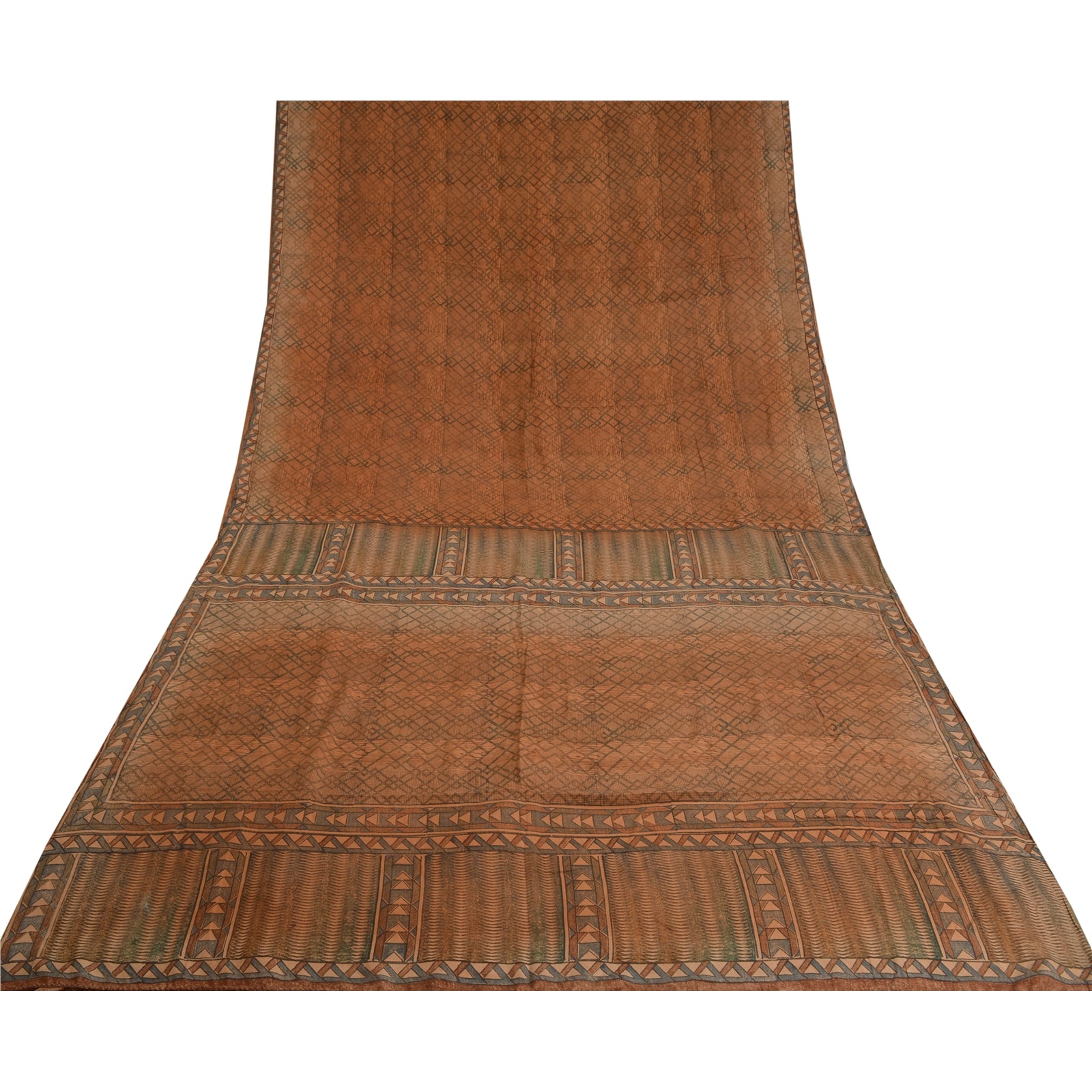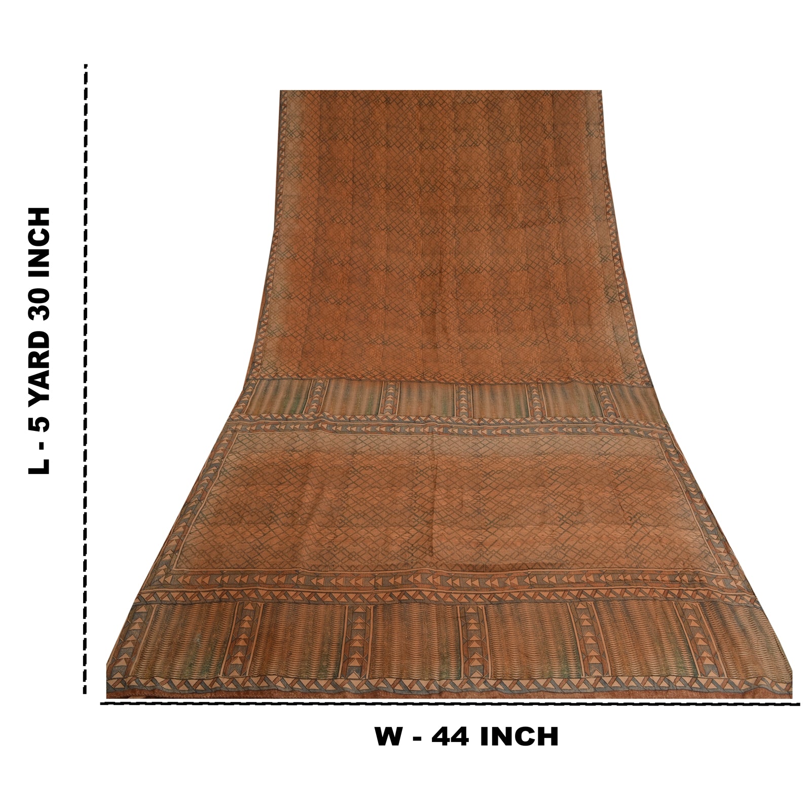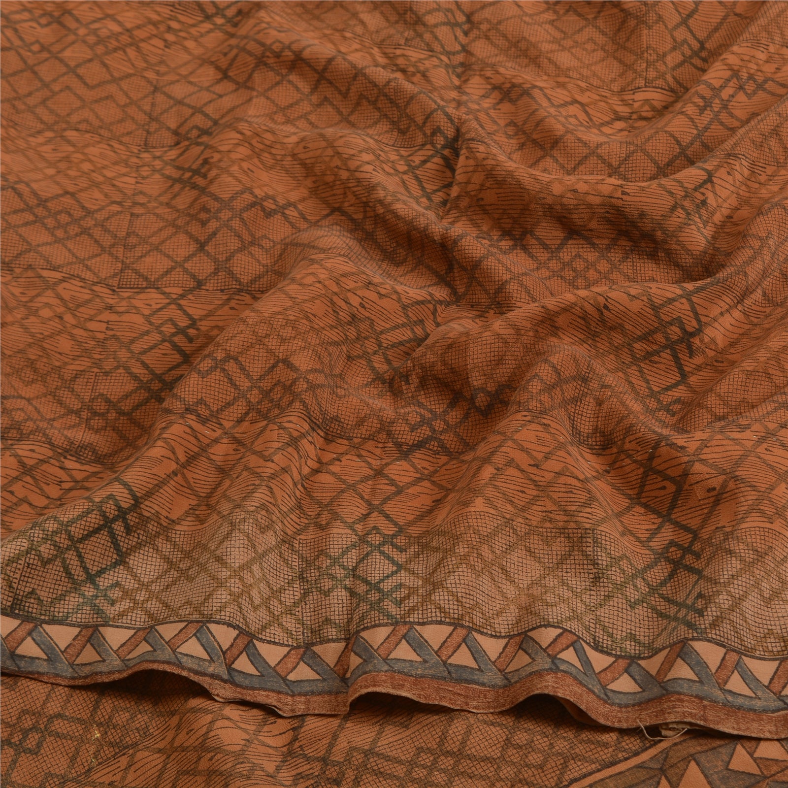 THE ITEM COLOR OR SHADE MAY BE DARKER OR LIGHTER THAN THE PICTURE.' Beautiful brown colored pure crepe silk printed saree. Pallu & Border has printed geometric design. Similar design in center part of saree. What is special about this saree? Fabulous design is really enhancing the beauty of the saree. This unique vintage saree can be used for various crafting ideas even if you don't want to use it as a sari. Design a dress, use it as window,dressing, upholstery, sarongs, throw, dress making and table linen much more. Let your creative juices flow and use this decorated Sustainable Fabric in multiple fashion. International buyers please note: Import duties, taxes, and charges are not included in the item price or postage cost. These charges are the buyer's responsibility. Please check with your country's customs office to determine what these additional costs will be prior to bidding or buying.Buyer will pay custom duty/tax. It is calculated and charged differently by every country. As a seller I do not have any control over it.VAT or sales tax is calculated by the platform at the time of checkout. Customs charge is payable at the time of delivery.