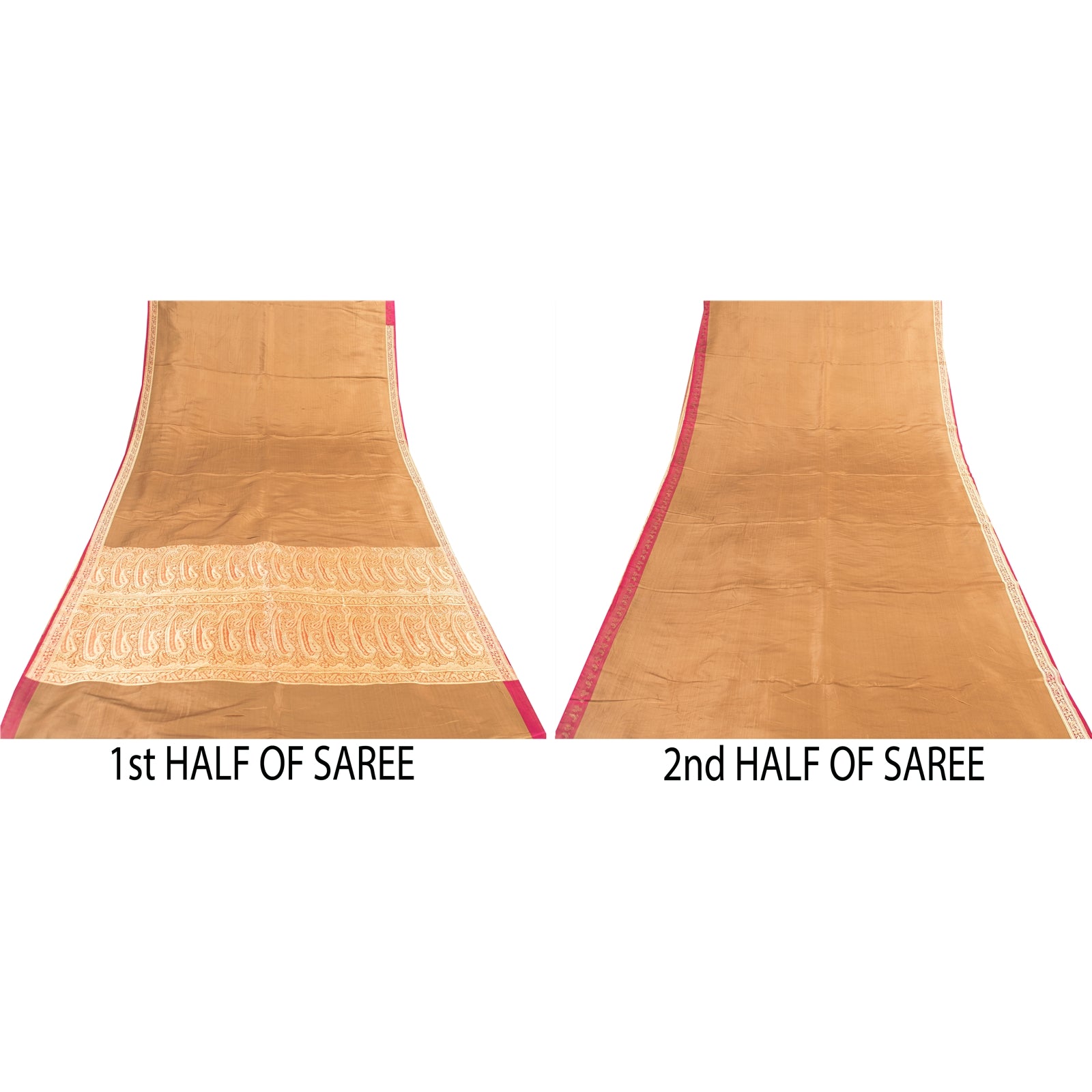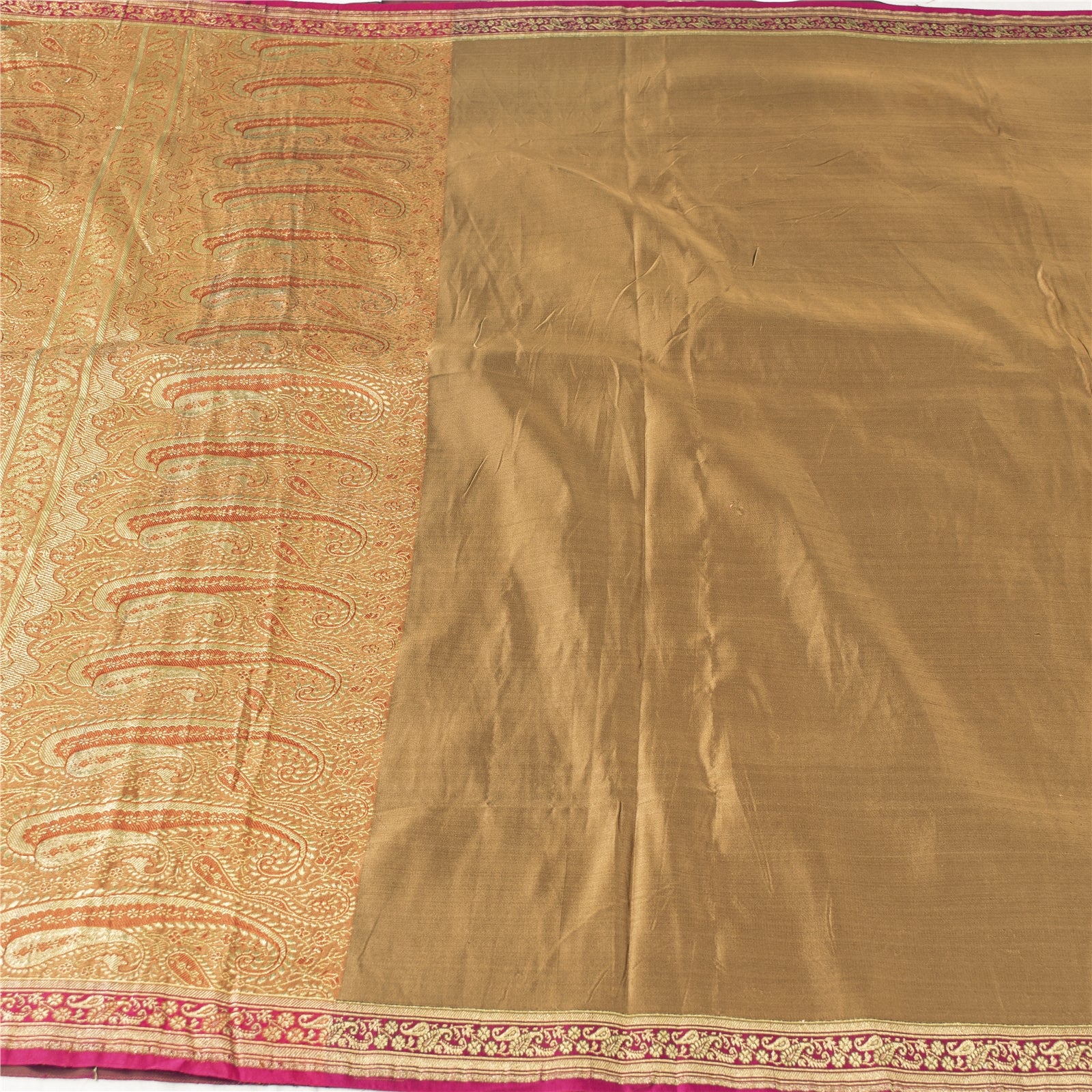 Sanskriti Vintage Sarees Brown BanarasiBrocade Zari Woven Pure Satin Sari Fabric