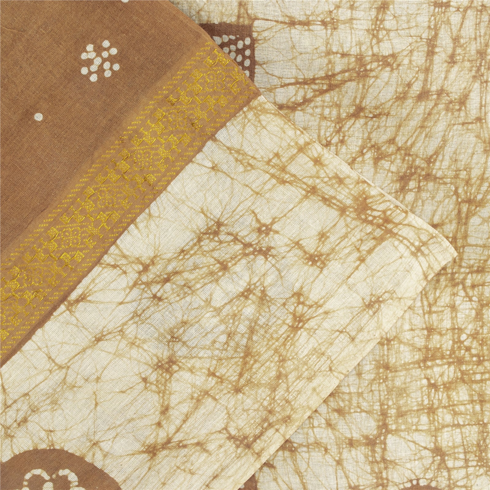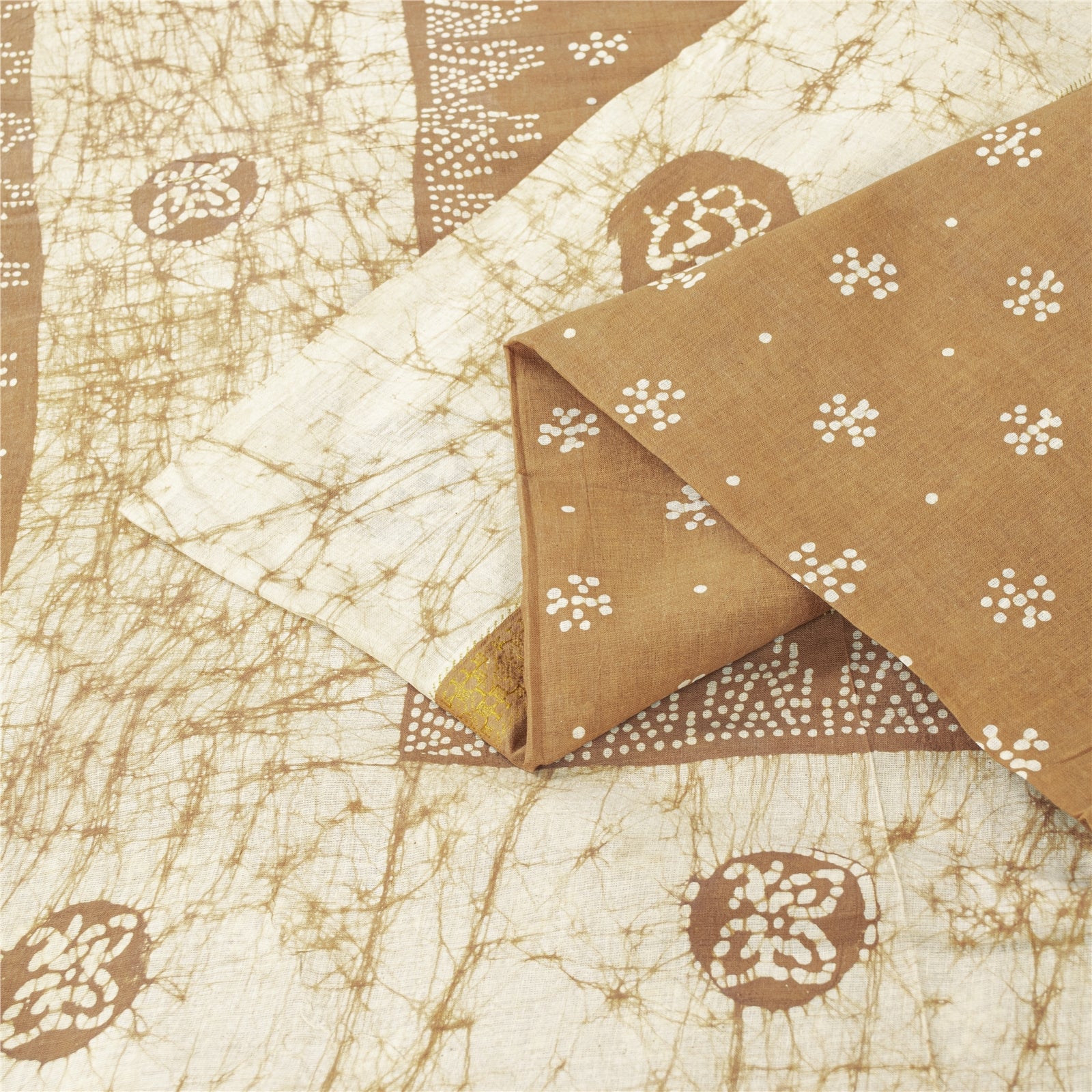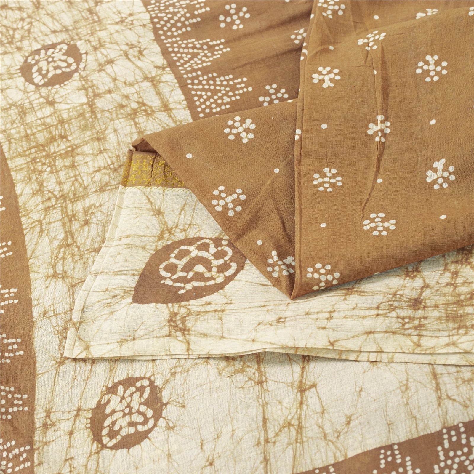 Sanskriti Vintage Sarees Brown Batik Batik Pure Cotton Sari 5+yd Craft Fabric