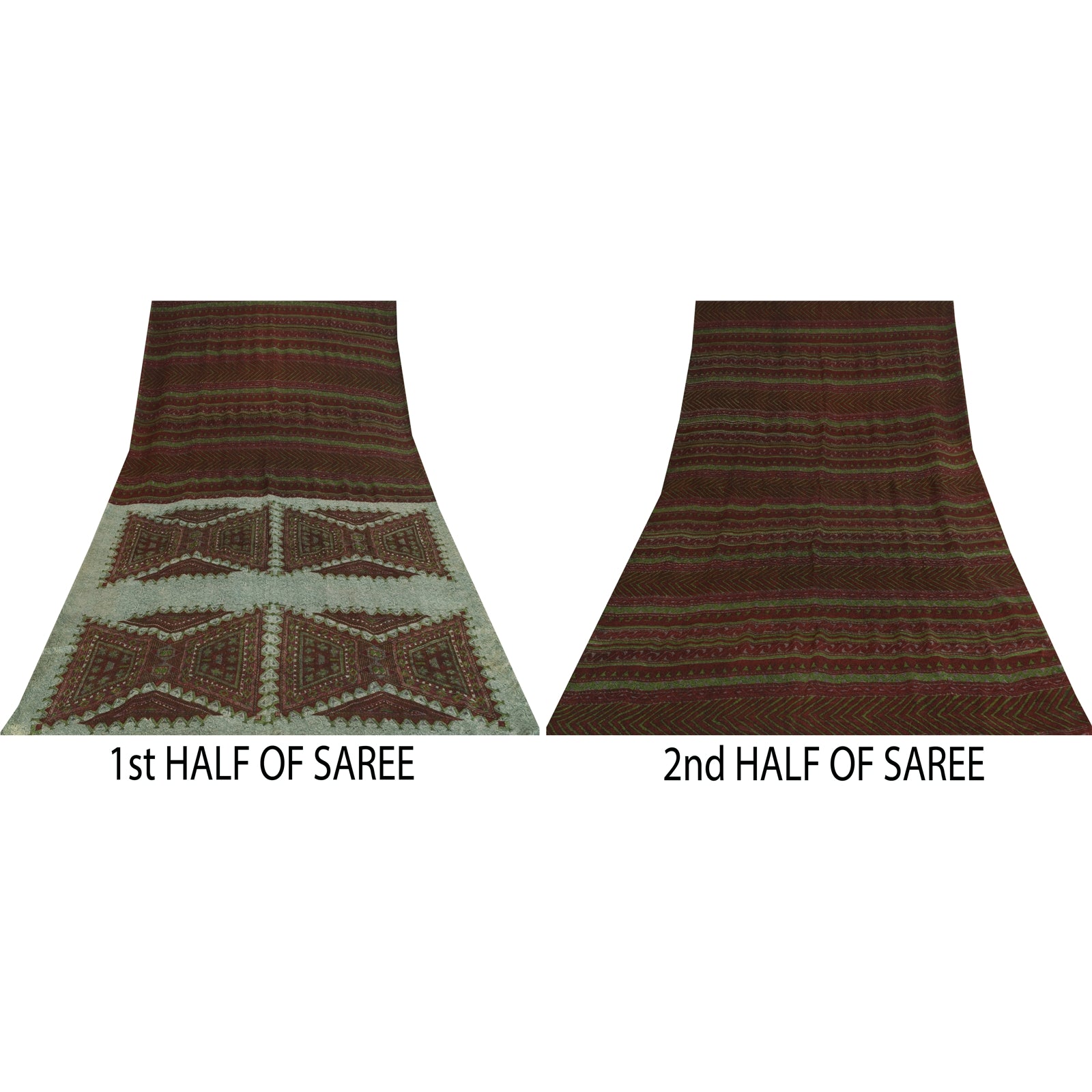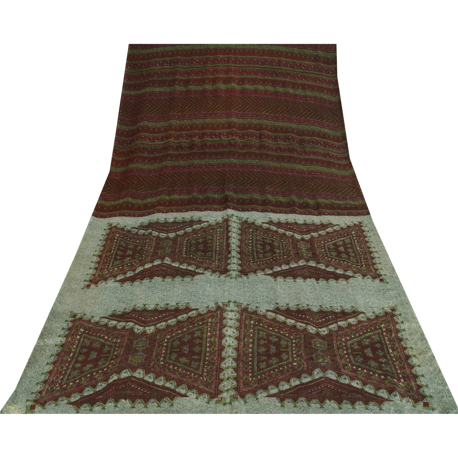 Sanskriti Vintage Sarees Brown Indian Pure Silk Printed Sari 5+yd Craft Fabric