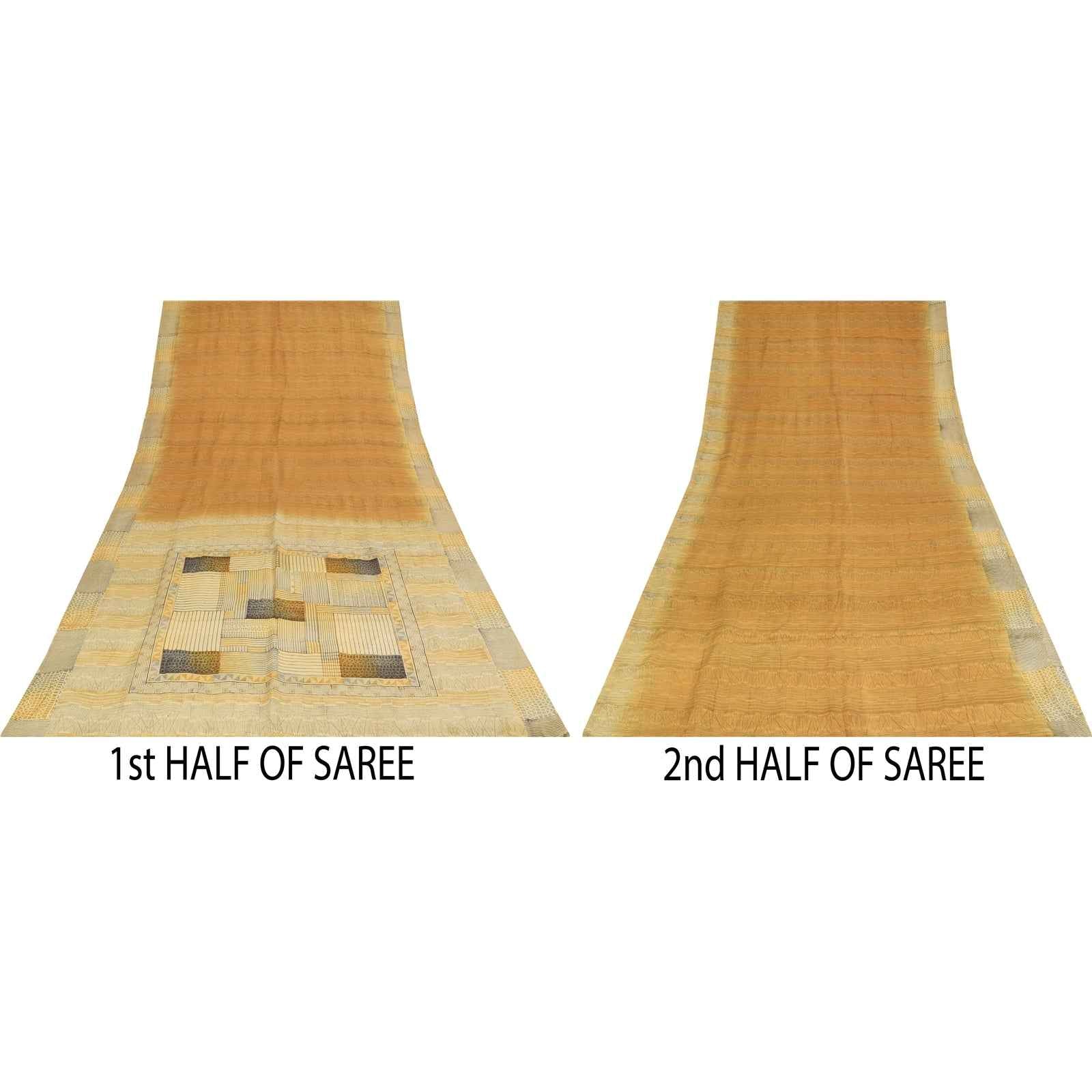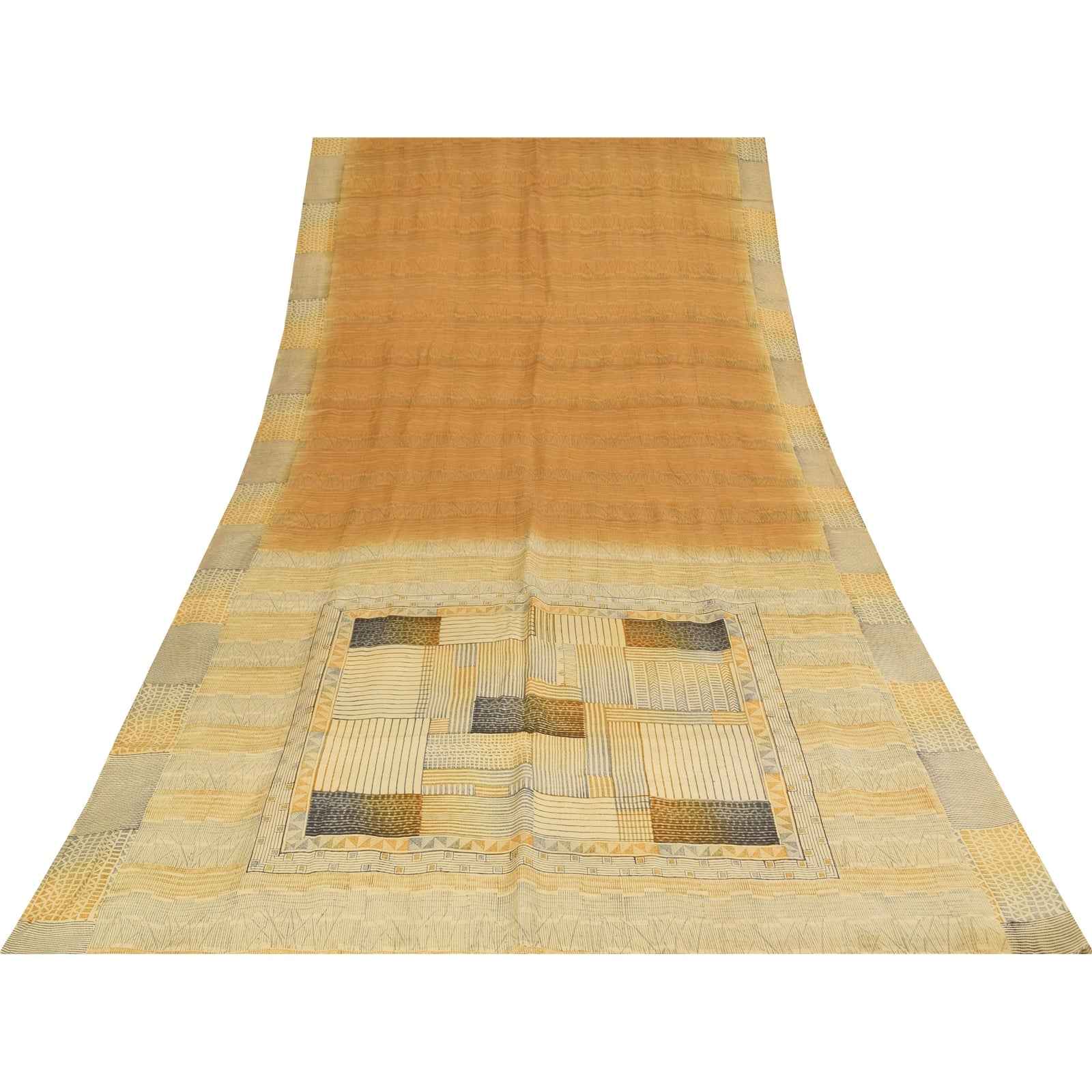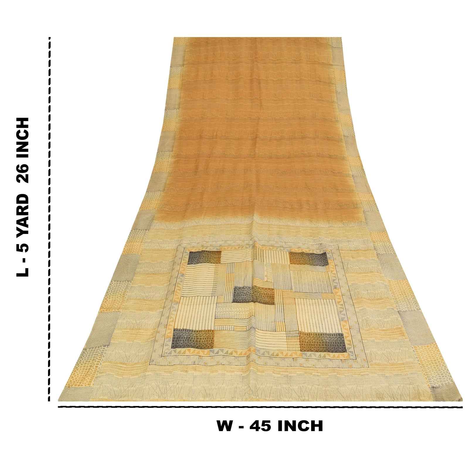 Sanskriti Vintage Sarees Brown Pure Crepe Silk Printed Sari 5+yd Craft Fabric