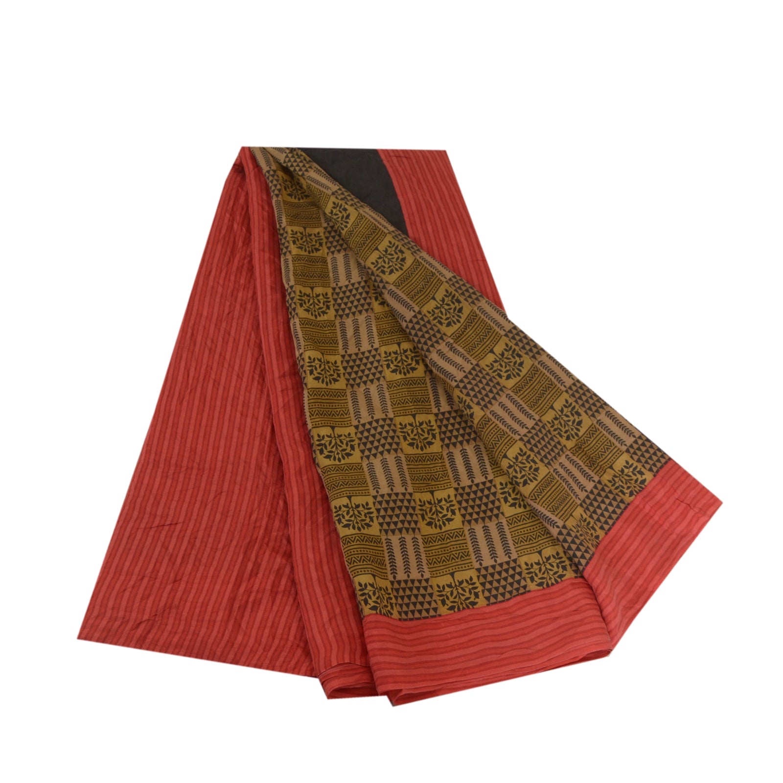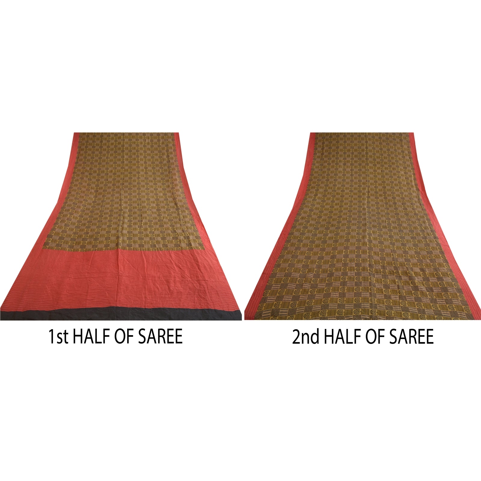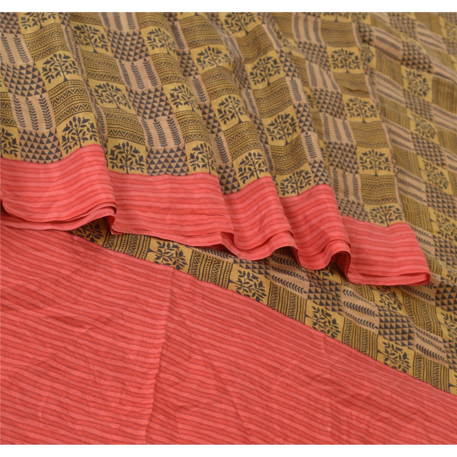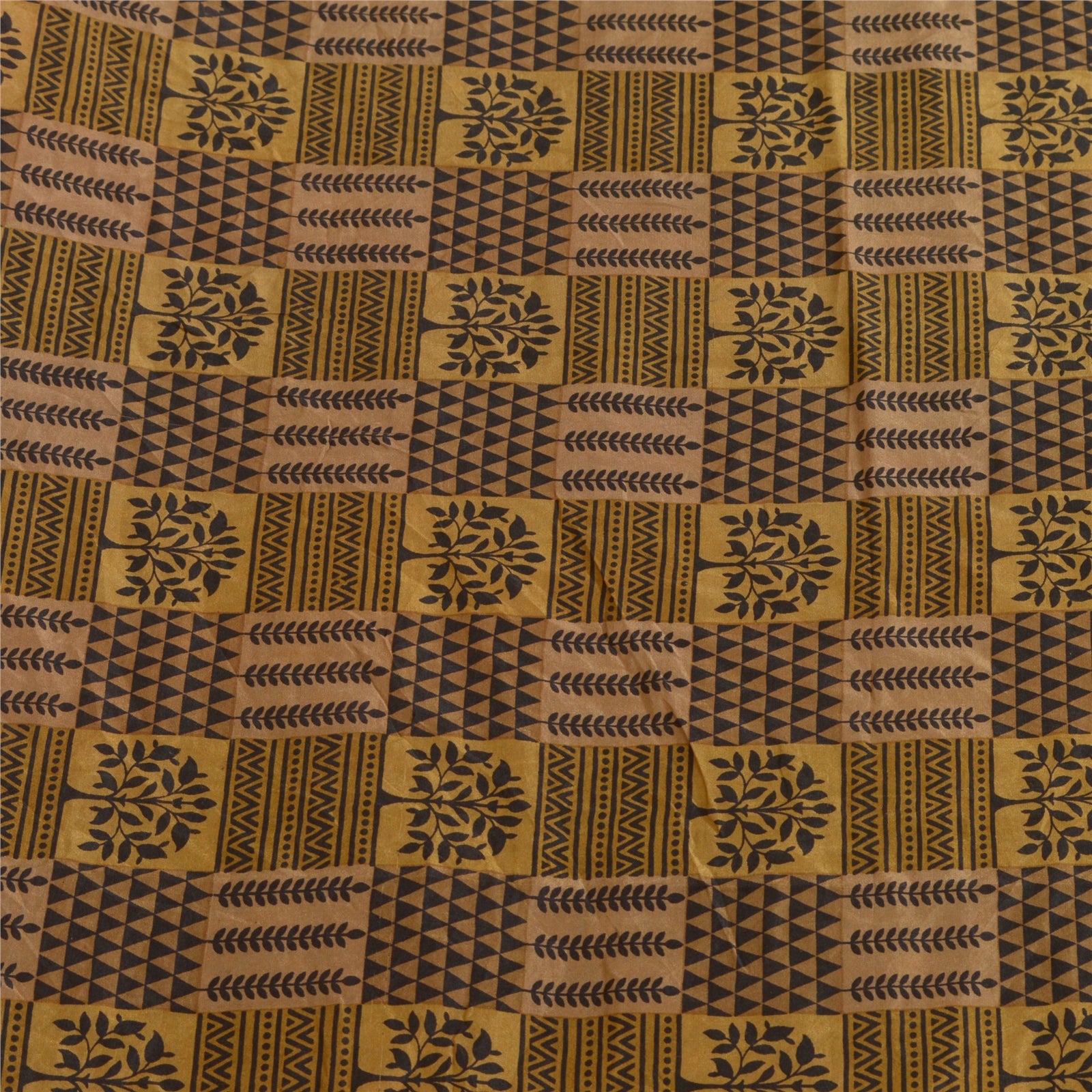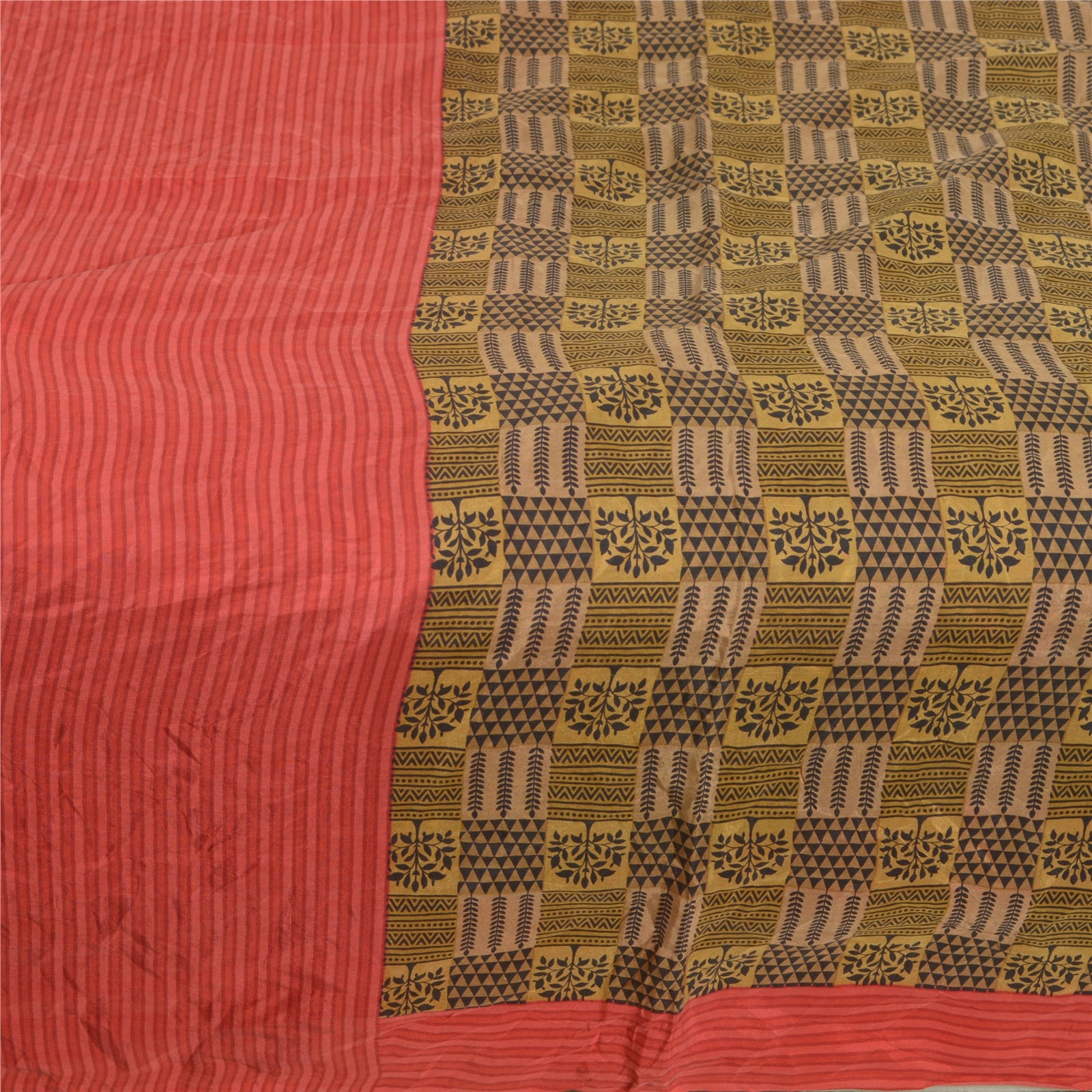 Sanskriti Vintage Sarees Cream/Black 100% Pure Silk Printed Sari Craft Sustainable Fabric